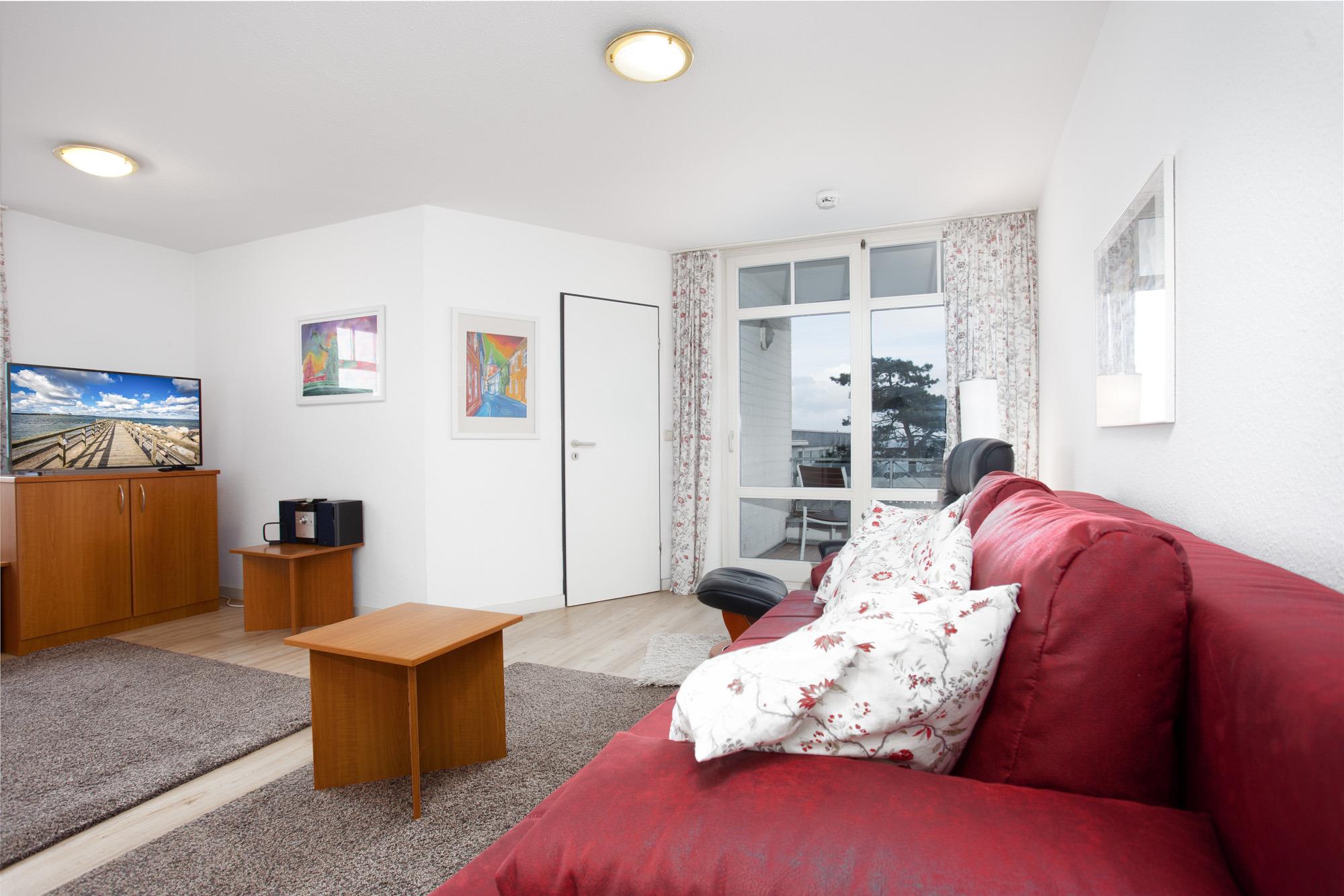 Das 2-Zimmer Appartement Nr. 11 liegt in der 1. Etage des Strandhotels in der Strandstraße 123. Es erwartet Sie eine moderne Niendorf Ferienwohnung für max. 4 Personen mit Balkon in Nord-Lage und herrlichem Meerblick. Das Wohnzimmer des Urlaubsdomizil verfügt über eine bequeme Schlafcouch sowie einen Flachbild-TV und eine Essecke. In der offenen Küche finden Sie mit Ceranfeld, Geschirrspüler, Mikrowelle, Kaffeemaschine, Wasserkocher und Toaster alles, was Sie für einen erholsamen Urlaub an der Ostsee benötigen.