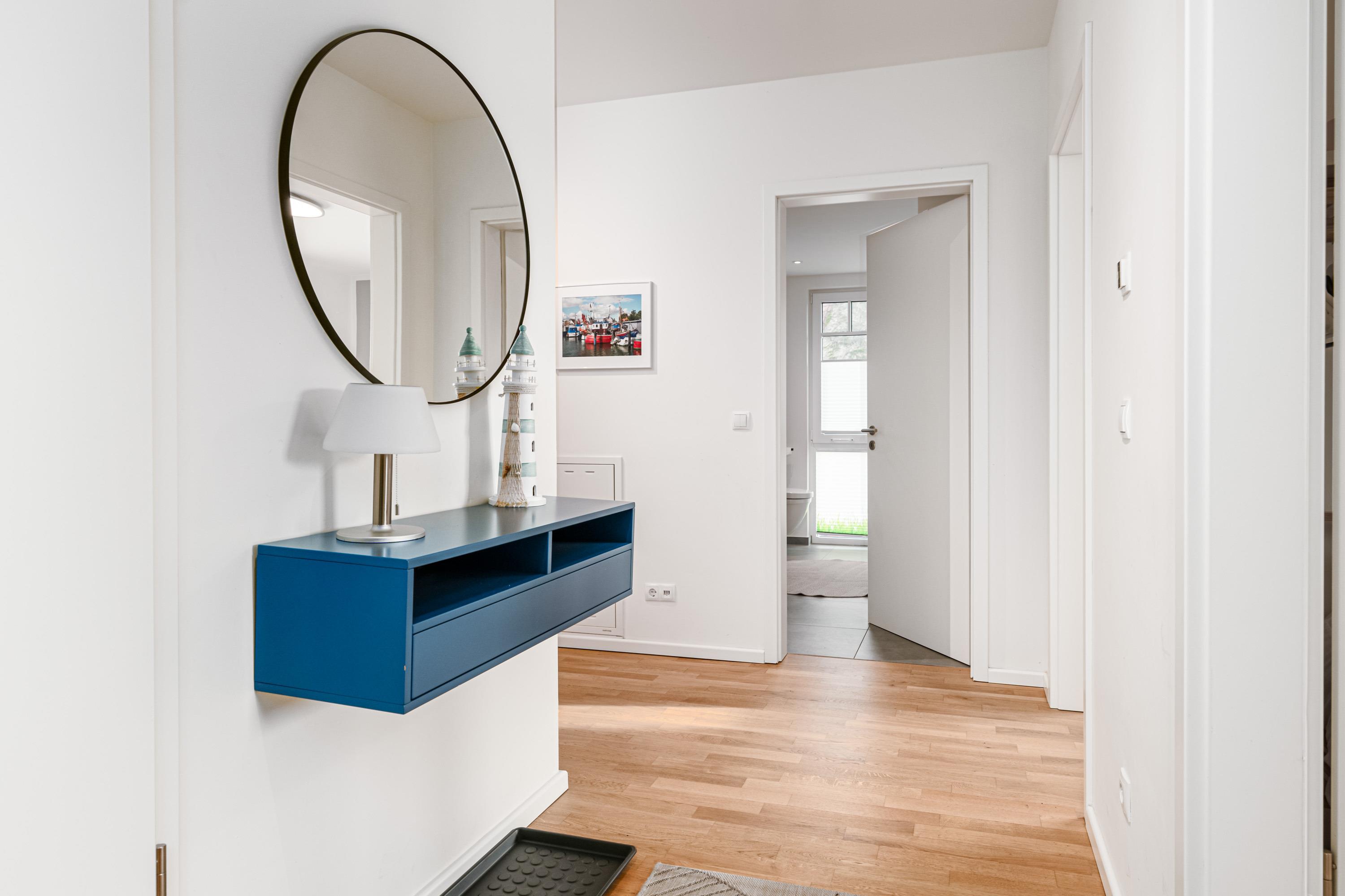 Sie betreten dieses schöne Feriendomizil und stehen im geräumigen Flur, von dem aus Sie alle weiteren Räume erreichen.