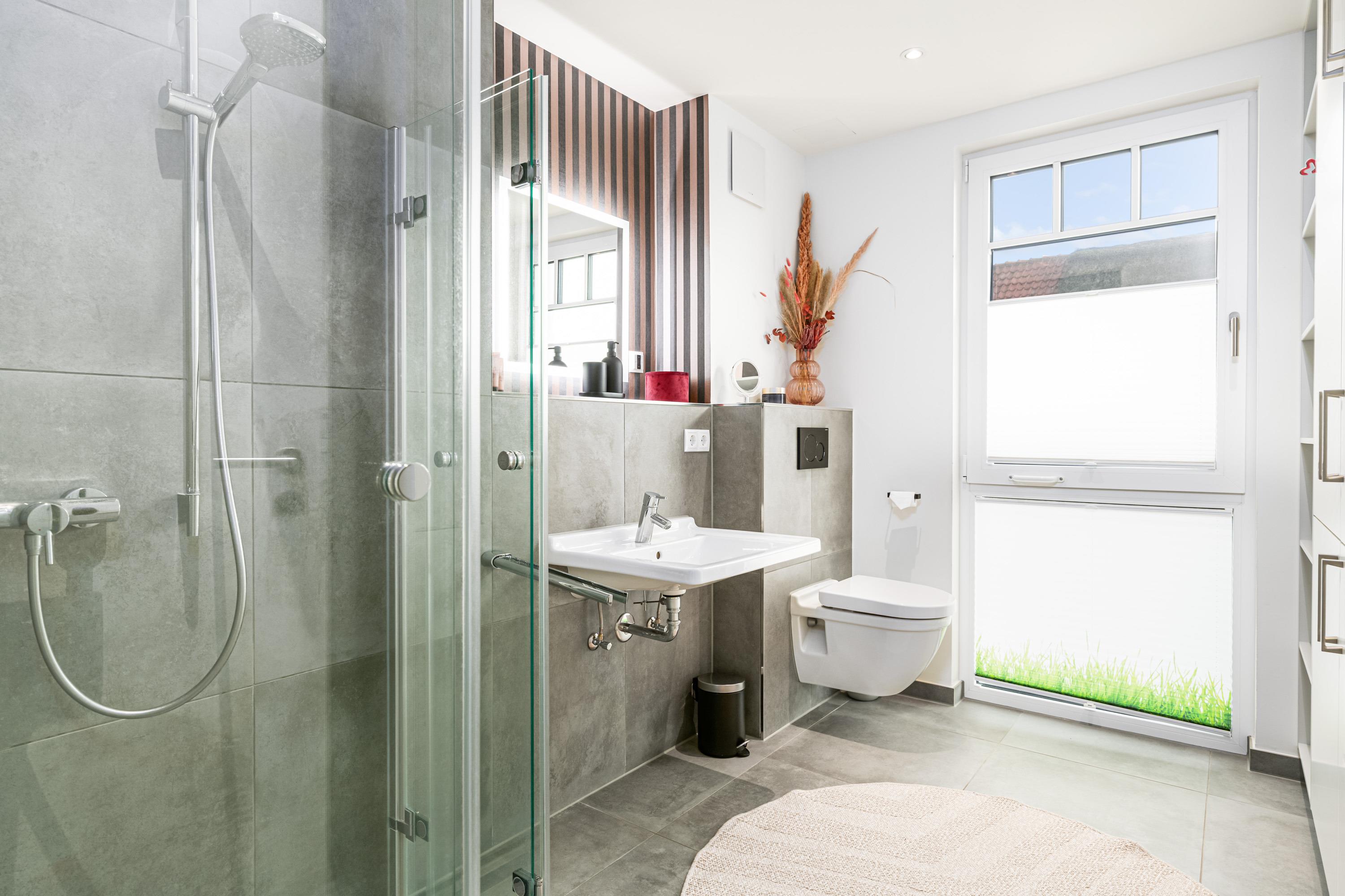 Das Badezimmer ist sehr modern eingerichtet und ist mit einer ebenerdigen Dusche ausgestattet. Hier erfrischen Sie sich nach einem schönen Strandtag.