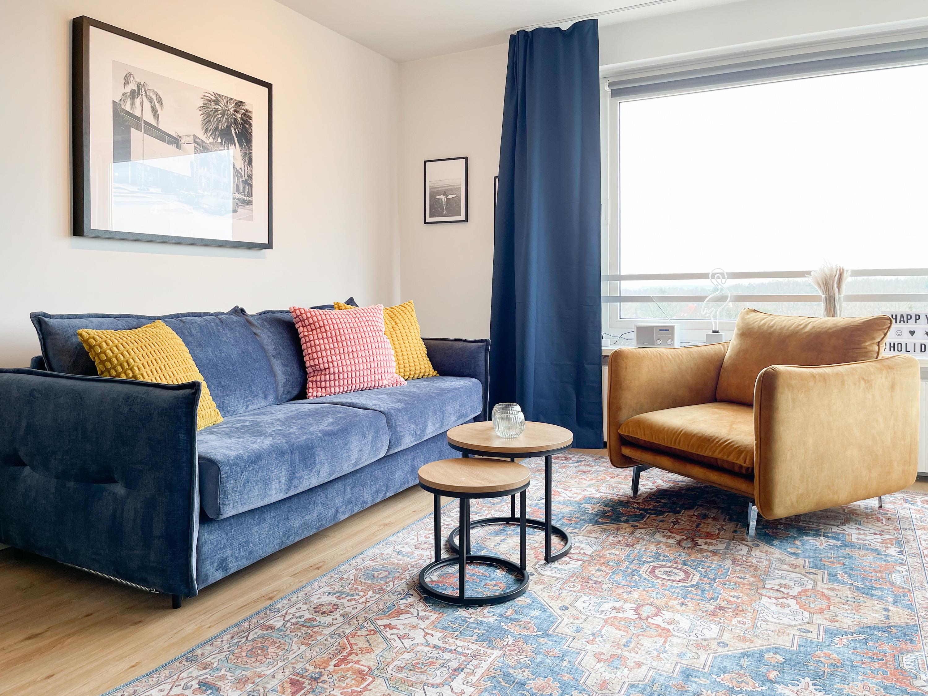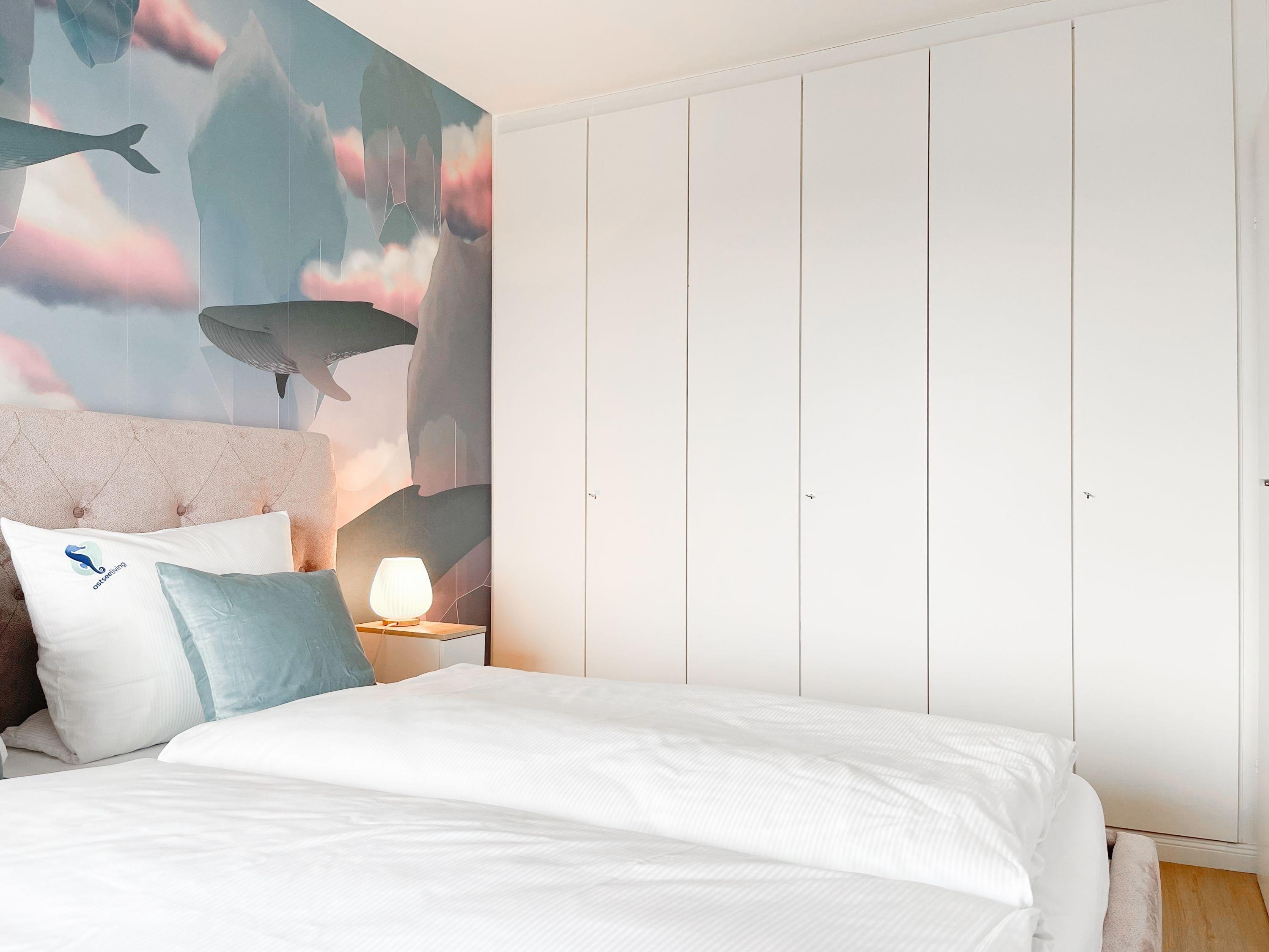 Die aufwendig renovierte und mit viel Liebe zum Detail eingerichtete Ferienwohnung befindet sich in der Endetage im Carpe Diem, einer gepflegten Wohnanlage. Es erwartet Sie ein lichtdurchfluteter Wohnbereich mit schönem Panoramablick, eingerichtet mit einem hochwertigen Schlafsofa, TV, Radio und WLAN sowie einem gemütlichen[nbsp] [nbsp]Essbereich. Die offene, neue Einbauküche ist gut ausgestattet und verfügt über einen Backofen, Cerankochfeld und einen Kühlschrank mit Gefrierfach. Der Balkon in Südwestausrichtung ist mit Gartenmöbeln und einer Markise ausgestattet und bietet einen herrlichen Ausblick, teilweise kann man die Ostsee durch die Bäume blitzen sehen.[nbsp] Meeresrauschen und die frische Seeluft sind garantiert. Das separate Schlafzimmer ist mit einem Doppelbett (180x200)und einem Kleiderschrank mit reichlich Stauraum für die Urlaubsgarderobe ausgestattet. Die Fenster sind mit Jalousien und Vorhängen zur Abdunkelung versehen. Zur Wohnung gehört ein Tiefgaragenstellplatz[nbsp] (Einfahrthöhe 1,95m). Der Fahrstuhl geht bis in die 6. Etage, von dort ist die Endetage über Treppen zu erreichen.