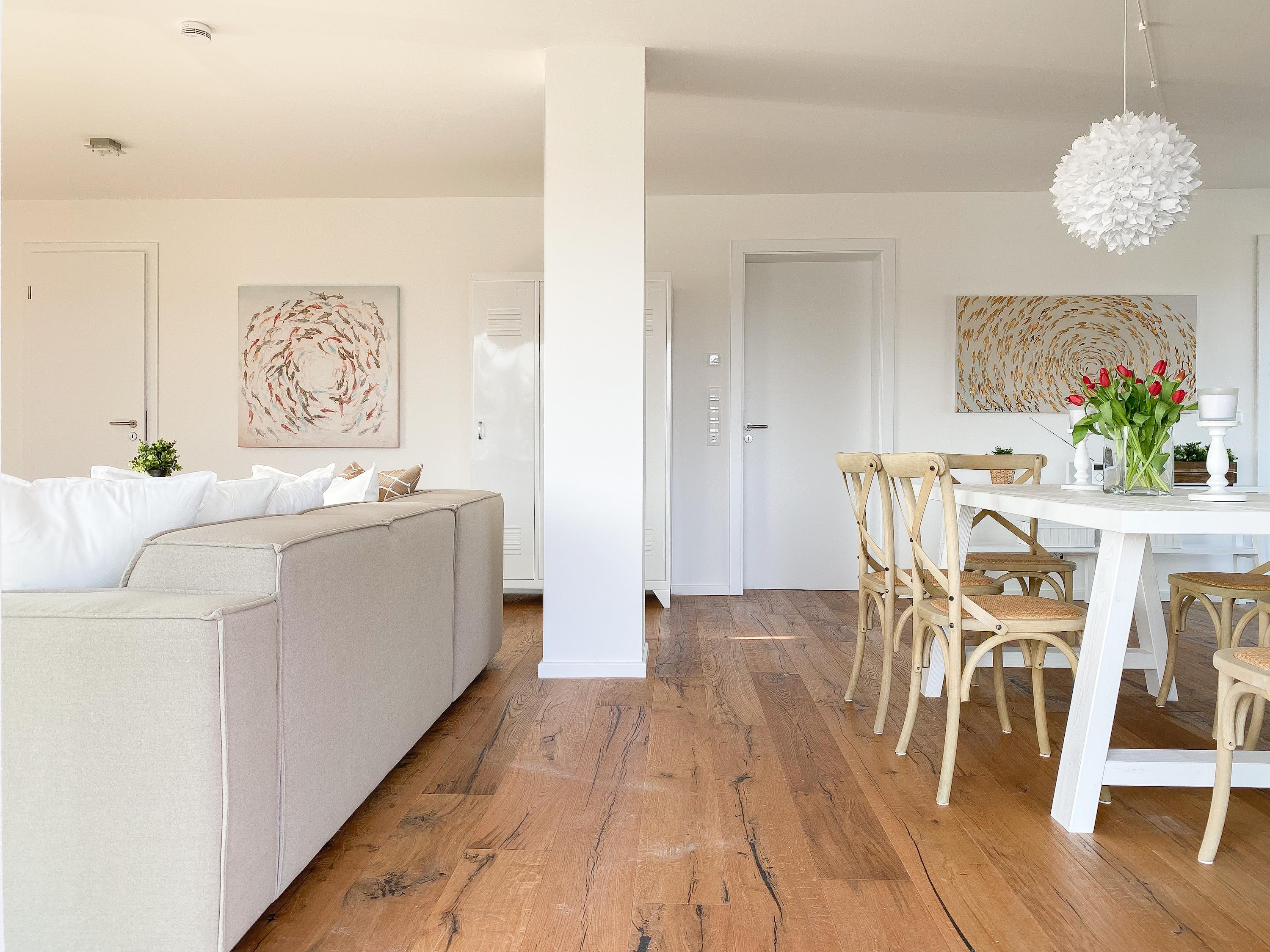 Diese einzigartige Ferienwohnung liegt im 1. Obergeschoss eines modernen Neubaus mit nur 3 Wohneinheiten und bietet auf 100 qm Wohnfläche mit 2 Schlafzimmern und 2 separaten Bädern jeglichen Komfort für 4 Personen. Das Herzstück der Wohnung bildet der stilvoll eingerichtete Wohn- und Essbereich mit riesigen Fensterelementen und einem phantastischen Ausblick auf die Ostsee und die ein- und ausfahrenden Schiffe vom Fischkutter bis zur Motoryacht.[nbsp] Echtholzböden und Fußbodenheizung sorgen für ein angenehmes Raumklima. Der großzügig angelegte Sonnenbalkon ist überdacht und sowohl zum Süden als auch zum Westen ausgerichtet. Genießen Sie die Sonne von früh bis spät, die einzigartige Hafenatmosphäre und beeindruckende Sonnenuntergänge bei einem Glas Wein.