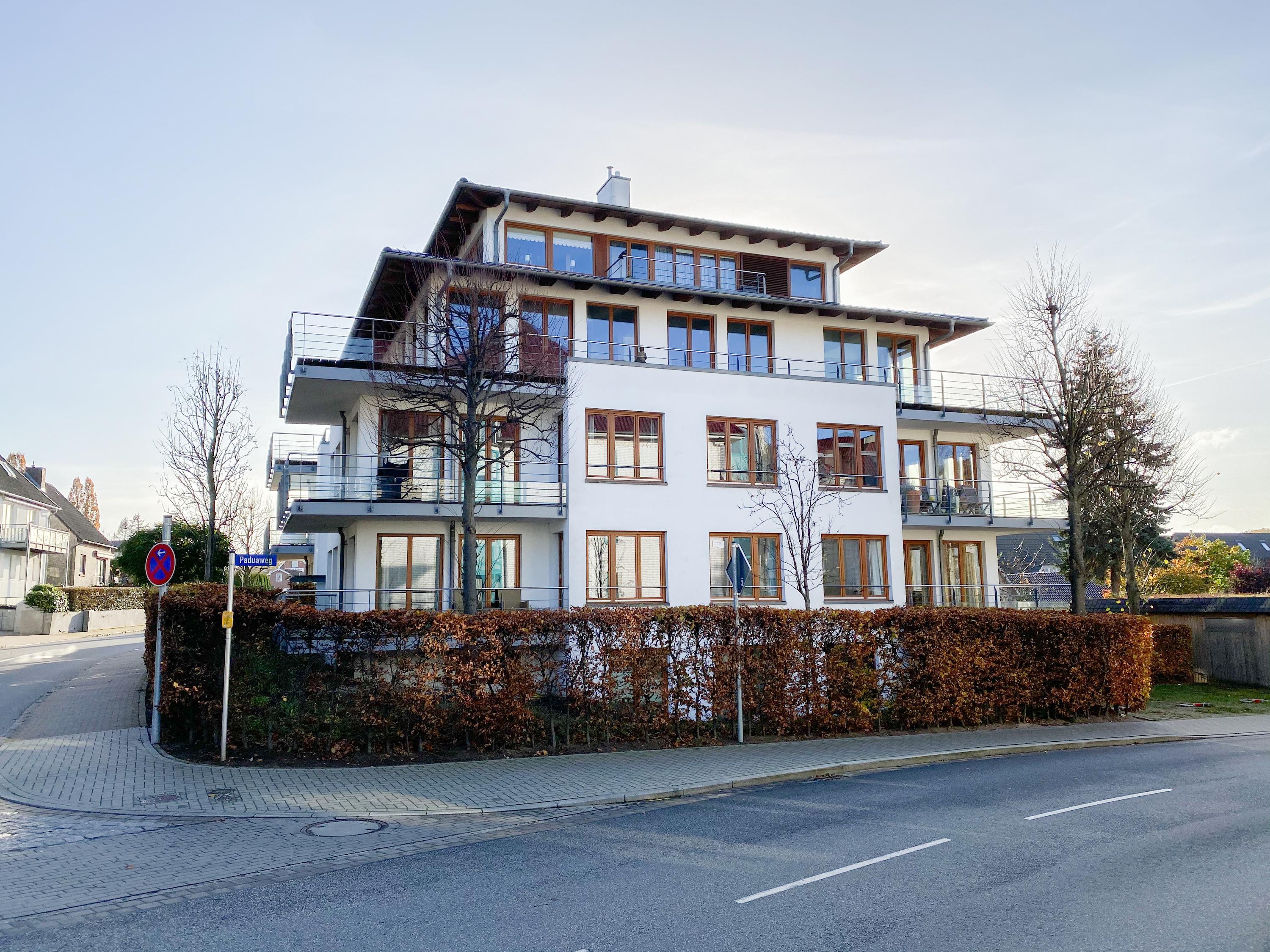 Zur Wohnung gehören 2 feste Parkplätze und eine abschließbarer Fahrradschuppen. Zusätzlich Fahrradständer befinden sich im Eingangsbereich des Hauses. Waschmaschine und Trockner (Münzgeräte) sind im Keller untergebracht und stehen zur gemeinschaftlichen Nutzung[nbsp] zur Verfügung.