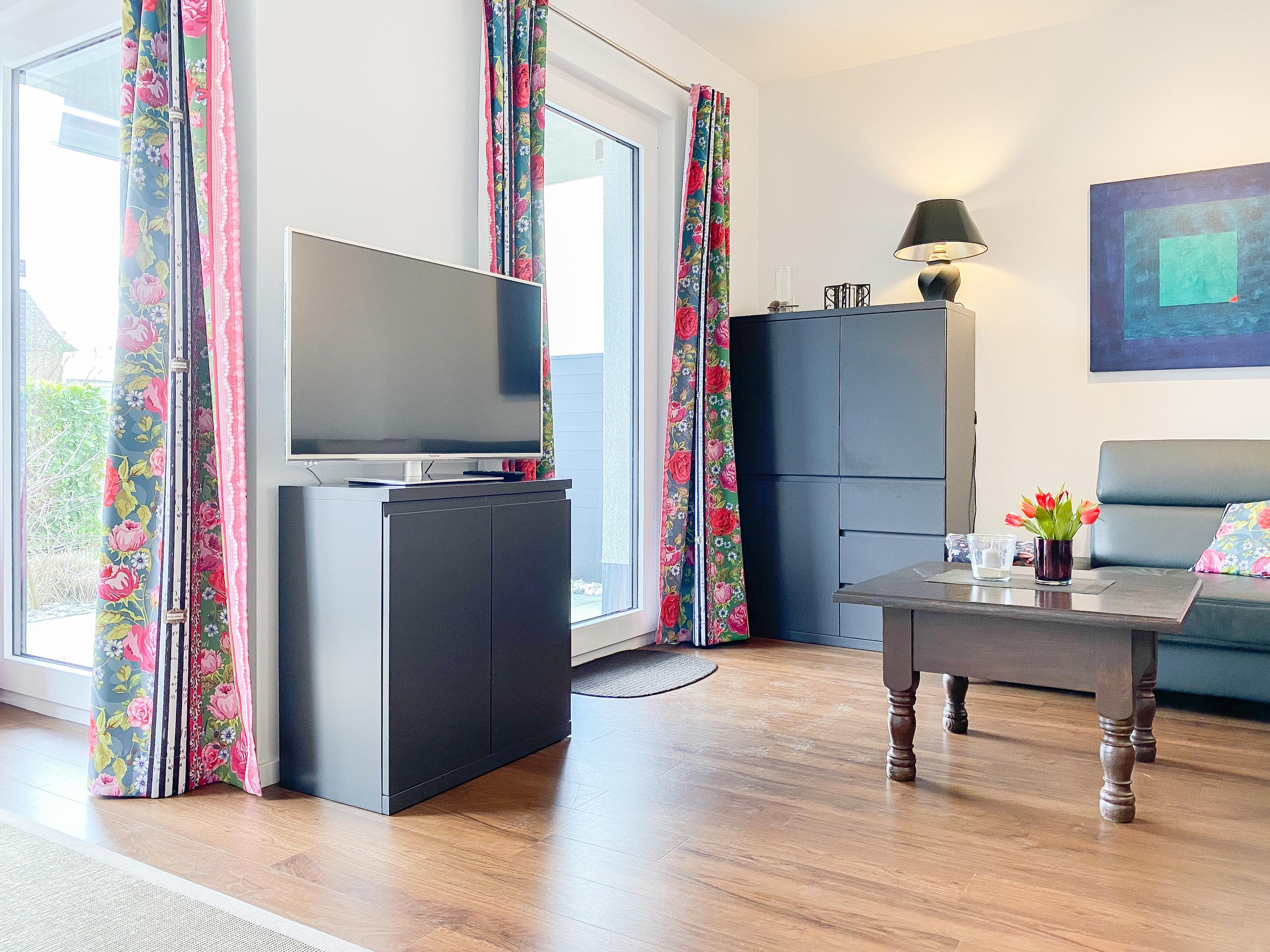 Die[nbsp] Ferienwohnung[nbsp] im Erdgeschoss des neu erbauten Hauses "Nienhüs" mit nur 7 Wohneinheiten verfügt über eine sehr schöne ca. 20 qm große Terrasse in Südausrichtung mit kleinem Gartenanteil. Sie ist mit Gartenmöbeln, einem Strandkorb und einer elektrischen Markise ausgestattet. Ein herrlicher Rückzugsort zu jeder Tageszeit.[nbsp] Der großzügige Wohnbereich verfügt über eine gemütliche Couchgarnitur mit Schlaffunktion (120x200), TV und kostenlosem Internetzugang über WLAN. Die bodentiefen Fensterelemente sorgen für helle, sonnige Räume zum Wohlfühlen und die Fußbodenheizung für ein angenehmes Raumklima. Die offene Einbauküche mit anschließendem Essbereich verfügt über Cerankochfeld, Backofen, Mikrowelle und Spülmaschine. Im separaten Schlafzimmer befindet sich ein Doppelbett (180x200) und ein Einbauschrank. Das hochwertige, moderne Bad mit Fenster ist mit einer großen, bodentiefen Walk-In Dusche ausgestattet. Ein separater Abstellraum befindet sich in der Wohnung.