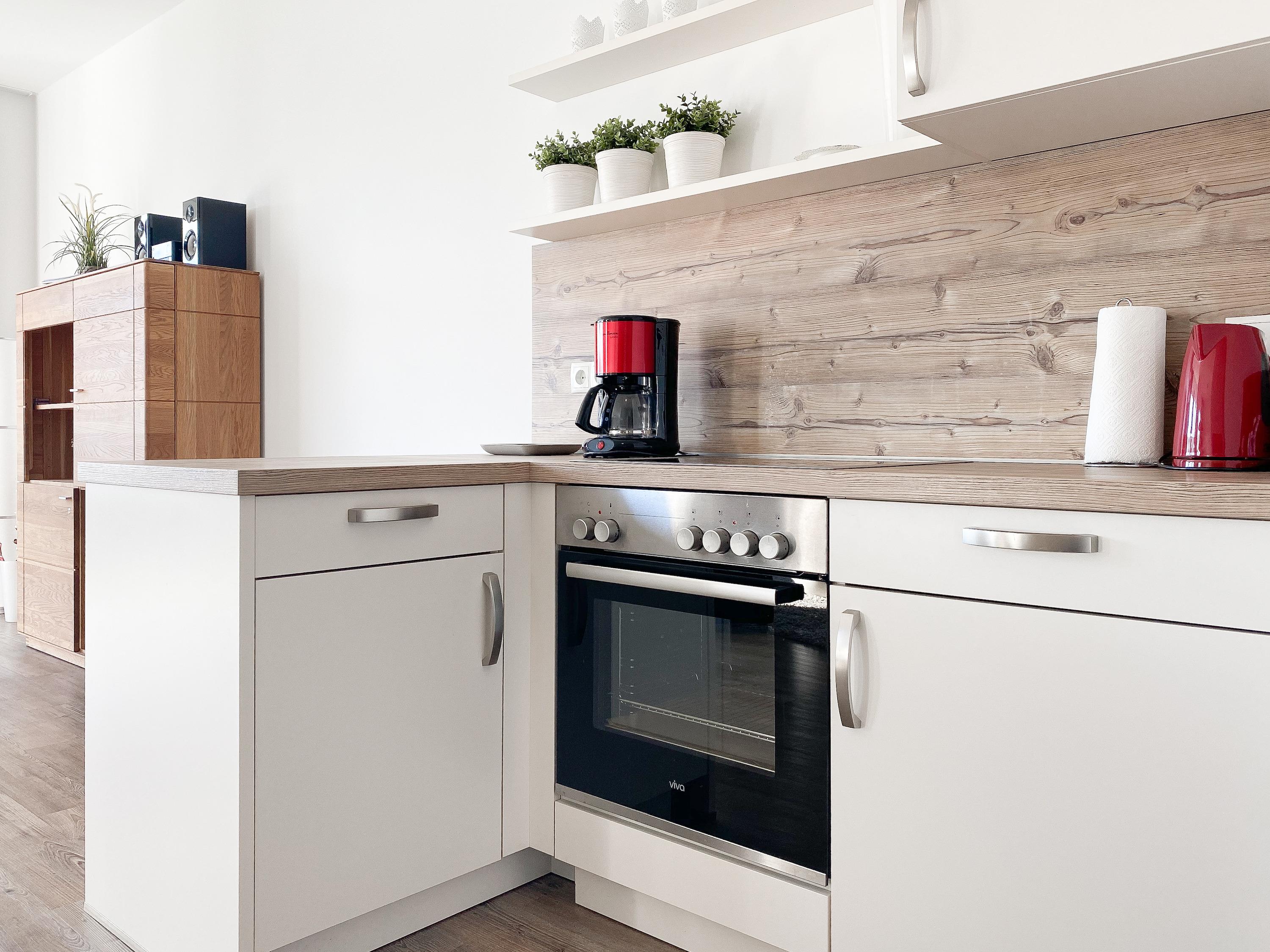 Moderne Ferienwohnung in Niendorf, nur wenige Schritte zum Strand und Hafen, mit Balkon und voll ausgestatteter Küche.