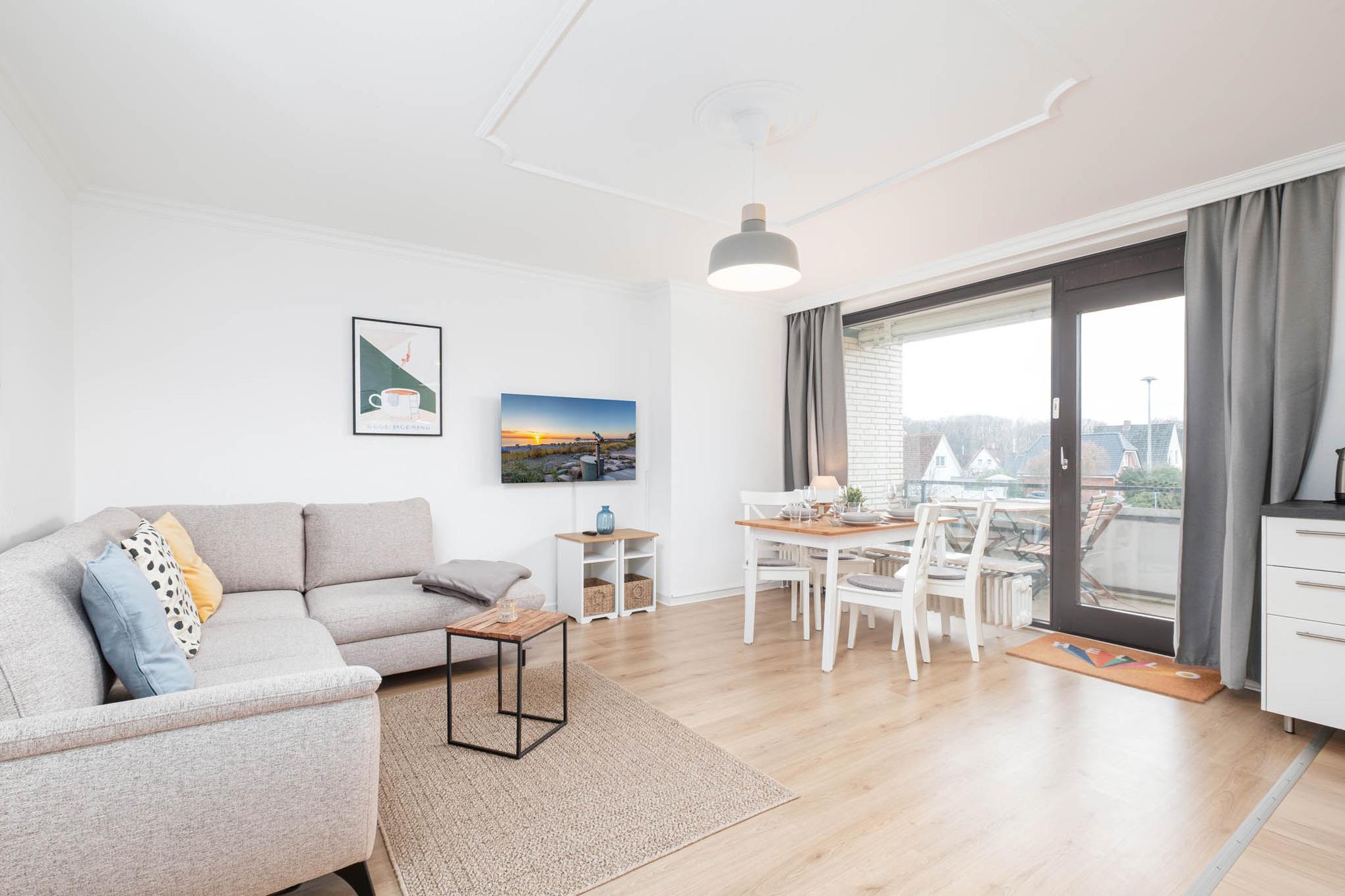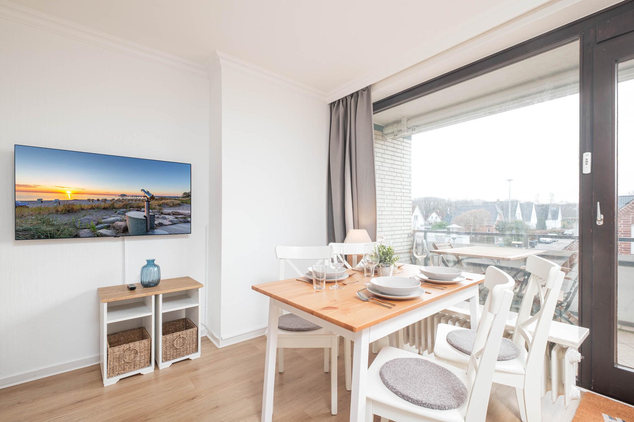 Der möblierte Balkon mit Markise in Südlage rundet diese wunderschöne Niendorf Ferienwohnung ab.