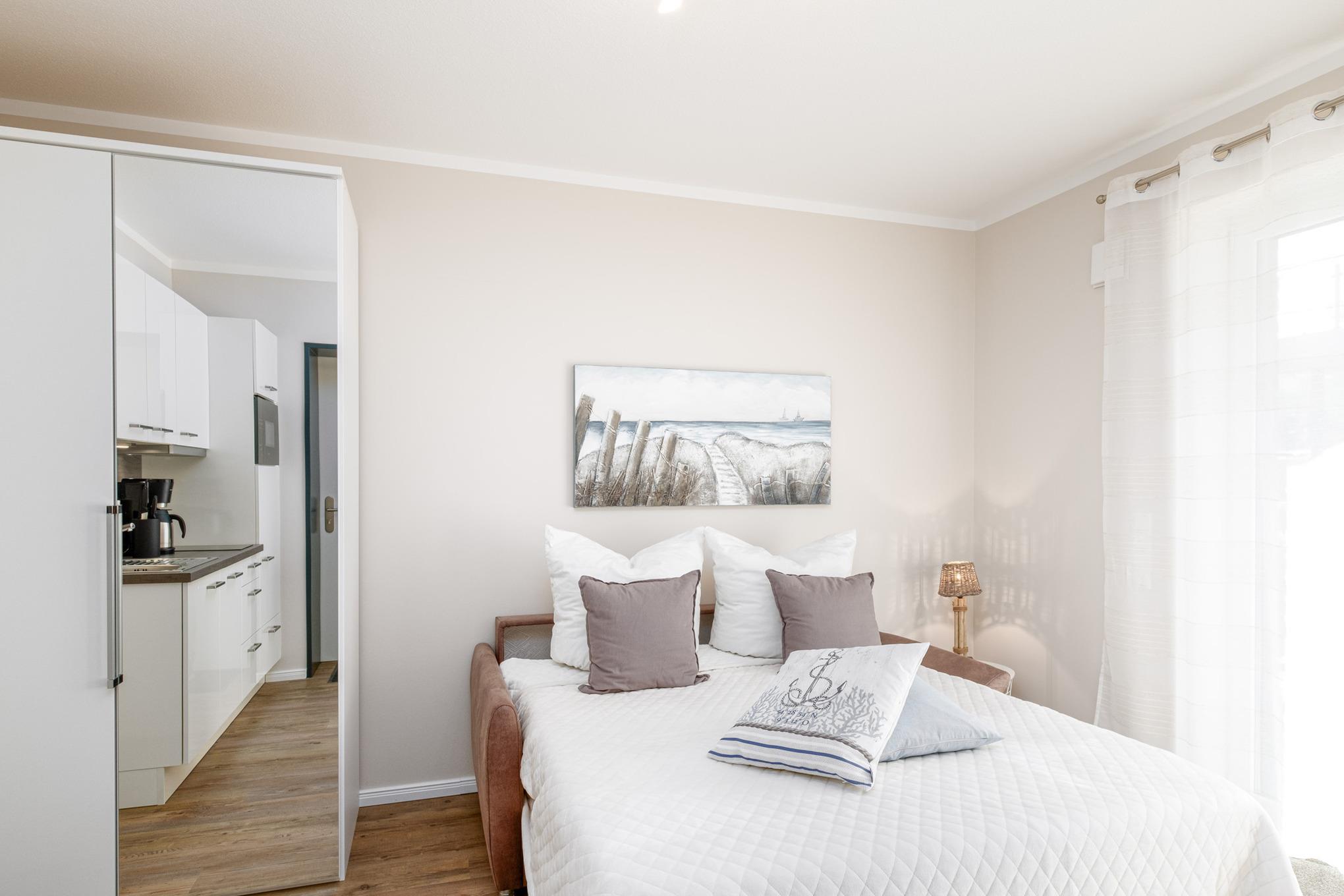 Das moderne 1-Zimmer Appartement Nr. 7 im Haus Strandperle erstreckt sich auf ca. 22qm Wohnfläche und bietet ausreichend Platz für bis zu 2 Personen.