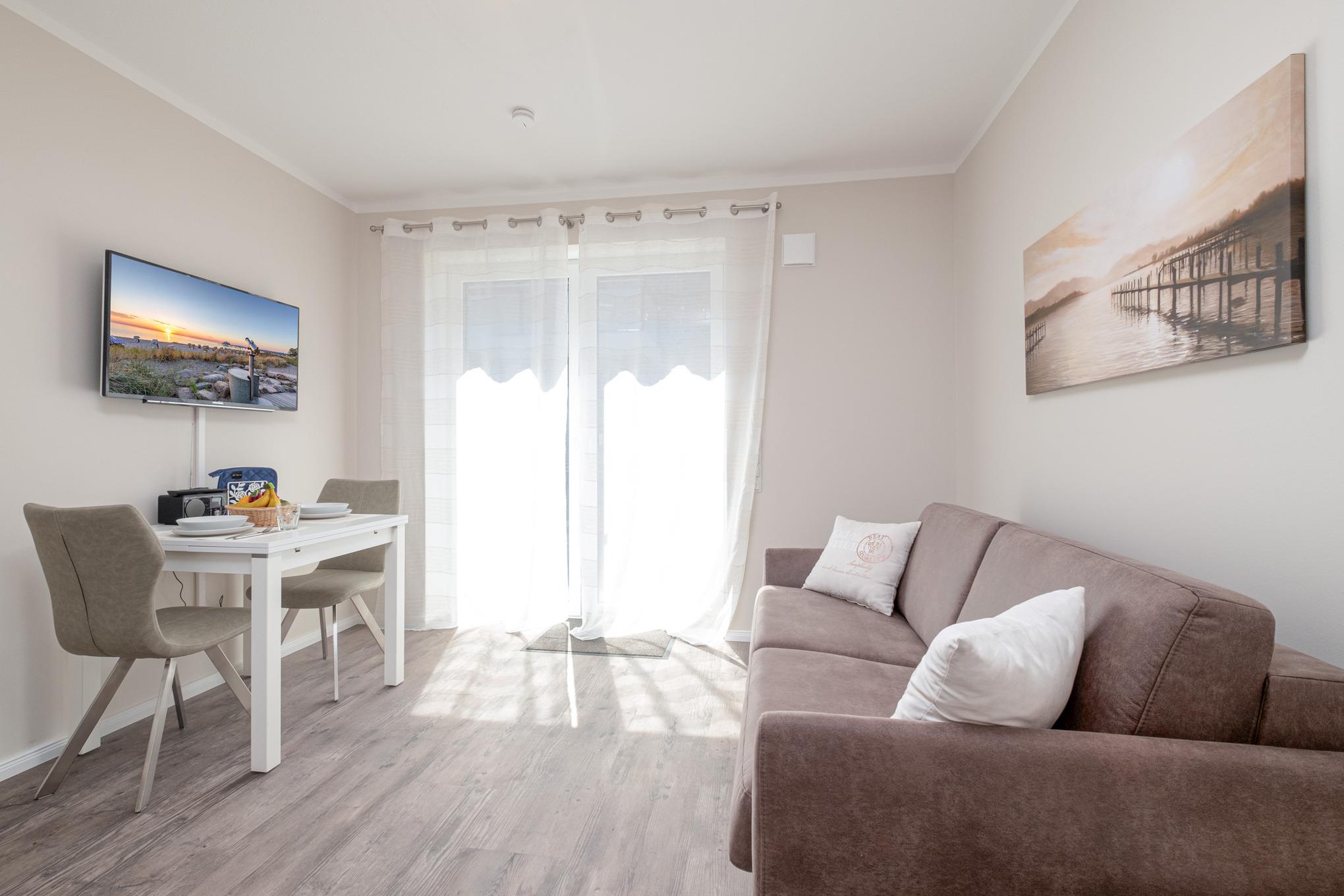 Modernes 1-Zimmer-Appartement in Niendorf, nur 200 m vom Strand und mit möblierter Terrasse.