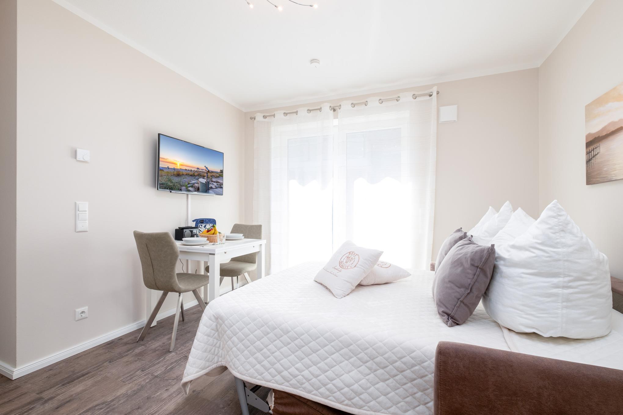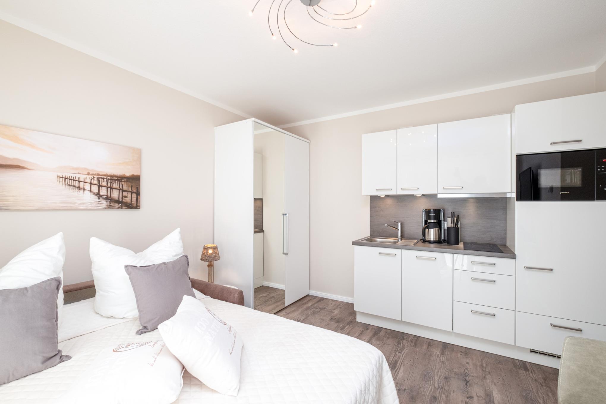 Das moderne 1-Zimmer Appartement Nr. 8 im Haus Strandperle erstreckt sich auf ca. 25qm Wohnfläche und bietet ausreichend Platz für bis zu 2 Personen.