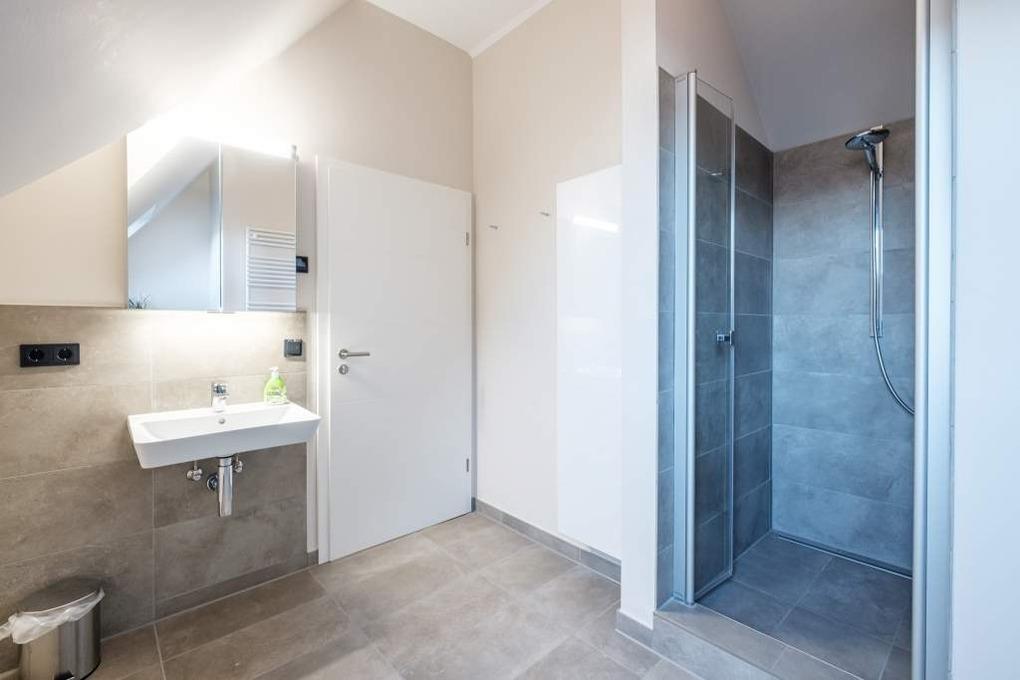 Darüber hinaus wird das Obergeschoss durch ein Bad mit Dusche/WC abgerundet.