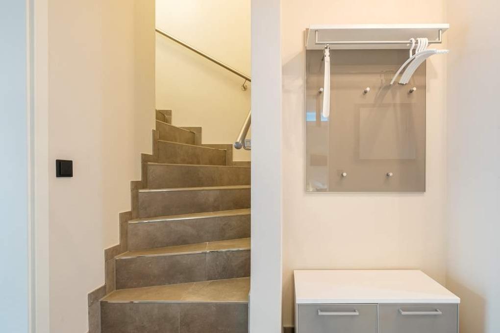 Von der Diele führt eine Treppe ins Dachgeschoss des Appartements.