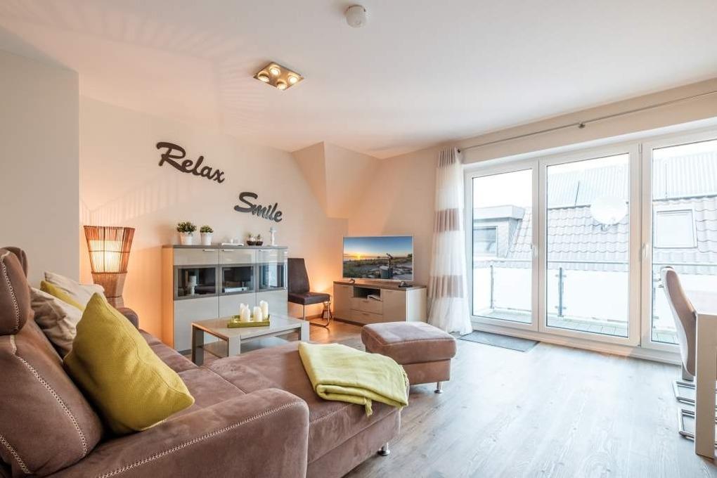 Ebenfalls haben Sie vom Wohnzimmer der Ferienwohnung Zugang zum möblierten Balkon in Richtung Norden.