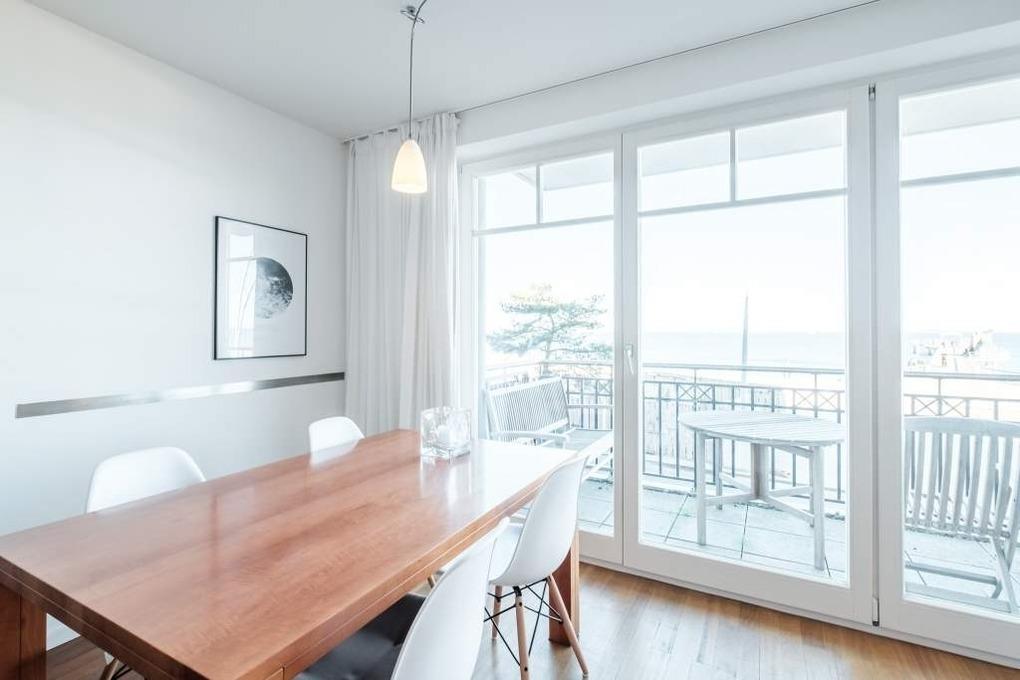 An dem Essbereich erleben Sie morgens zum Frühstück mit einem frischen Kaffee aus der Filterkaffeemaschine oder der Nespresso-Kaffekapselmaschine Lattissima One einen unglaublichen Sonnenaufgang mit Blick auf die Ostsee.