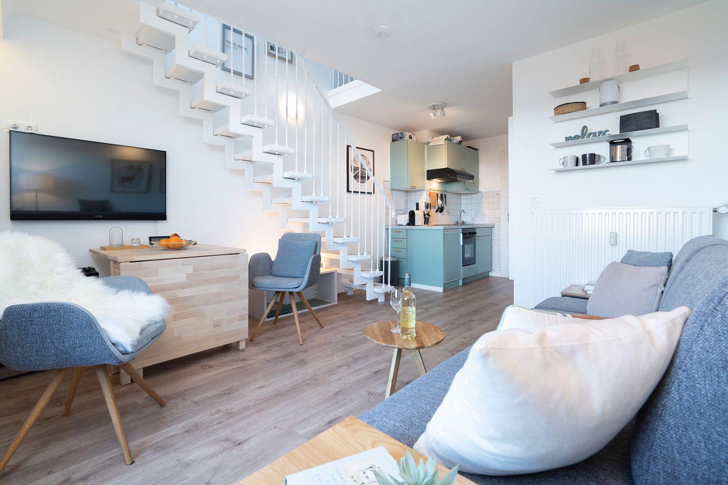 Liebevoller Hyggecharme über zwei Etagen für bis zu 3 Personen mit Pool am Strand vom Badeort Niendorf.