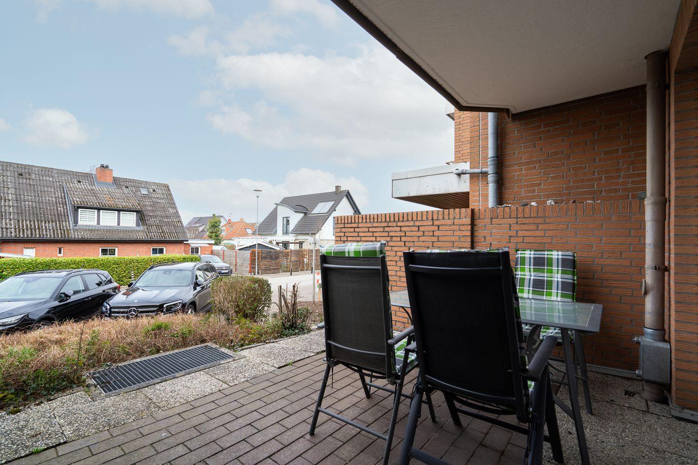 Strandnahe Ferienwohnung in Niendorf mit Terrasse und privatem Parkplatz für entspannte Urlaubstage.