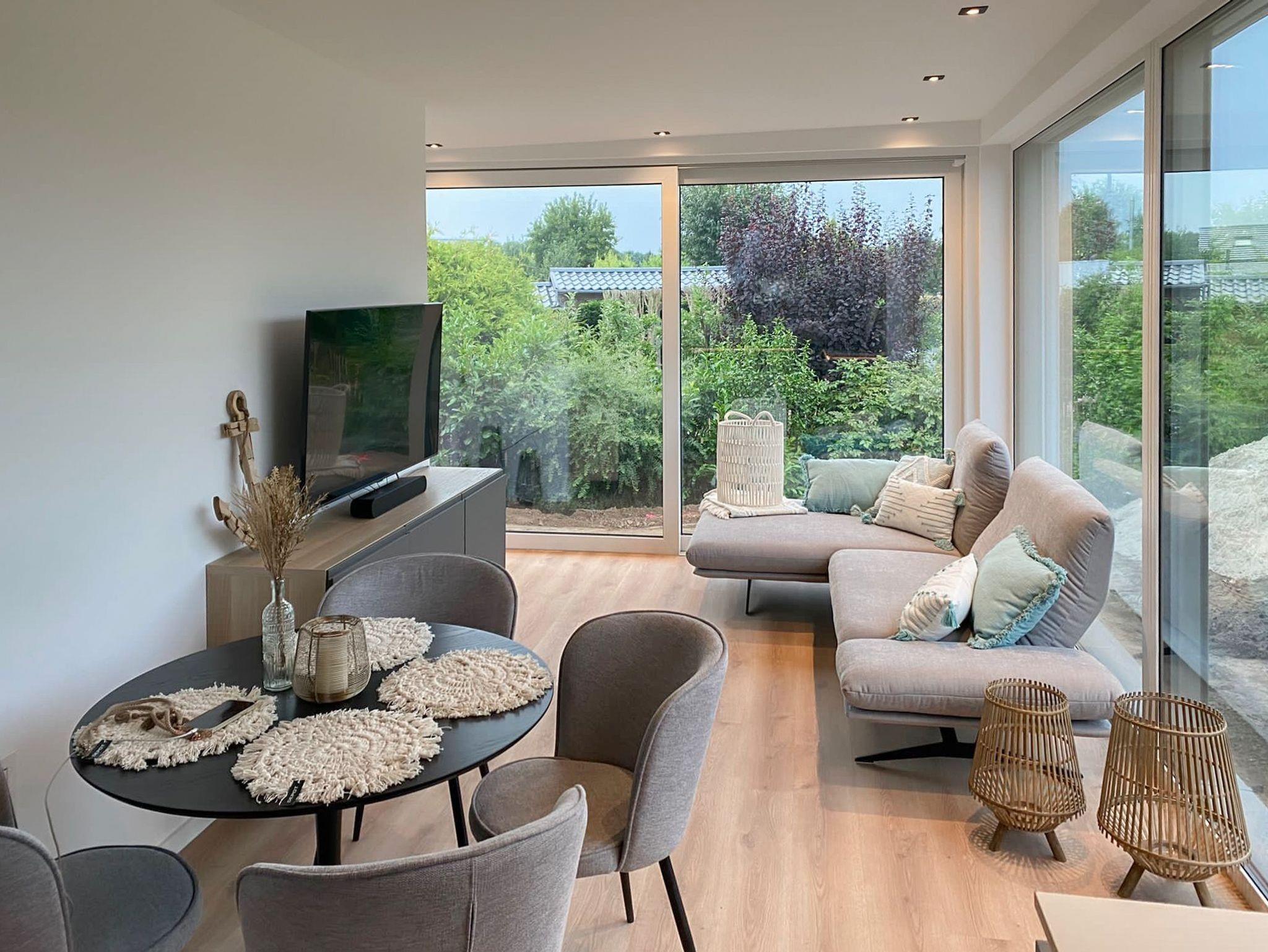 Vollständig entkernt und aufwendig renoviert in 2024, erwartet Sie das Yachthus auf einem 700qm großem, eingezäuntem Grundstück und einer 40qm großen Holzterrasse in Südwestausrichtung. Das Ferienhaus bietet zeitgemäßen Luxus für 2 Personen und jeglichen Komfort wie Fußbodenheizung, elektrische Raffstores und bodentiefe Fensterelemente für ein offenes Raumgefühl. Die äußerst geschmackvolle Einrichtung und die exklusive Ausstattung gewährleisten einen hohen Wohnstandard in einem herrlichen Ambiente. Es erwartet Sie eine perfekt ausgestattete Wohnküche mit anschließendem Ess- und Wohnbereich mit schönem Blick in den Garten und auf die äußerst großzügig angelegte Holzterrasse. Das traumhafte Sonnendeck ist mit einem Essbereich sowie gemütlichen Loungemöbeln ausgestattet und ist ein echtes Highlight mit teilweiser Überdachung und windgeschütztem Bereich für viele entspannte Stunden im Freien. Das separate Schlafzimmer ist mit einem Doppelbett (180x200) und einem großen Kleiderschrank eingerichtet.[nbsp] Das edel gestaltete Bad ist mit einer großen bodengleichen Dusche, Waschtisch, WC, Fenster und integriertem Radio ausgestattet. Alle Fenster sind bodentief und mit elektrischen Raffstores versehen, die gleichermaßen für Verdunkelung, Sonnenschutz oder Tageslicht mit Privatsphäre sorgen. Ein Smart TV, eine Sonos Box, Radio und WLAN gehören zur technischen Ausstattung. Ein kombinierter Waschtrocker ist in einem separaten Raum neben der Terrasse untergebracht. 2 Parkplätze befinden sich auf dem Grundstück.