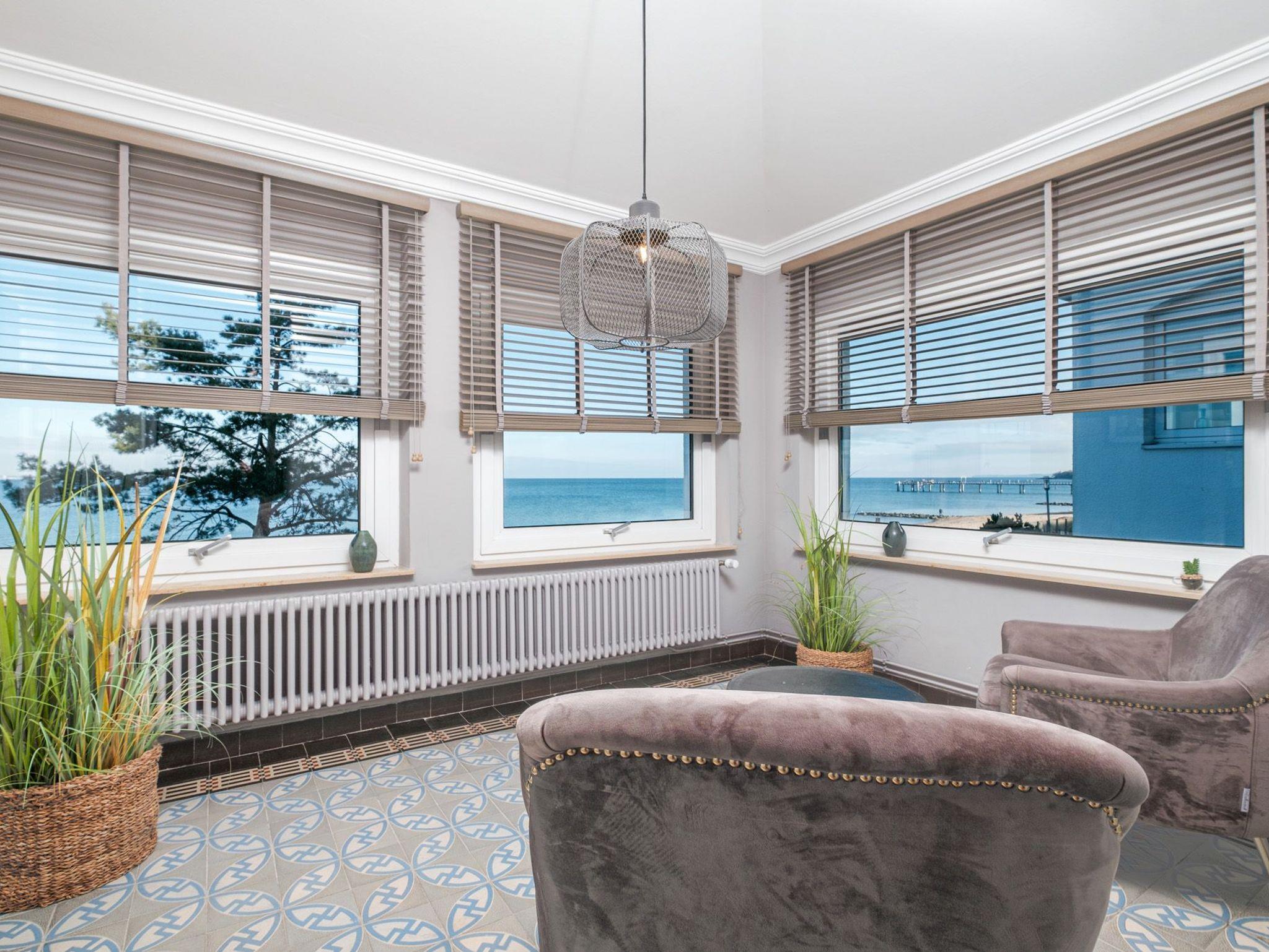 Moderne Ferienwohnung mit Meerblick in Niendorf, direkt am Strand, mit zwei Veranden und komfortabler Ausstattung.