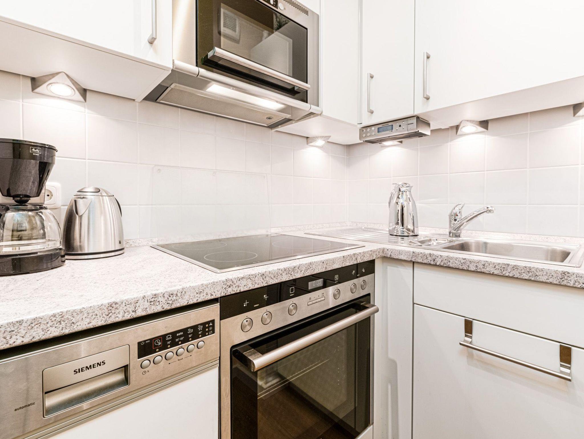 Beim Betreten des in 2023 frisch renovierten Appartements Nr. 29 stehen Sie im Flur, von dem aus alle weiteren Räume abgehen. Auf der rechten Seite befindet sich die voll ausgestattete Küche, die kaum Wünsche offen lässt. Ein Ceranfeld mit Backofen und Mikrowelle setzen Ihnen kaum Grenzen beim Zubereiten leckerer Speisen. Geradeaus gelangen Sie zum hell und freundlich eingerichteten Wohnzimmer, welches über eine Essecke und einen schönen Wohnbereich mit Schlafsofa mit Federkernmatratze (160 cm x 200 cm) verfügt.