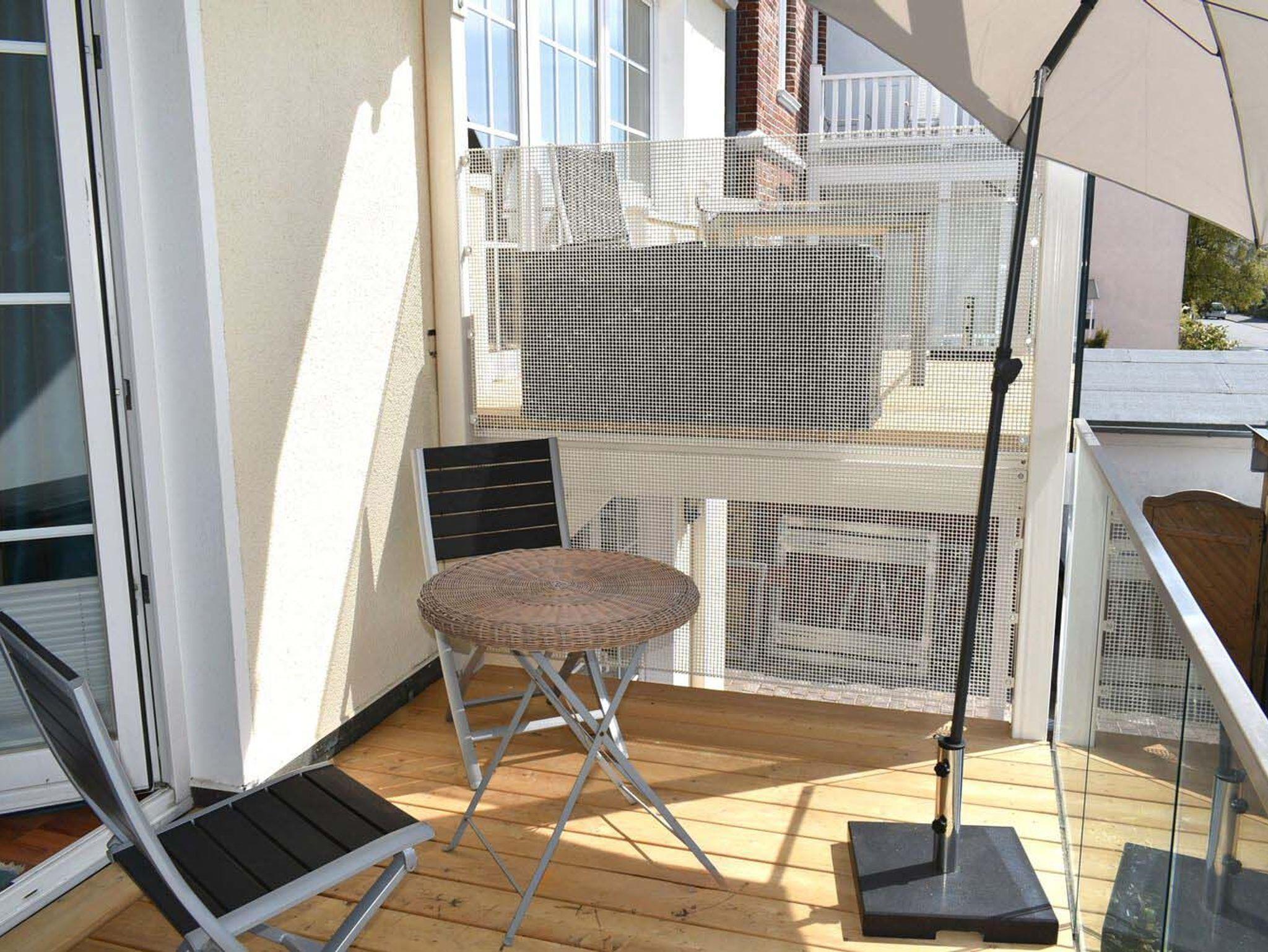 Balkon: 2 Stühle, Nachmittagssonne, Tisch