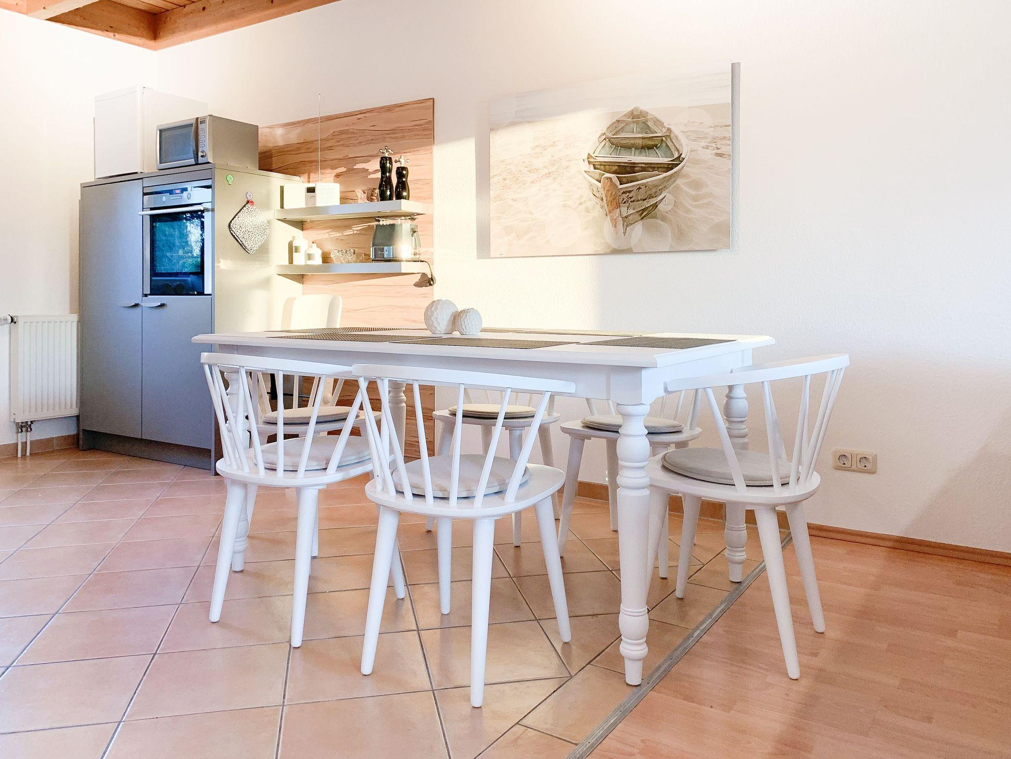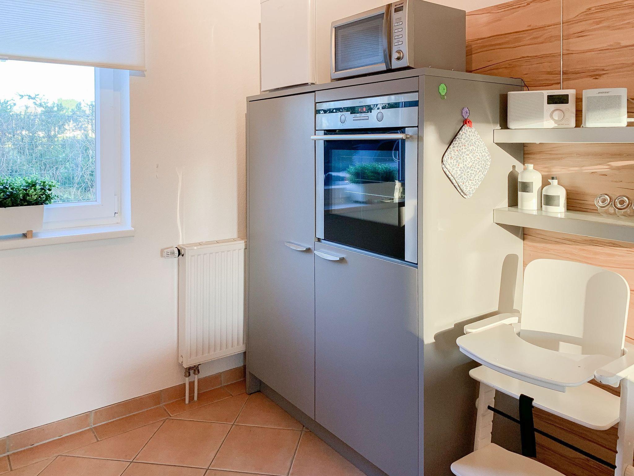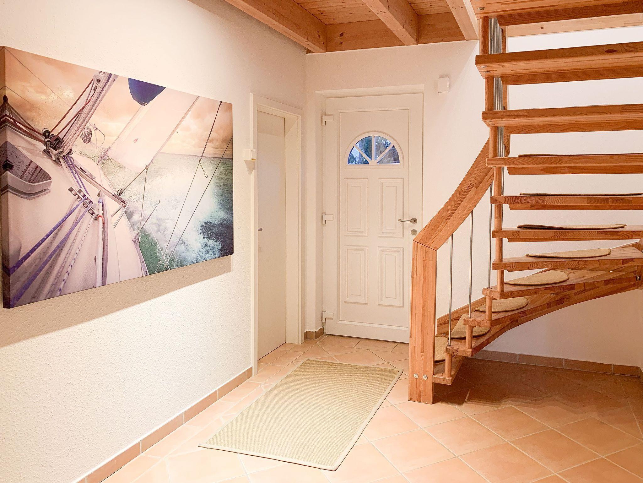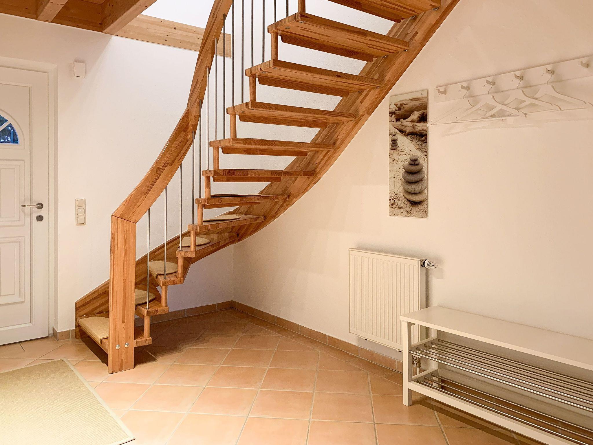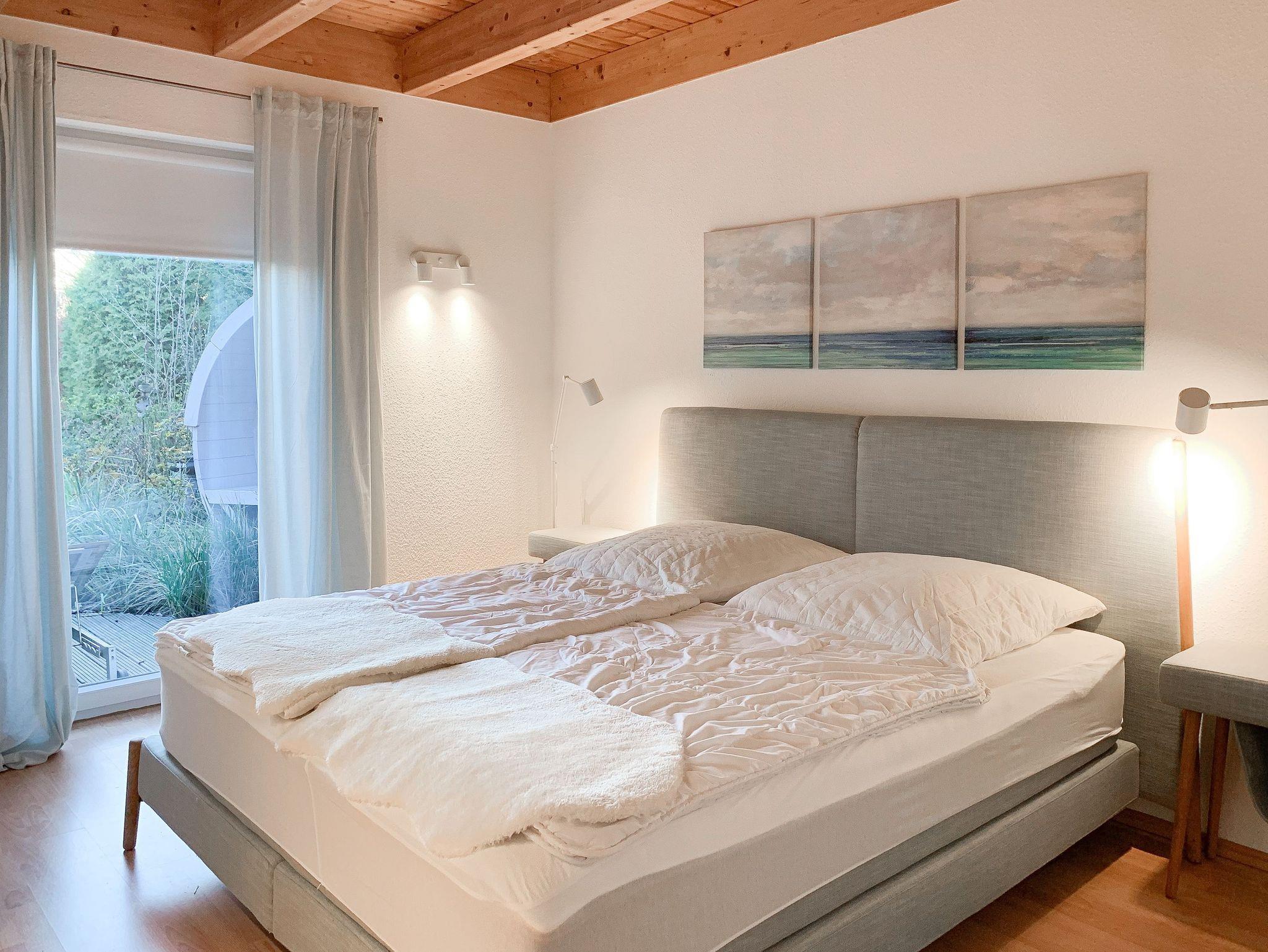 Das Ferienhaus Karlsson umgibt ein großer, eingezäunter Garten mit Spielgerüst, Gartensauna und schöner Holzterrasse in Südwestausrichtung, selbstverständlich[nbsp][nbsp]mit Gartenmöbeln und Sonnenliegen. Es eignet sich bestens auch für Familien mit Kindern. Auf 125 qm Wohnfläche bietet das Haus mit 3 separaten Schlafzimmern und 2 Bädern ausreichend Platz für 6 Personen plus Kleinkind. Im Erdgeschoss befindet sich der Wohnraum mit offener Einbauküche (Geschirrspüler, Backofen, Mikrowelle) und Essbereich für 6 Personen sowie der Zugang auf die großzügige Holzterrasse mit Süd Ausrichtung. Ein Schlafzimmer mit Doppelbett, ein Duschbad sowie der Hauswirtschaftsraum mit Waschmaschine und Trockner sind ebenfalls im EG untergebracht. Im Obergeschoss befinden sich das zweite Badezimmer mit Dusche und Badewanne und zwei weitere Schlafzimmer. Das eine verfügt über ein Doppelbett und TV, das andere ist ebenfalls mit einem Doppelbett ausgestattet.