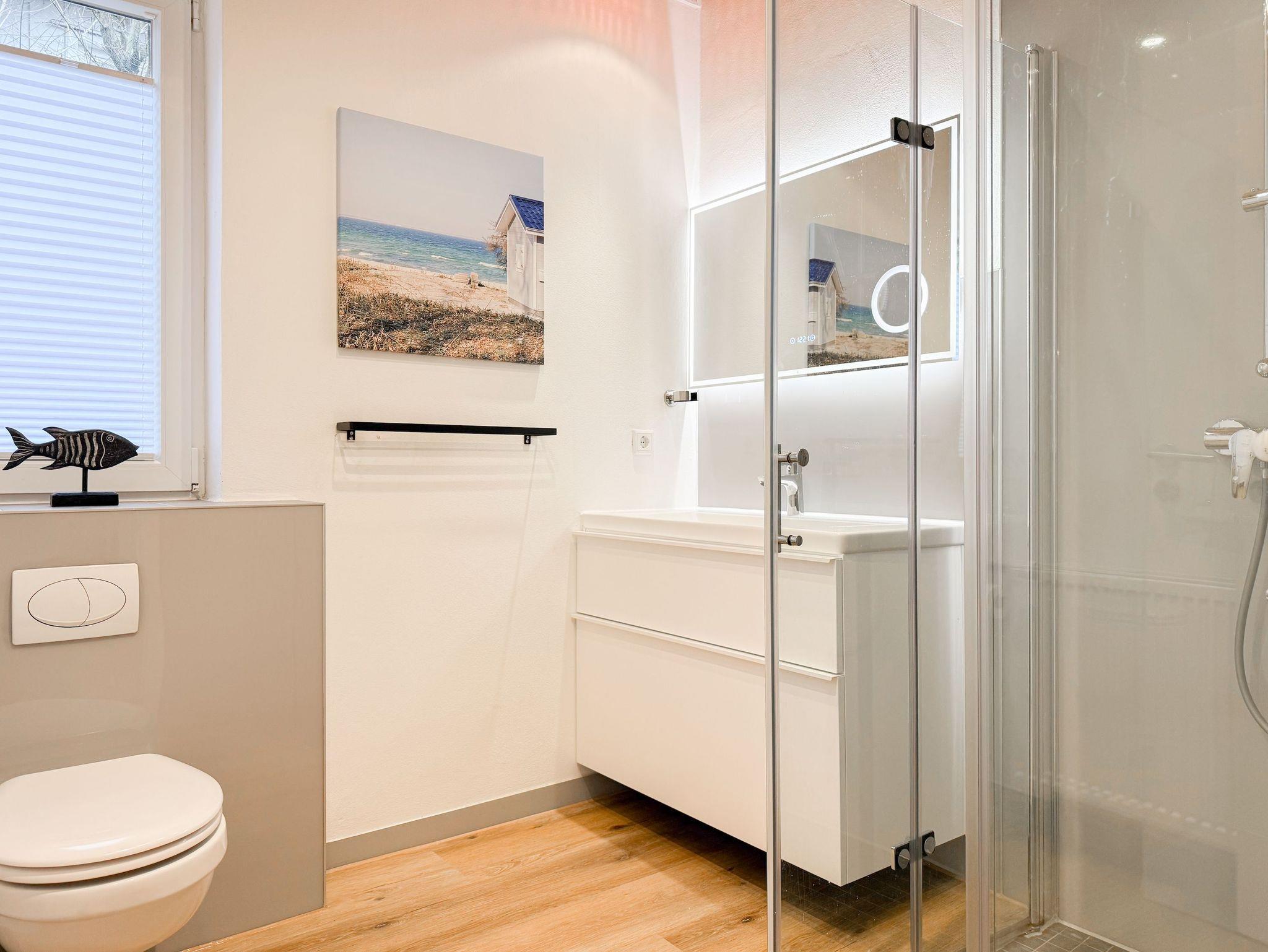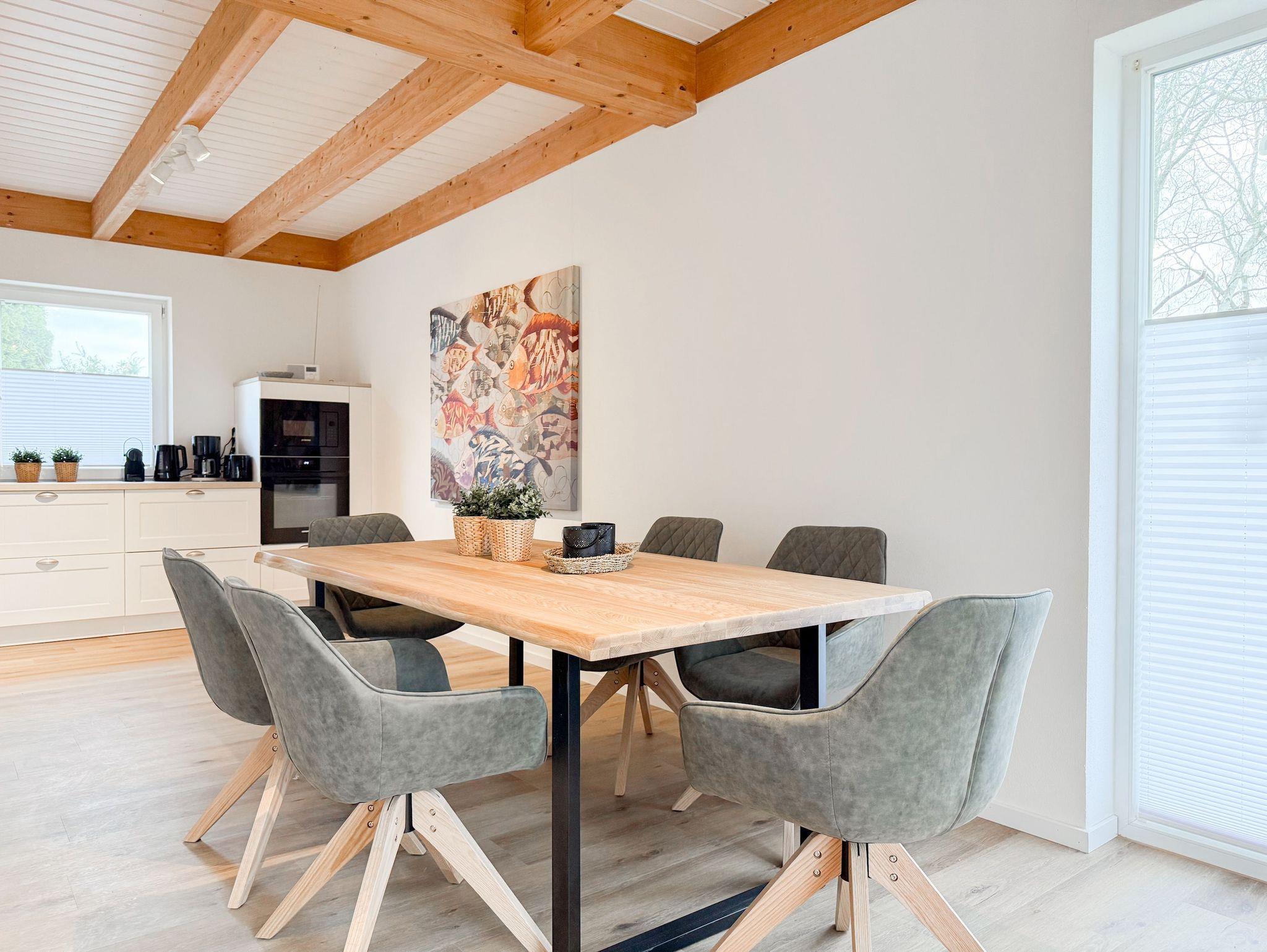 Willkommen in diesem wunderbaren Ferienhaus, frisch renoviert und hochwertig eingerichtet in 2026, das mit 3 Schlafzimmern und 2 Bädern auf über 120 qm Wohnfläche perfekt für 6 Personen geeignet ist, um einen erholsamen Ostseeurlaub in Strandnähe zu verbringen. Das Karlsson erwartet Sie auf einem großen, eingezäuntem Grundstück mit einer tollen Holzterrasse in Südwestausrichtung, die mit Gartenmöbeln und Sonnenliegen ausgestattet ist und einen schönen Blick ins Grüne bietet. Für Saunafreunde befindet sich im Garten ein Saunahäuschen und für die kleinen Gäste ein Klettergerüst mit Rutsche und Schaukel.[nbsp] Es erwartet Sie eine neue, großzügige und perfekt ausgestattete Wohnküche, die alle Annehmlichkeiten bietet, die man für das gemeinsame Kochen benötigt. Hier können Sie sich in geselliger Runde beim Kochen austauschen und kreativ sein. Der anschließende Ess- und Wohnbereich mit schönem Blick in den Garten ist sonnig und hell und bietet ausreichend Raum für gemeinsame Mahlzeiten und geselliges Beisammensein. Die geschmackvolle Einrichtung und die hochwertige Ausstattung sorgen für eine Atmosphäre zum Wohlfühlen in einem herrlichen Ambiente. Eines der drei Schlafzimmer, ein modernes Duschbad, ein großzügiger Eingangsbereich sowie ein Abstellraum mit Waschmaschine und Trockner befinden sich ebenfalls auf der unteren Wohnebene.[nbsp] Im Obergeschoss erwarten Sie zwei weitere Schlafzimmer, eines davon mit zusätzlichem TV und ein großes neuwertiges Bad mit Dusche und Badewanne. Alle Schlafzimmer verfügen über ausreichend Schrankfläche für die Urlaubsgarderobe und Verdunkelungsplissees.