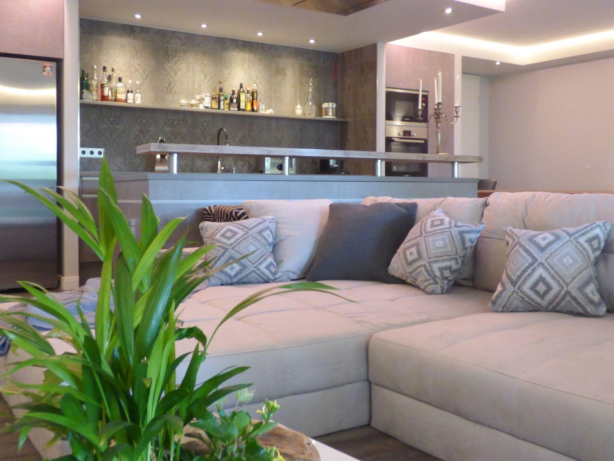 Das Herzstück der Wohnung[nbsp][nbsp]bilden die großzügigen Bereiche Wohnen, Essen und Kochen, ausgestattet mit bodentiefen Fensterelementen mit Blick[nbsp] auf die riesige, überdachte Veranda, die sich über die gesamte Hausbreite erstreckt und den Garten. Genießen Sie den tollen Außenbereich zu jeder Tageszeit. Es erwartet Sie eine hochmoderne Designküche, perfekt ausgestattet mit allen technischen Geräten und integriertem Weinkühlschrank, ein großzügiger [nbsp]Essbereich sowie eine hochwertige Wohnlandschaft mit TV und Highspeed WLAN. Es stehen zwei separate Schlafzimmer, ausgestattet mit Boxspringbetten und TV[nbsp][nbsp]sowie ein[nbsp] tolles Wellnessbad mit riesiger Badewanne und ein weiteres Duschbad zur Verfügung. Im Abstellraum ist ein Waschtrockner untergebracht. Ein PKW Stellplatz befindet sich auf dem Grundstück direkt an der Wohnung.