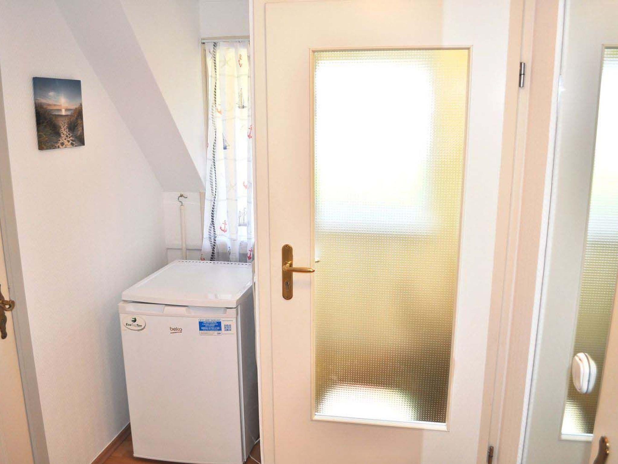 Flur: Garderobe, Kühlschrank mit 3* Gefrierfach, Spiegel
