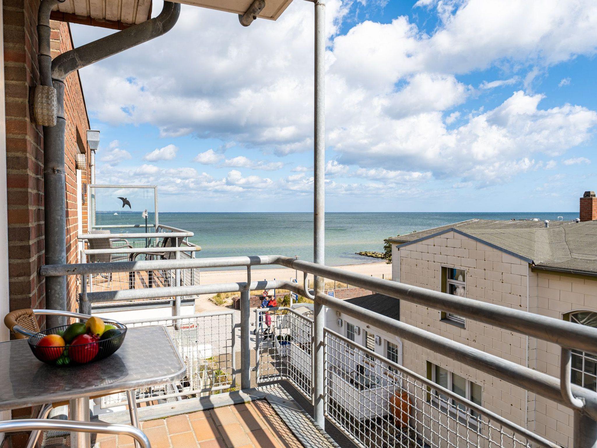 Hier haben Sie auch Zutritt auf dem nach Osten ausgerichteten Balkon, der Ihnen sogar seitlichen Meerblick auf die Lübecker Bucht der Ostsee bietet.