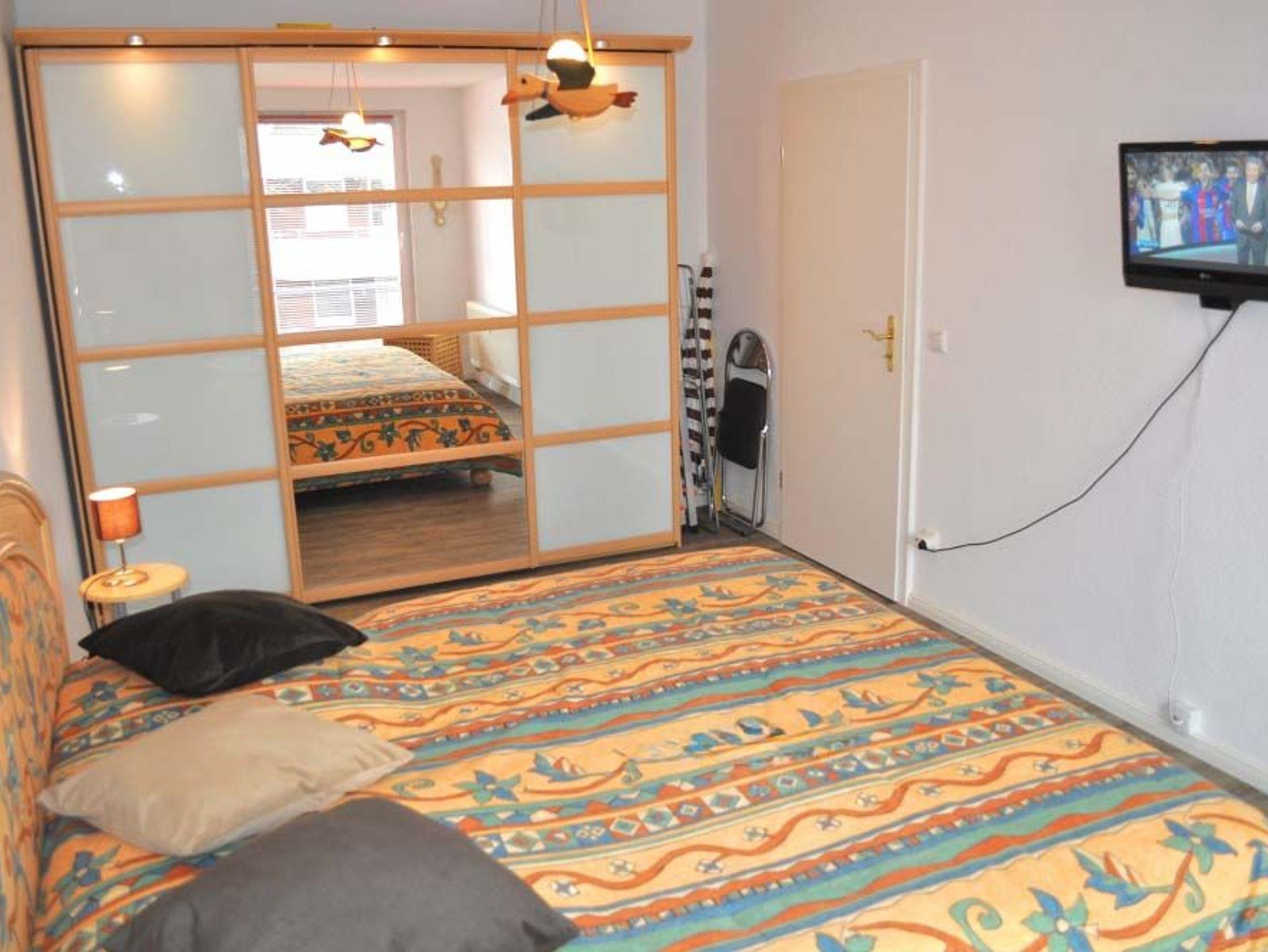 Schlafzimmer 1: 2 Matratzen, 2 Nachttische, Beistelltisch, Doppelbett 2,00 x 1,80 m, Flachbildschirm, Kabel-TV, Klappstuhl, Kleiderschrank, Lattenrost Kopfteil verstellbar, Spiegel, Staubsauger
