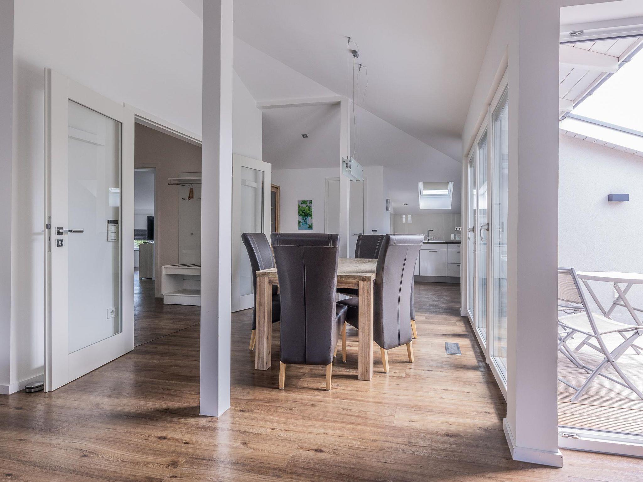 Moderne, Neubau-Ferienwohnung mit exclusiver Ausstattung wie Parkett, Kamin, Küche mit Kochinsel. Garage mit direktem Zugang zum Haus.