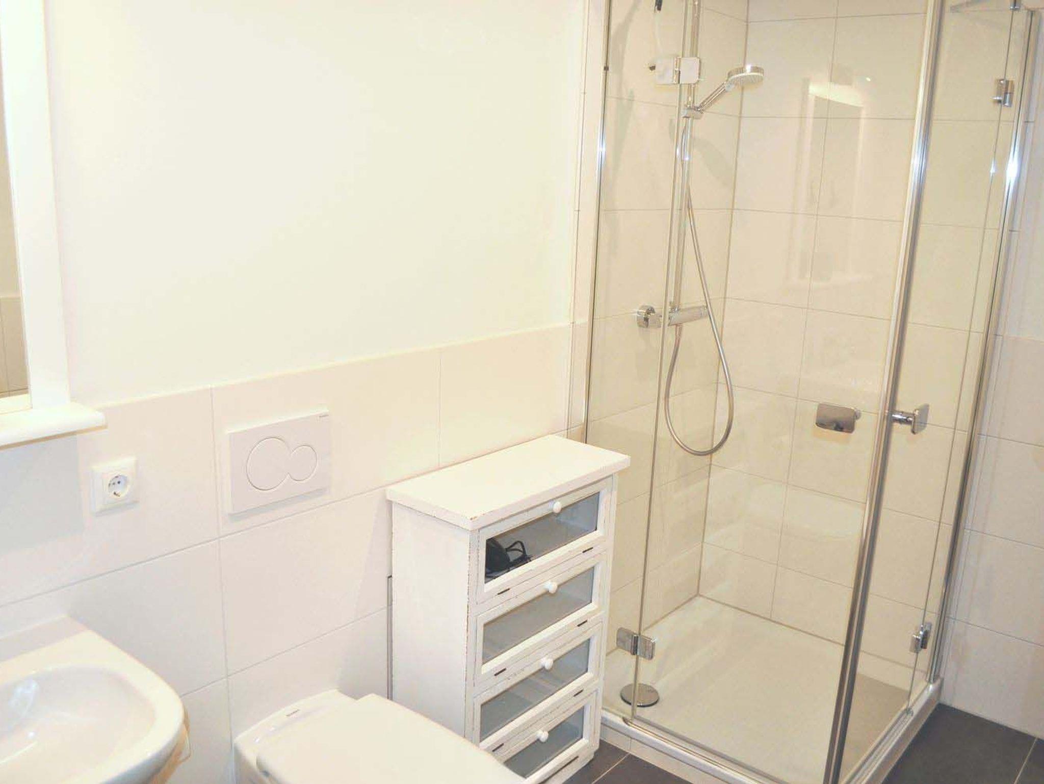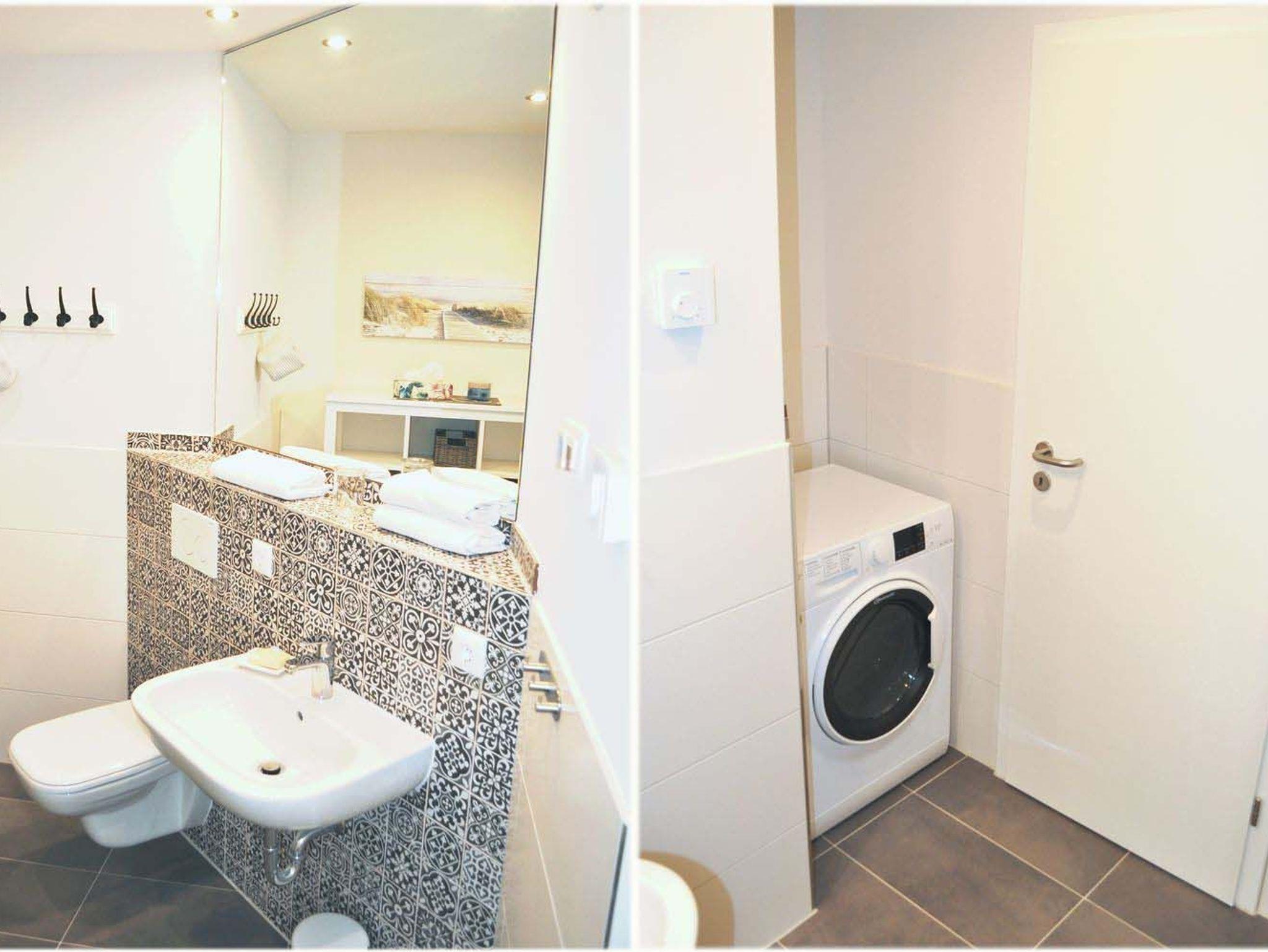 Gäste-WC: WC, Waschbecken, Spiegel, Fußbodenheizung