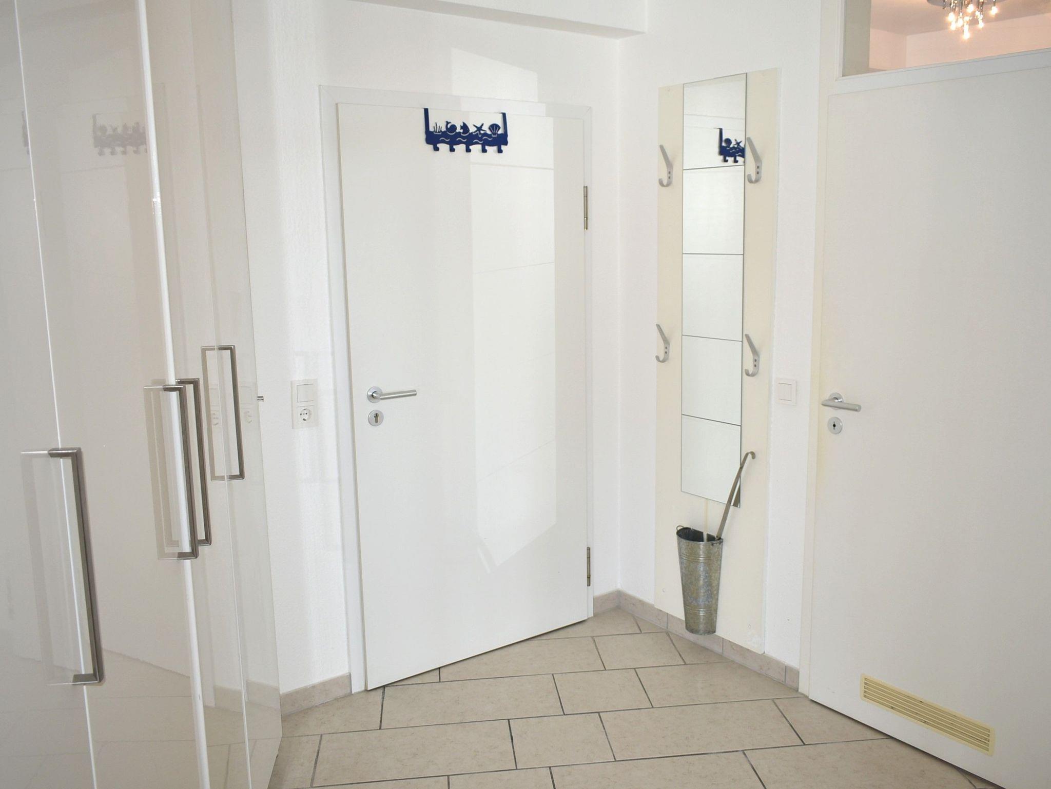 Flur: Einbauschrank, Garderobe, Spiegel, Staubsauger, Wäscheständer