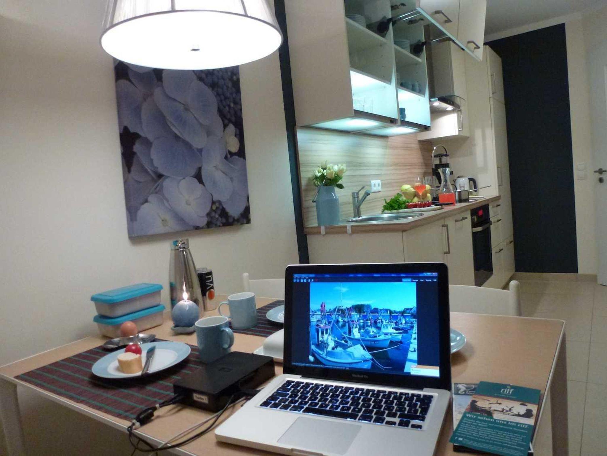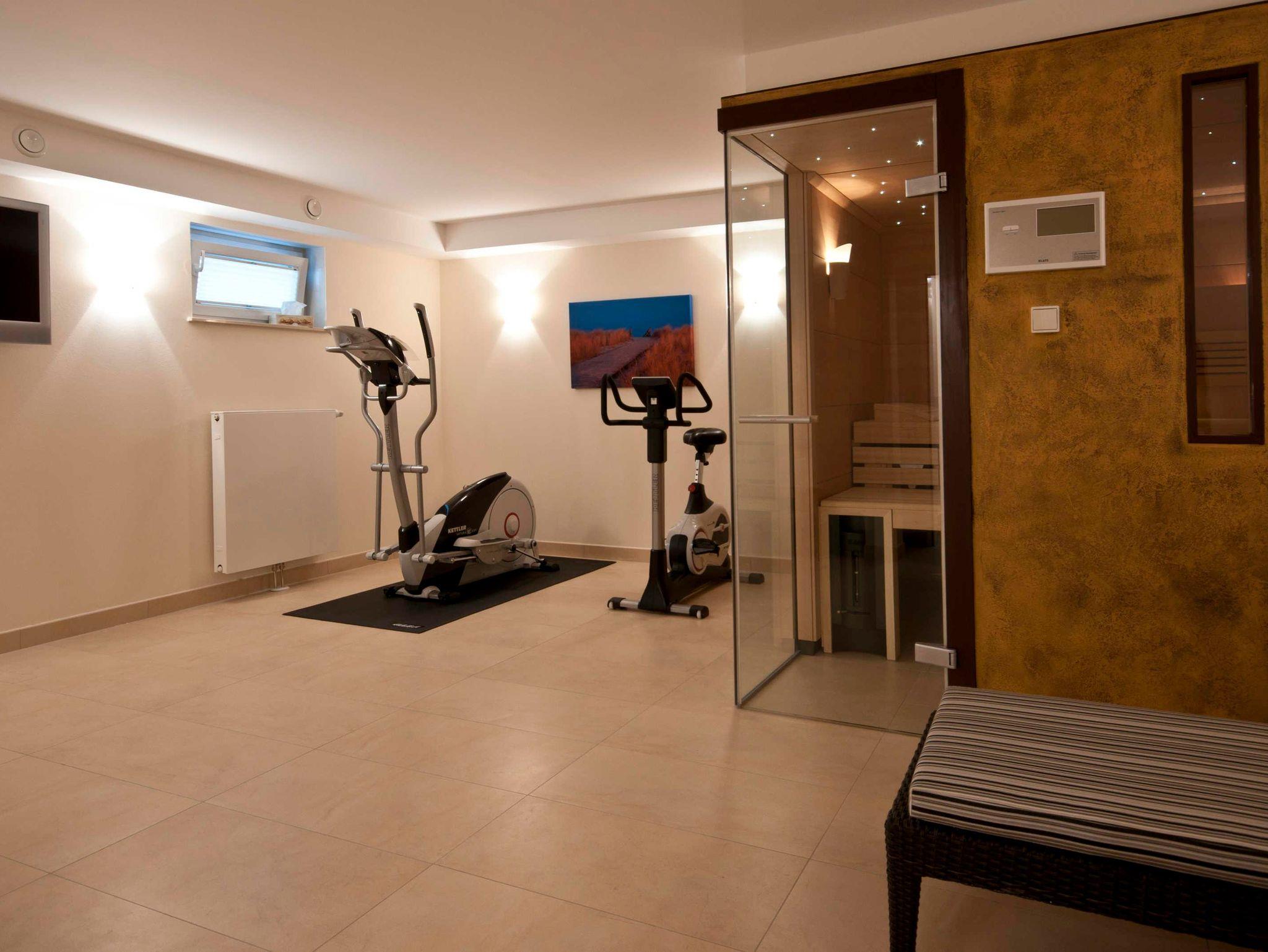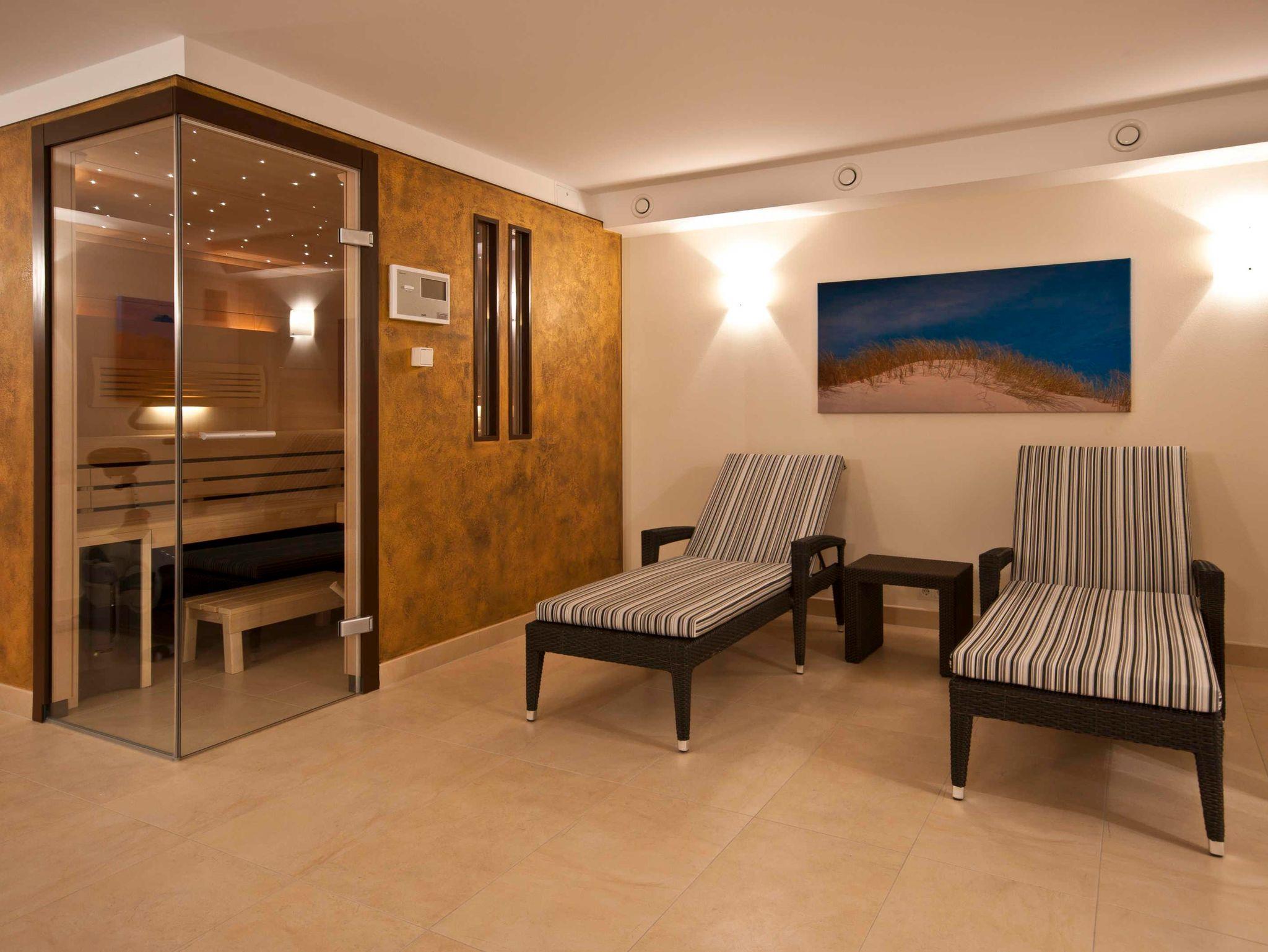 In unserem Herzstück der 144 qm großen Wohnung Captain´s Home können Sie gemütlich vor dem Holzkamin verweilen mit Freunden oder Ihrer Familie mit bis zu 6 Personen. Im Wellnessbereich finden Sie unsere Klafssauna mit Regendusche und Fitnessgeräten wie einem Crosstrainer und Ergometer. Ladestationen für Ihr Elektrofahrzeug im Carport sind vorhanden.