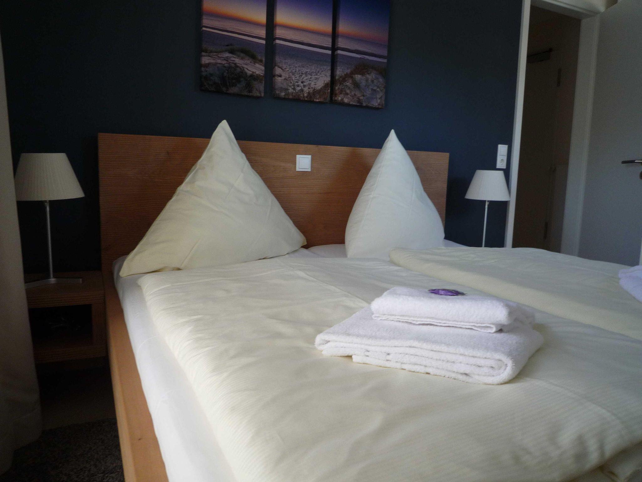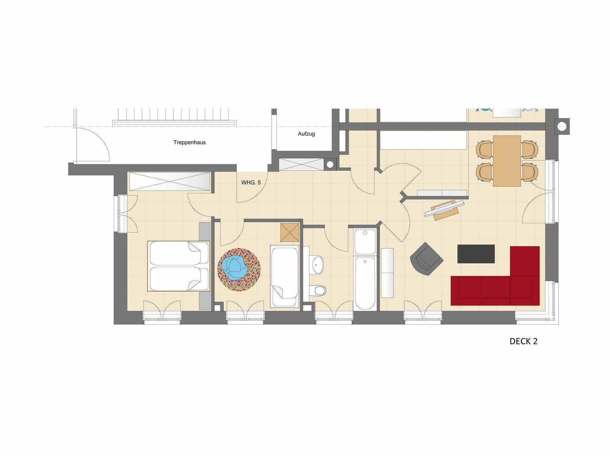 Die exklusive Ferienwohnung Deck 3 befindet sich im Erdgeschoss des Ferienhauses Ostsee Lodges mit Aufzug, Sauna und Fitnessbereich. Genießen Sie Ihren Urlaub in der 75 qm großen, lichtdurchfluteten Wohnung mit bodentiefen Fenstern, Südost Balkon und elektrischer Sonnenmarkise. Sie gelangen von der komfortablen halboffenen Küche in den großzügigen Wohn-Essbereich, einfach zum Wohlfühlen. In den 2 separaten Schlafzimmern mit TV erwartet Sie hoher Schlafkomfort mit höhenverstellbaren Lattenrosten. Ein Schlafzimmer ist mit einem Doppelbett, das andere mit einem spezial angefertigten Etagenbett (90x200) mit Buch- und Leseablage ausgestattet. Das hochwertige Bad mit viel Tageslicht ist mit einer Glaskomfortdusche, Badewanne, Fußbodenheizung und Handtuchwärmer ausgestattet. Im kleinen Hauswirtschaftsraum steht ein Waschtrockner. Carpot mit Ladestation und Fahrradhäuschen ist vorhanden.