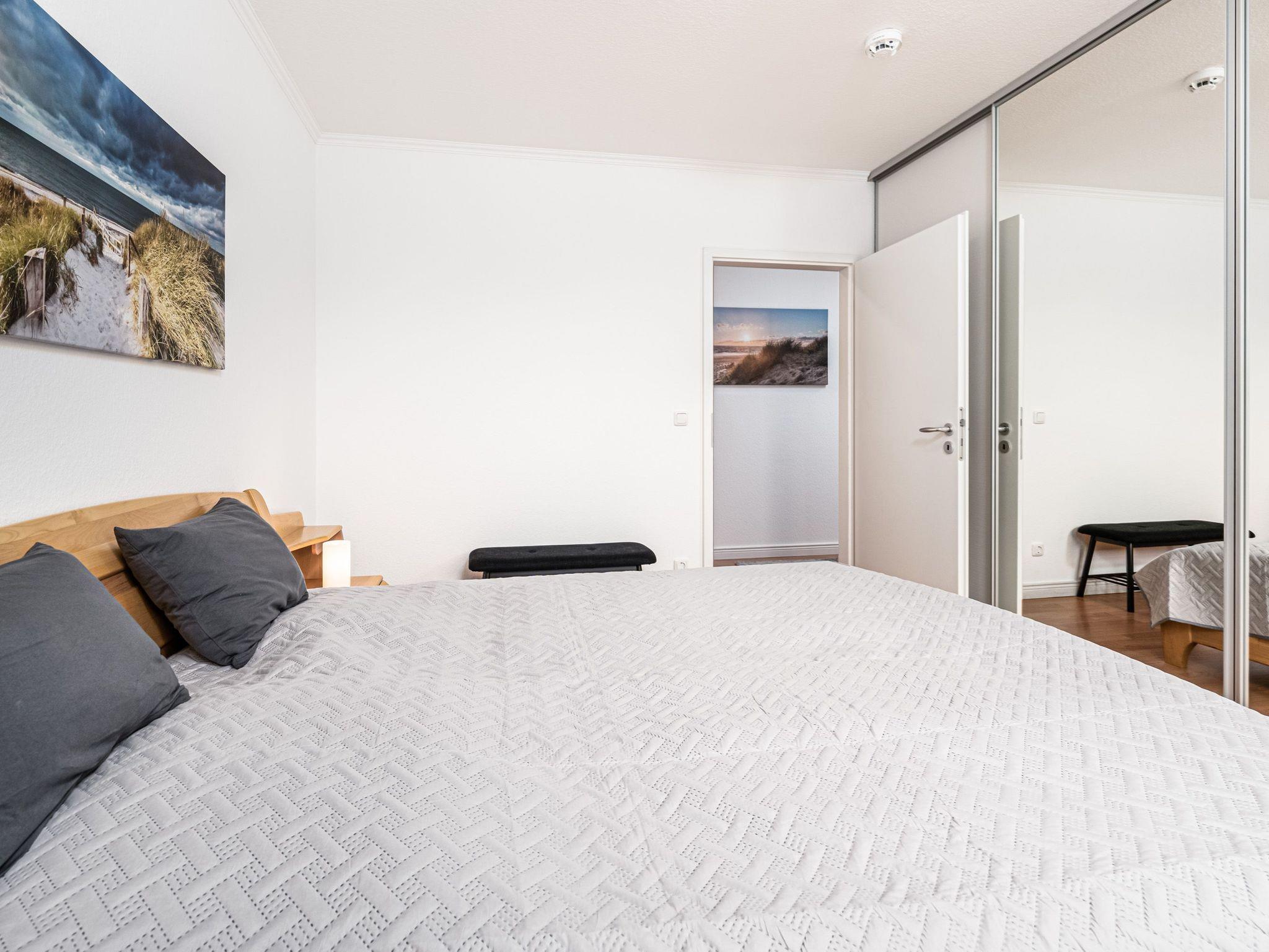 Das separate Schlafzimmer ist mit einem großem Kleiderschrank und bequemen Doppelbett ausgestattet.