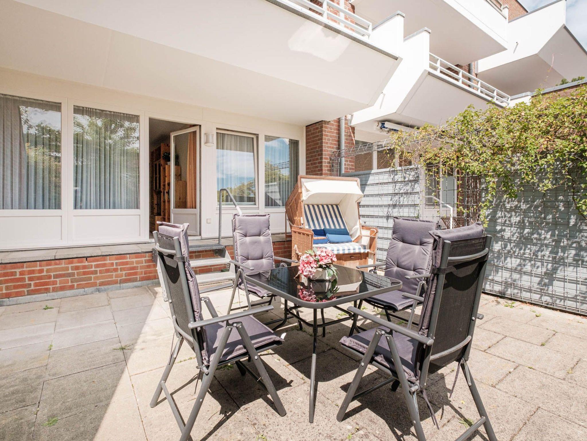 Im eigenen Strandkorb auf der nach Osten ausgerichteten großen Terrasse lassen sich entspannte Stunden genießen.