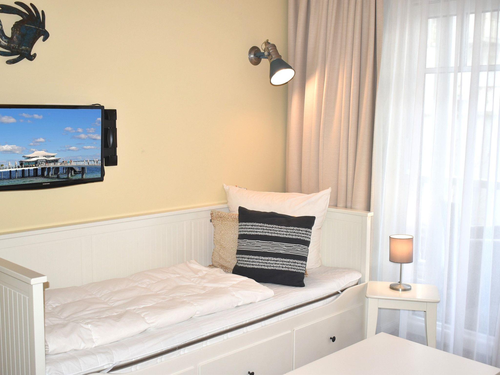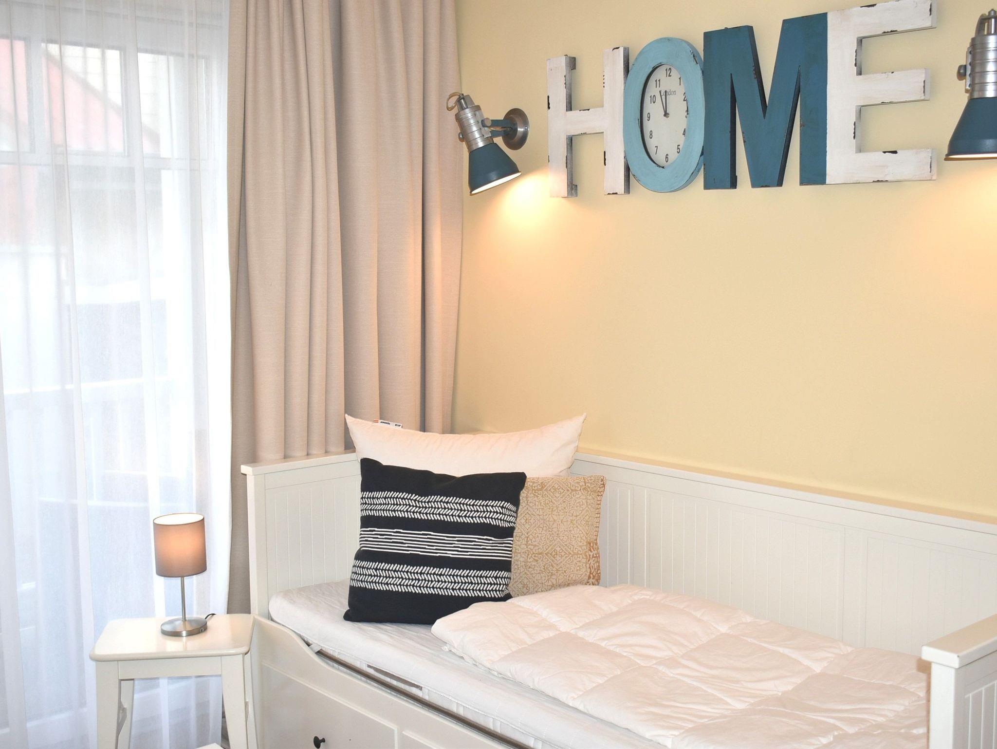 Schlafzimmer 2: 2 Einzelbetten 2,00 x 0,80 m, 2 Hocker, Flachbildschirm, Kleiderschrank, Kommode, Sat-TV, Spiegel, Tisch