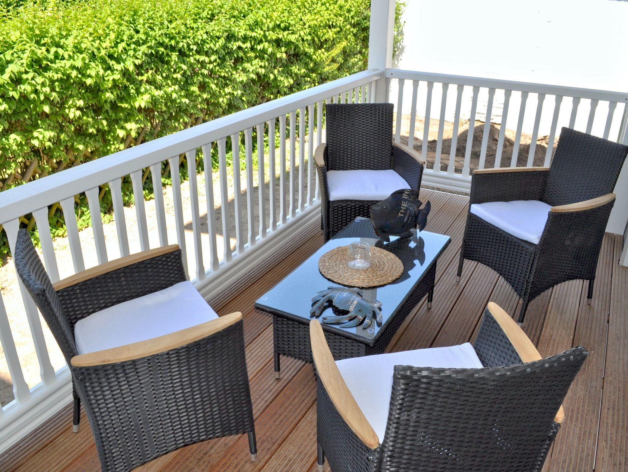 Balkon: 4 Korbstühle, Nord- Westlage, Tisch, überdacht