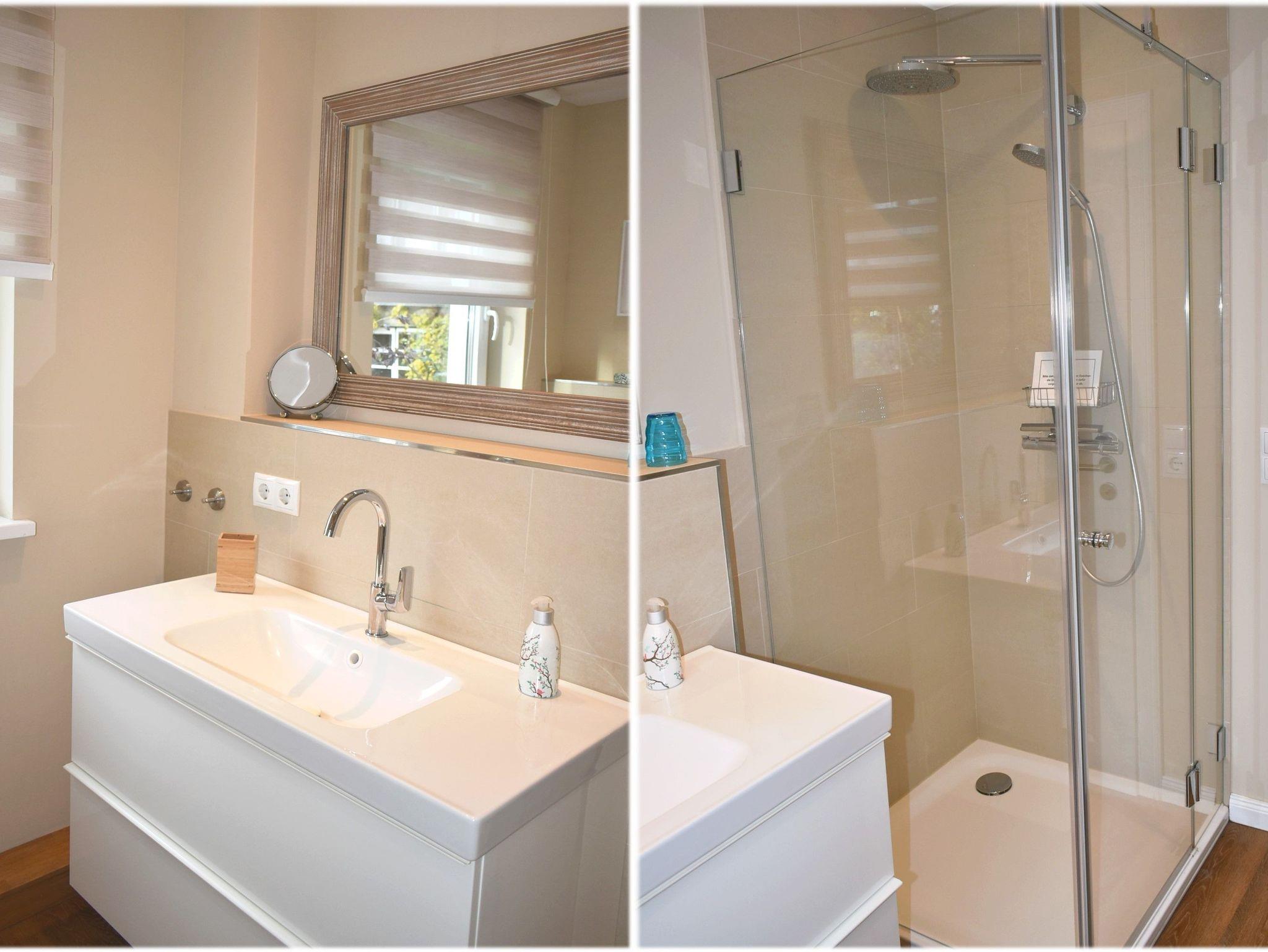 Bad 2: Duschkabine, Regen-Dusche, Spiegel, Unterschrank, Waschtisch, WC