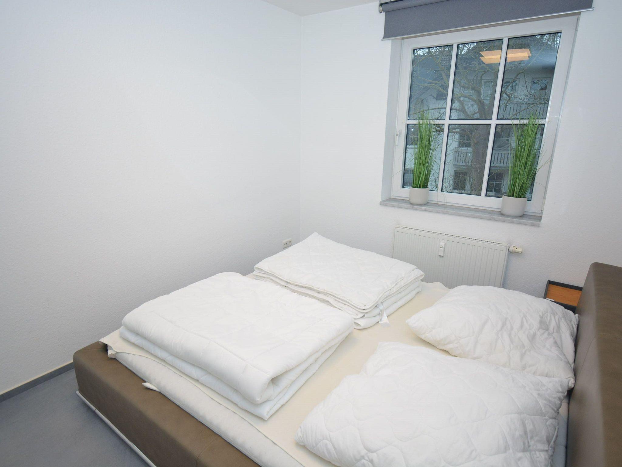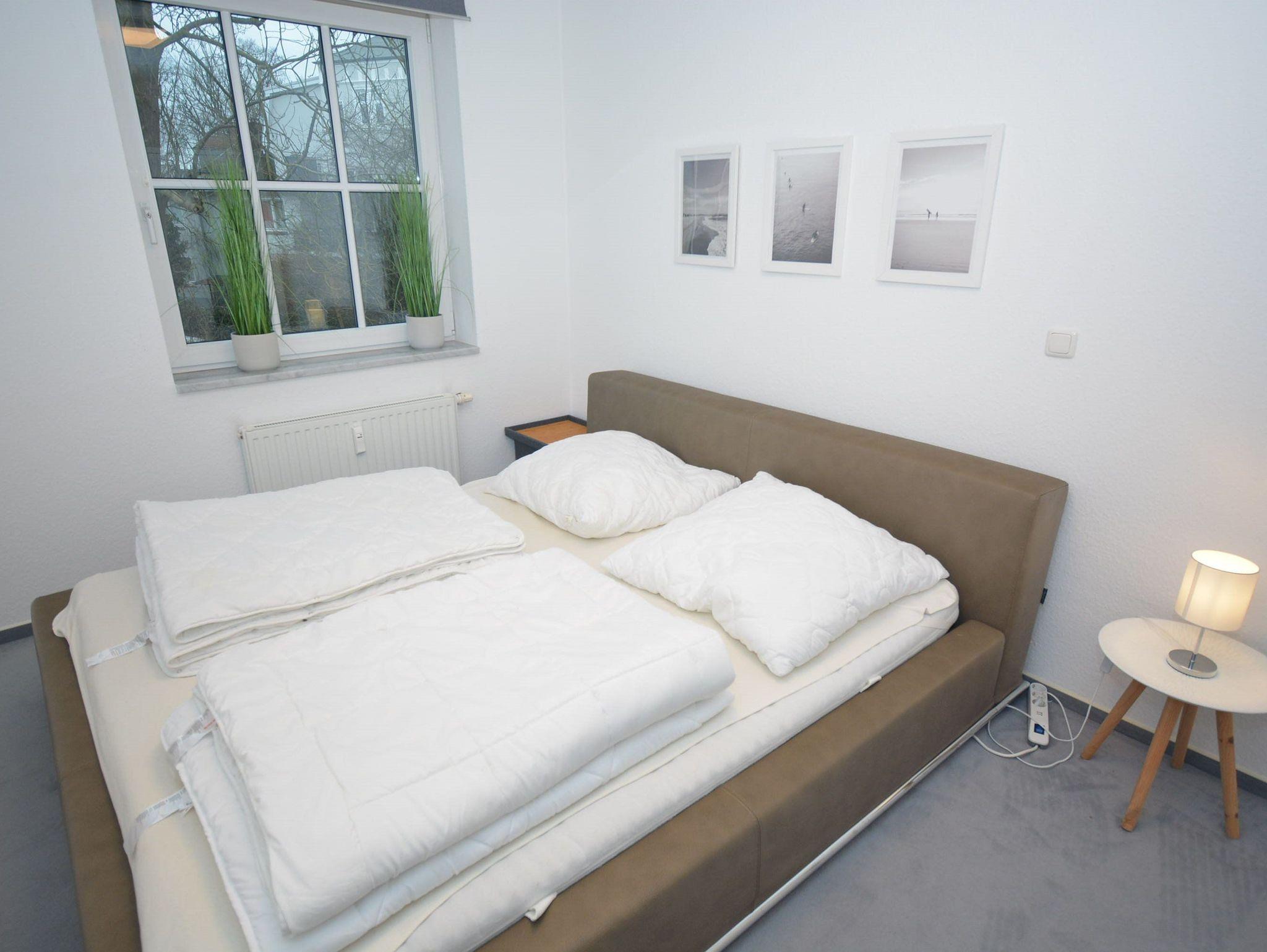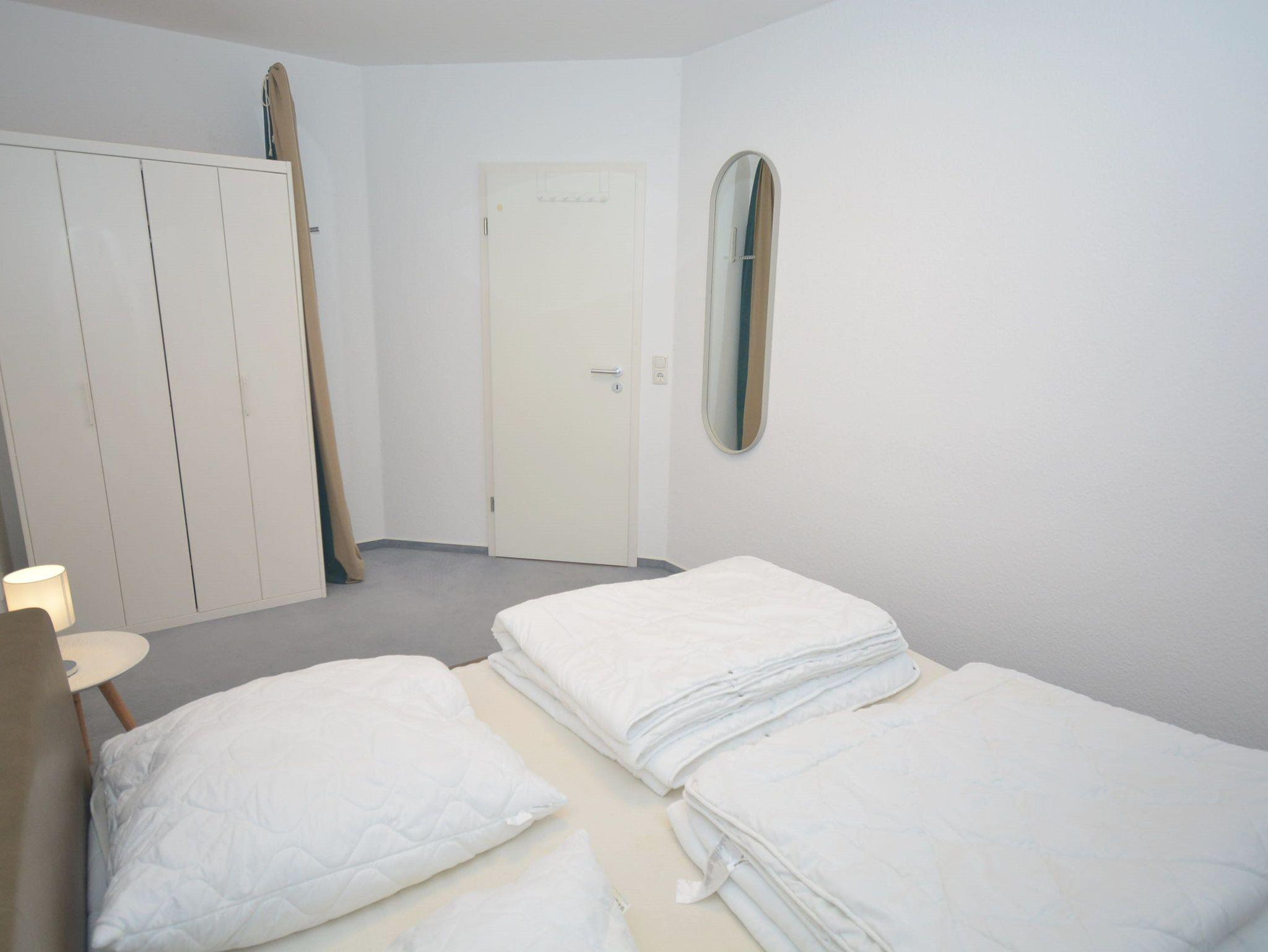 Schlafzimmer 1: 2 Nachttische, Doppelbett 2,00 x 1,80 m, Kleiderschrank, Spiegel, Nachttischlampe