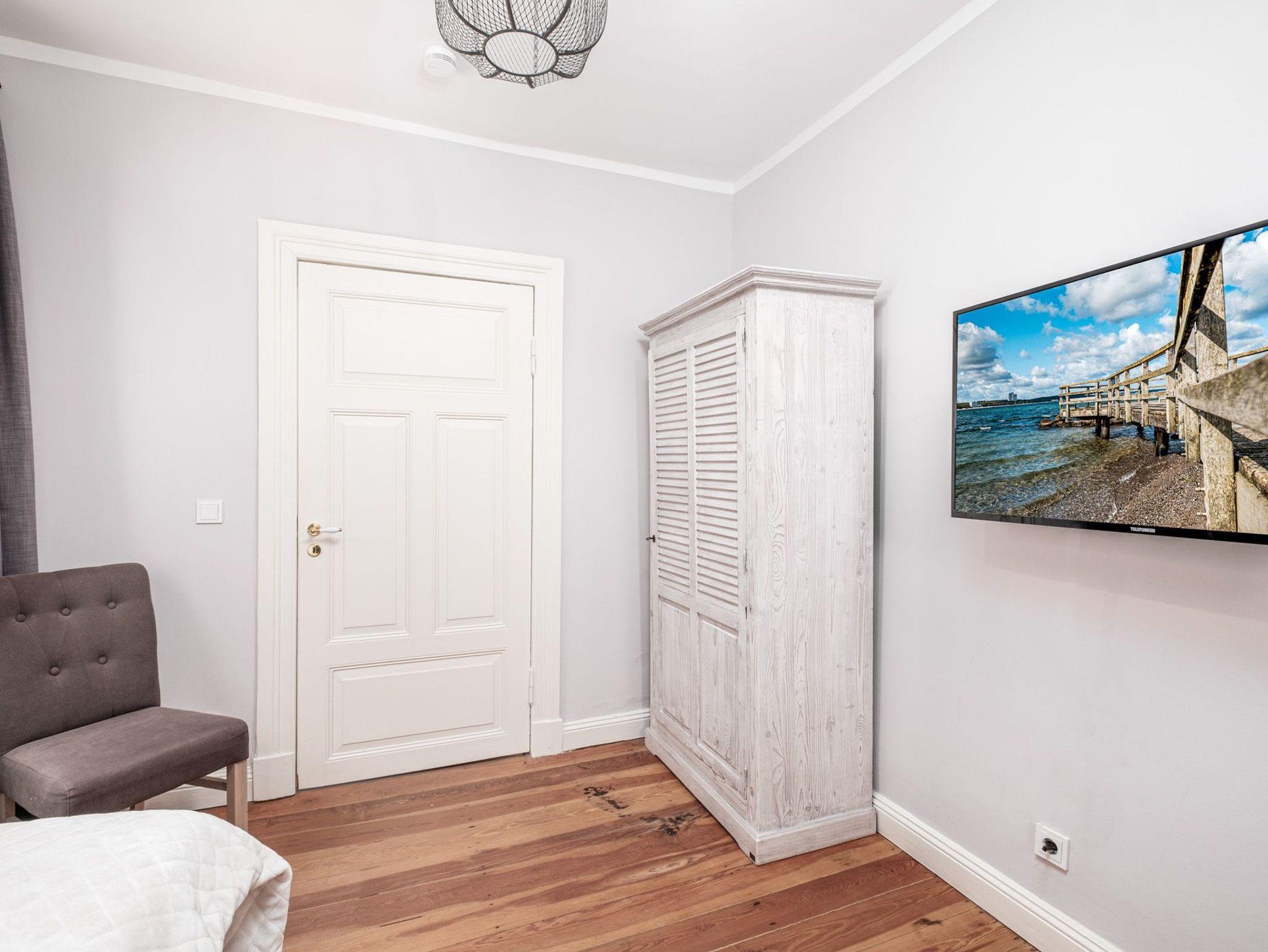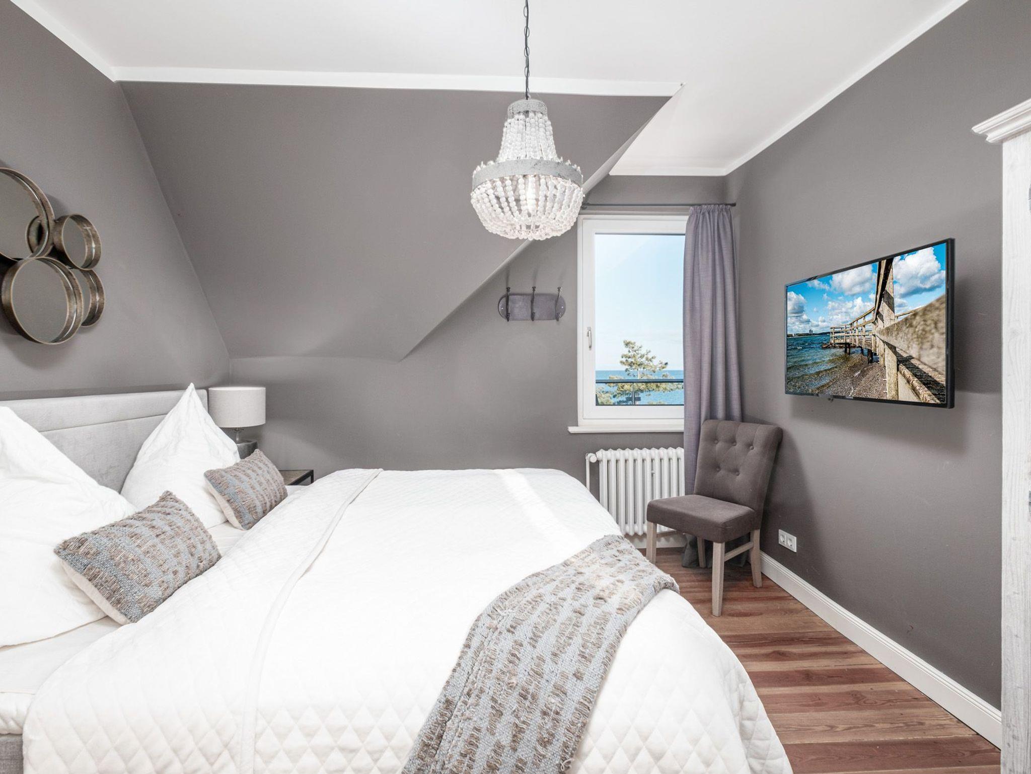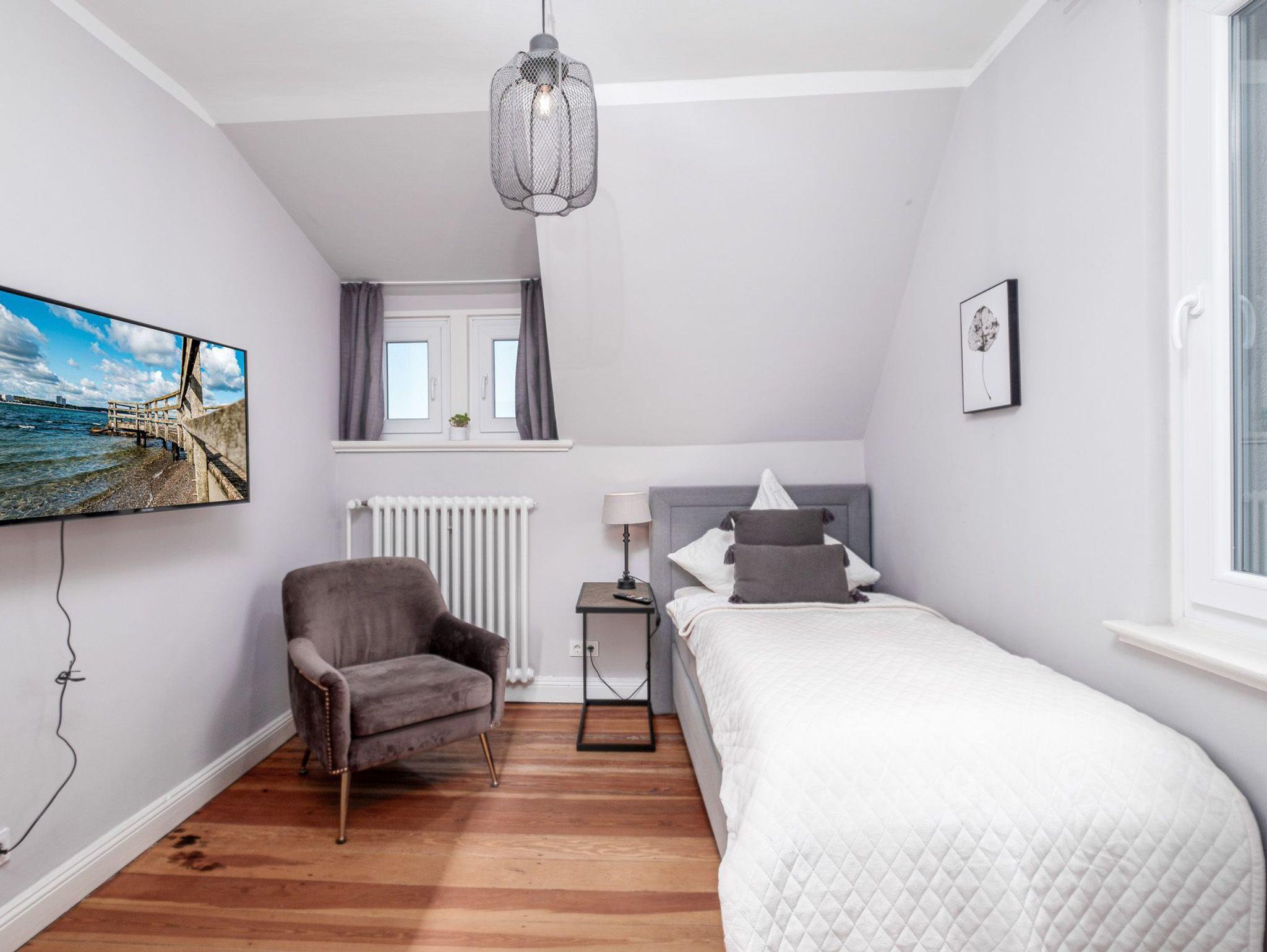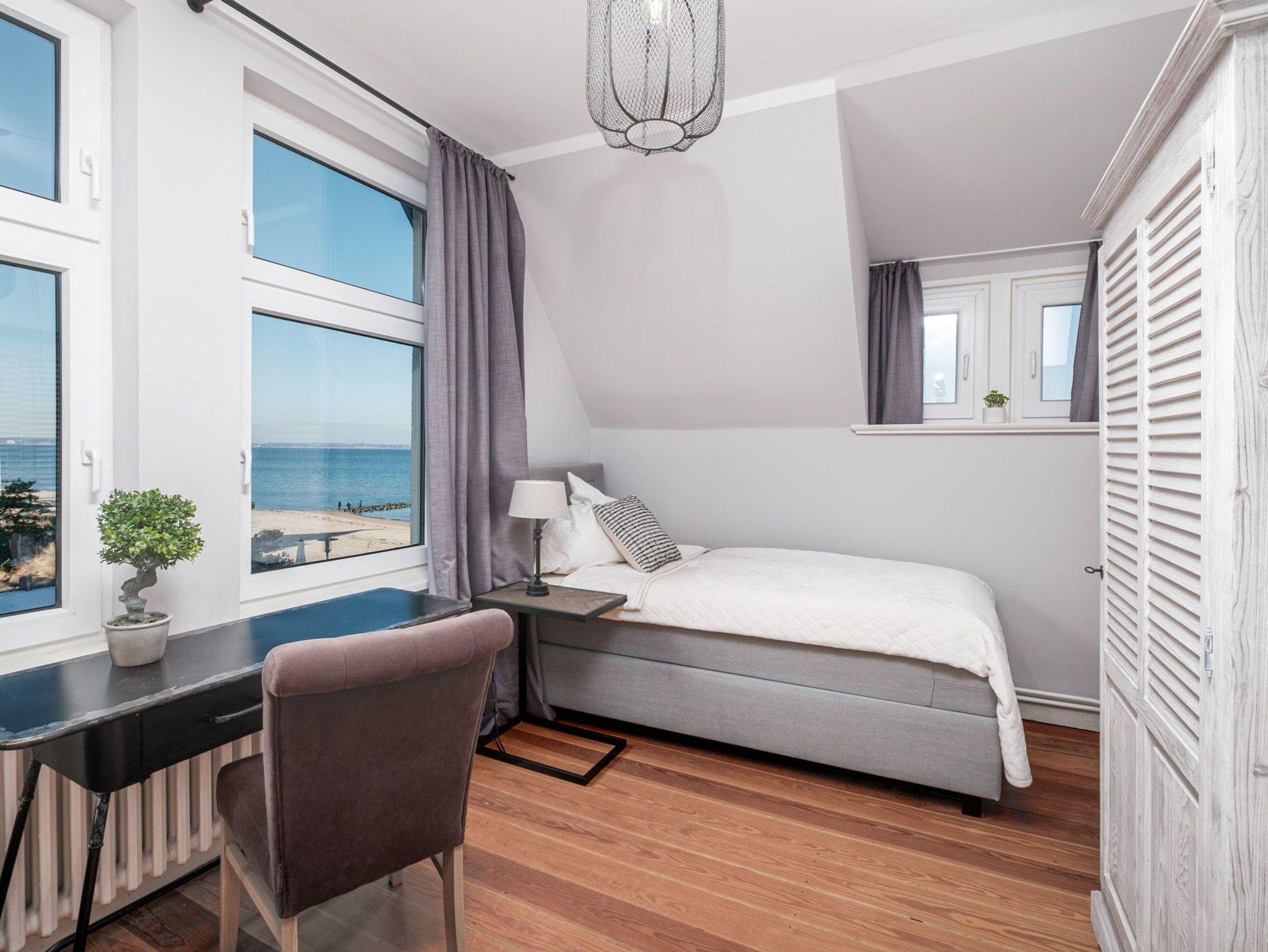 Zusätzlich verfügt diese schöne Niendorf Ferienwohnung mit Meerblick über 3 Schlafzimmer mit komfortablen Boxspringbetten und weiteren Digital-TVs - eines mit einem bequemen Einzelbett (90 cm x 200 cm), das Zweite mit komfortablen Doppelbett (1 x 180 cm x 200 cm) und das dritte Schlafzimmer mit 2 Einzelbetten (je 90 cm x 200 cm).
