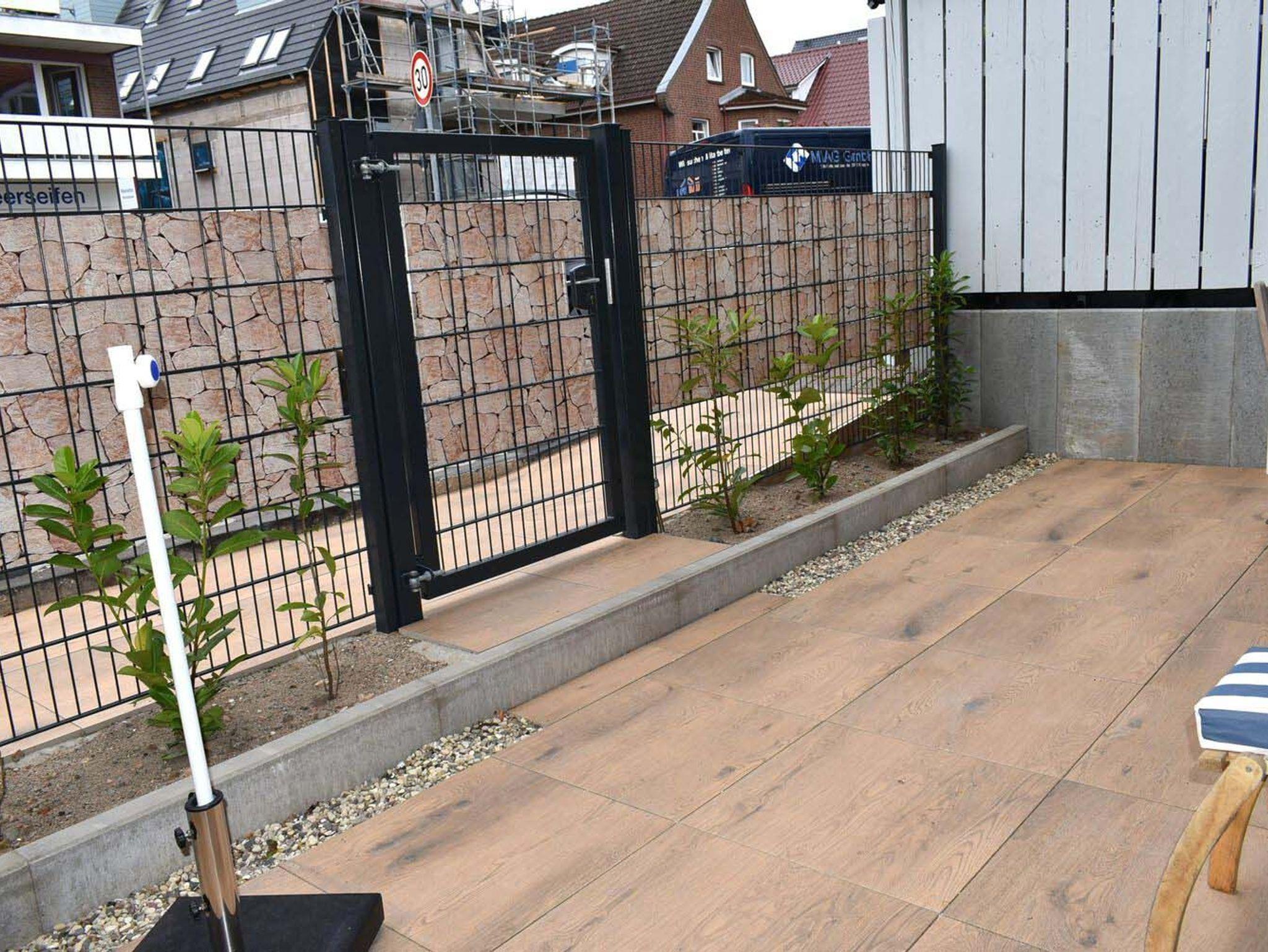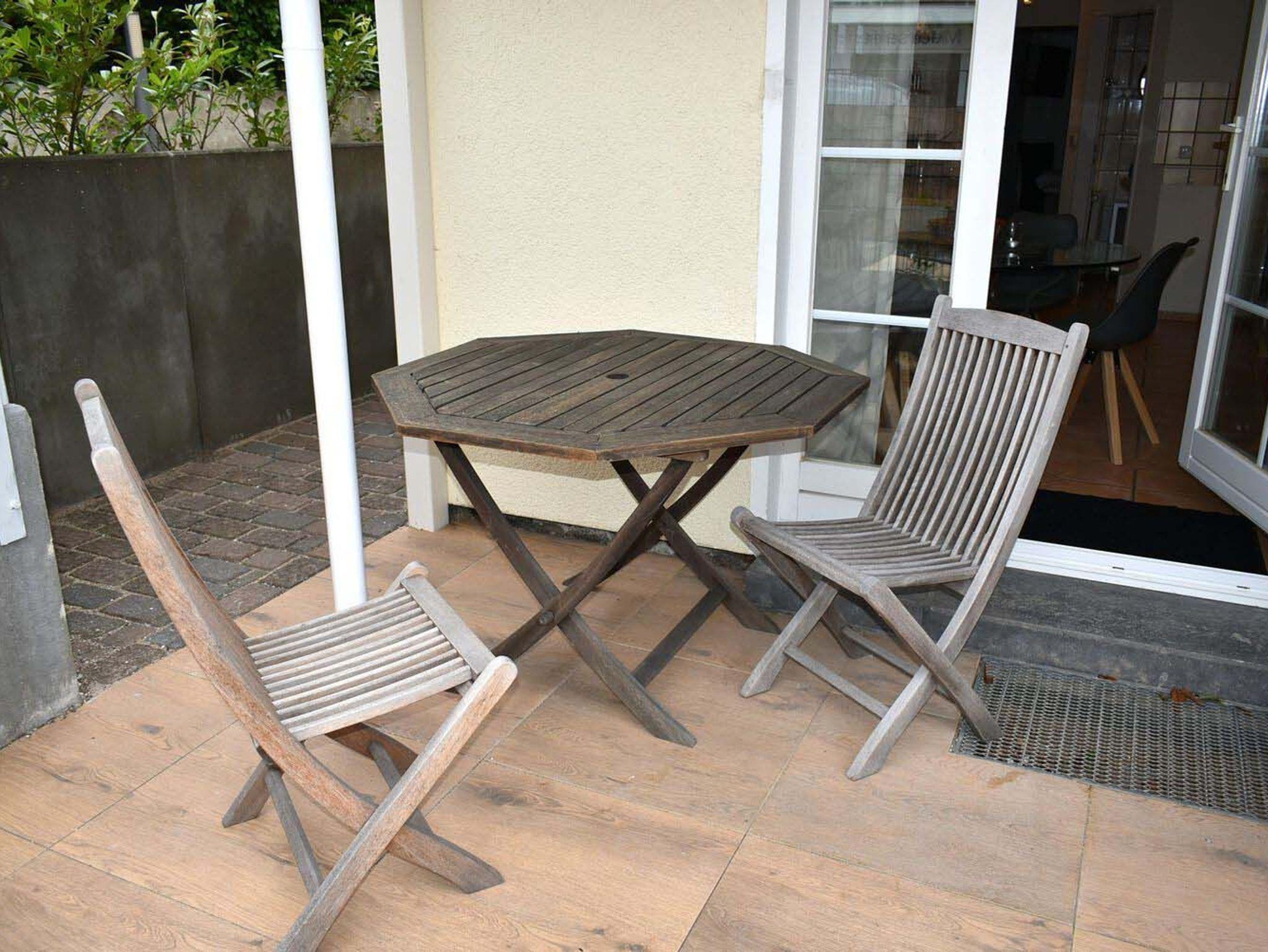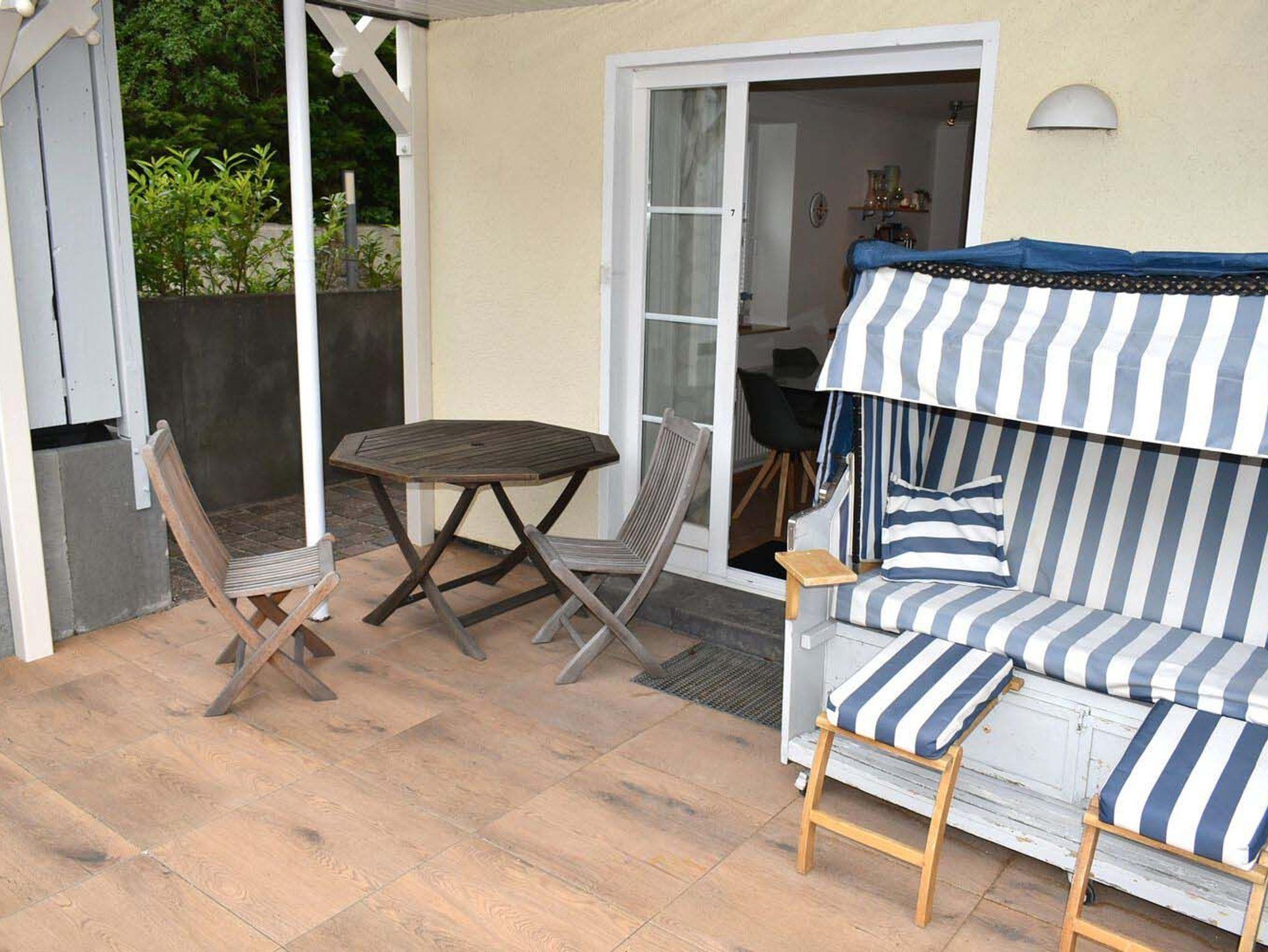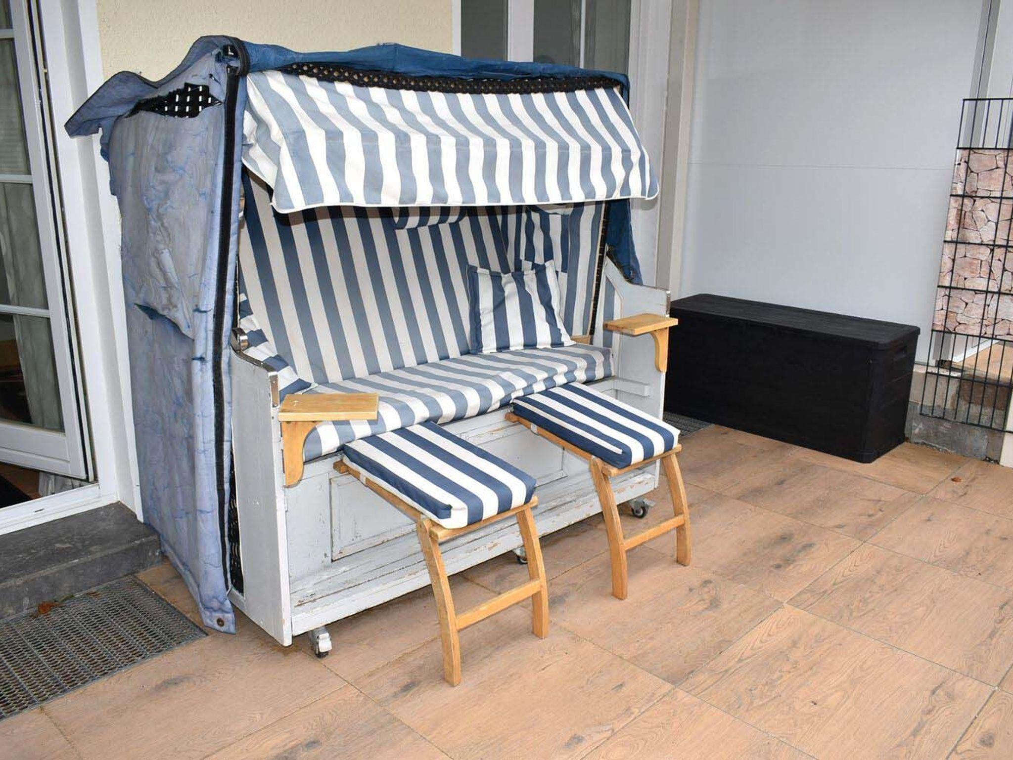Terrasse: 4 Stühle, Strandkorb, Tisch