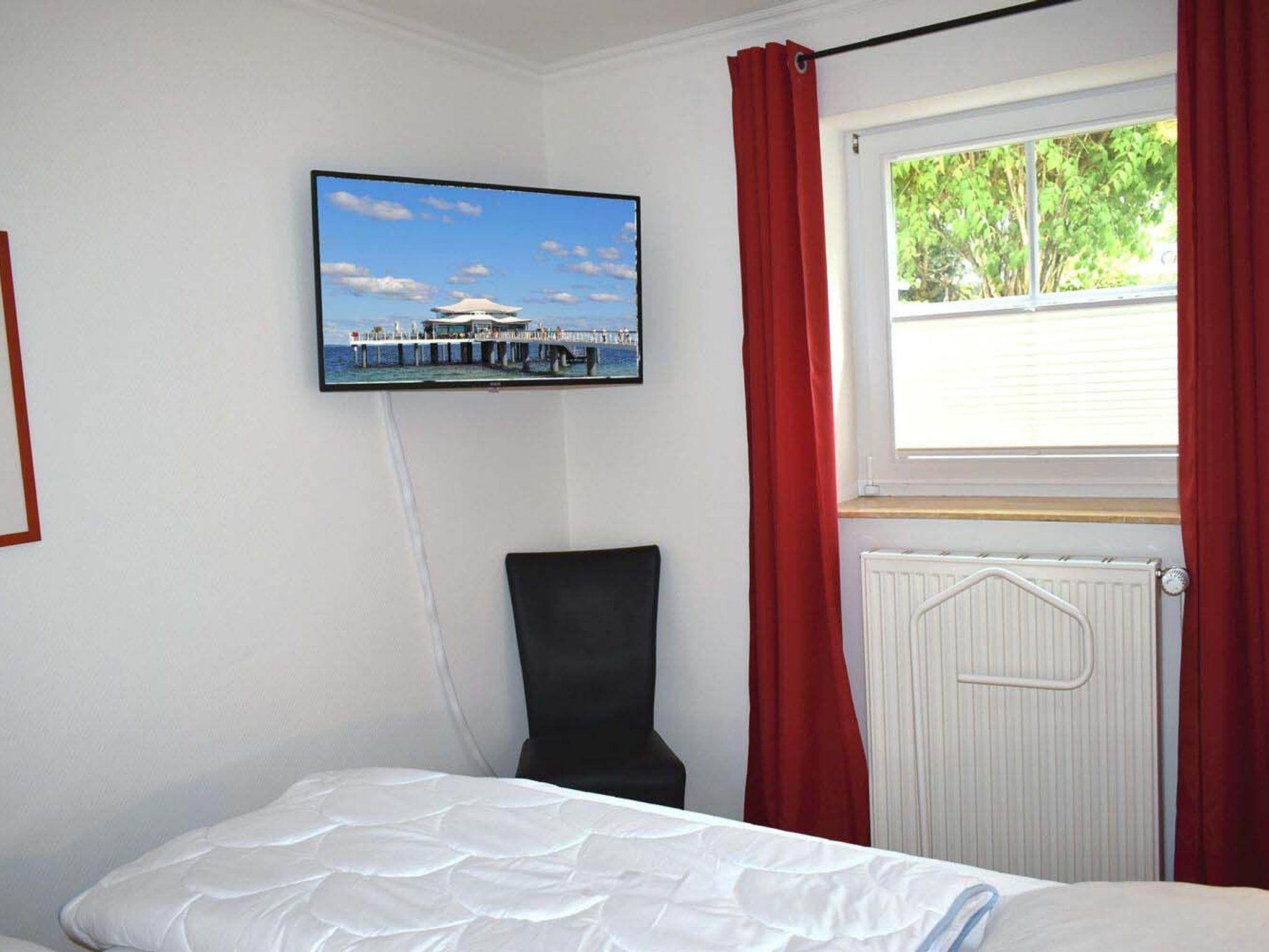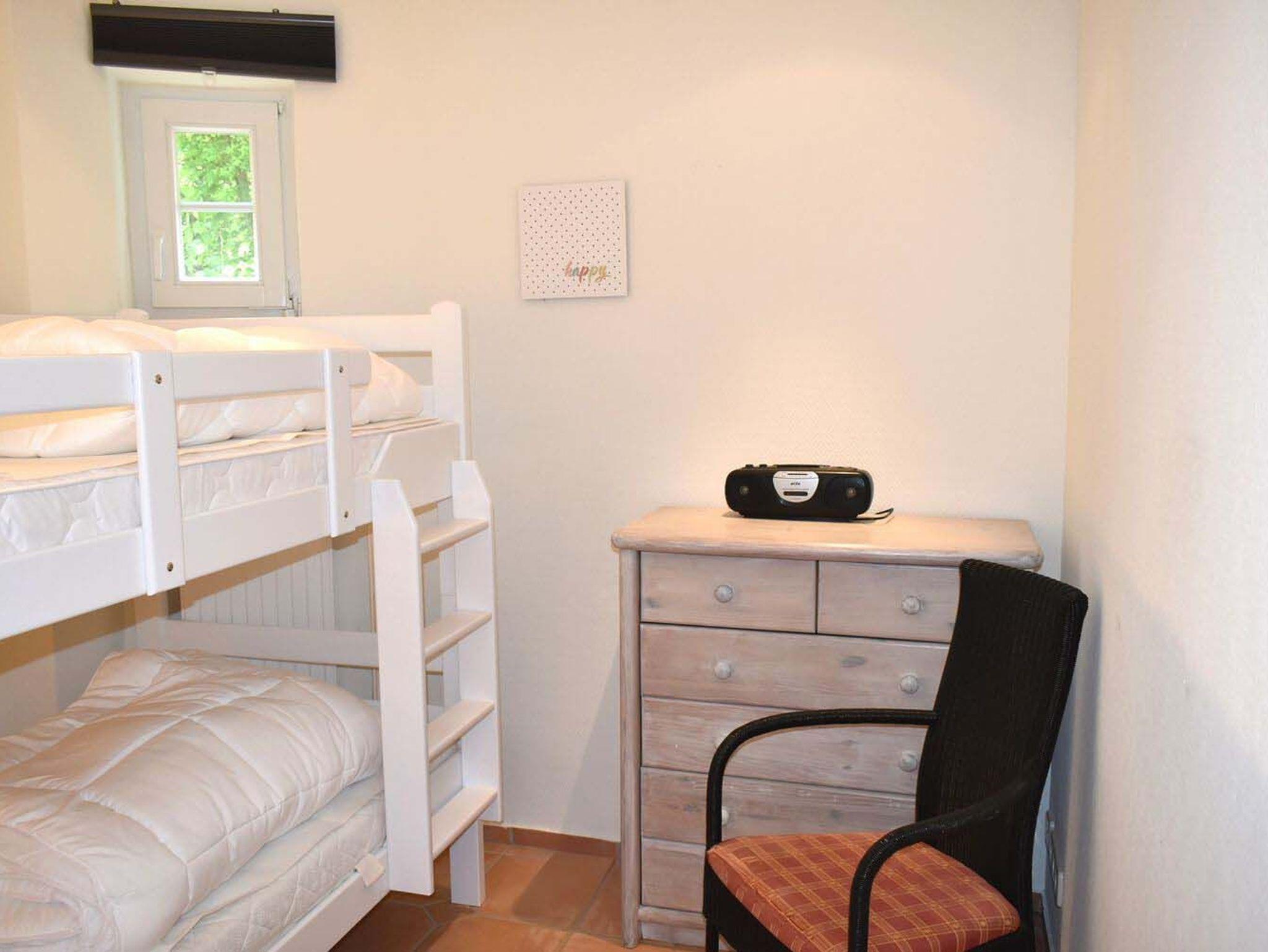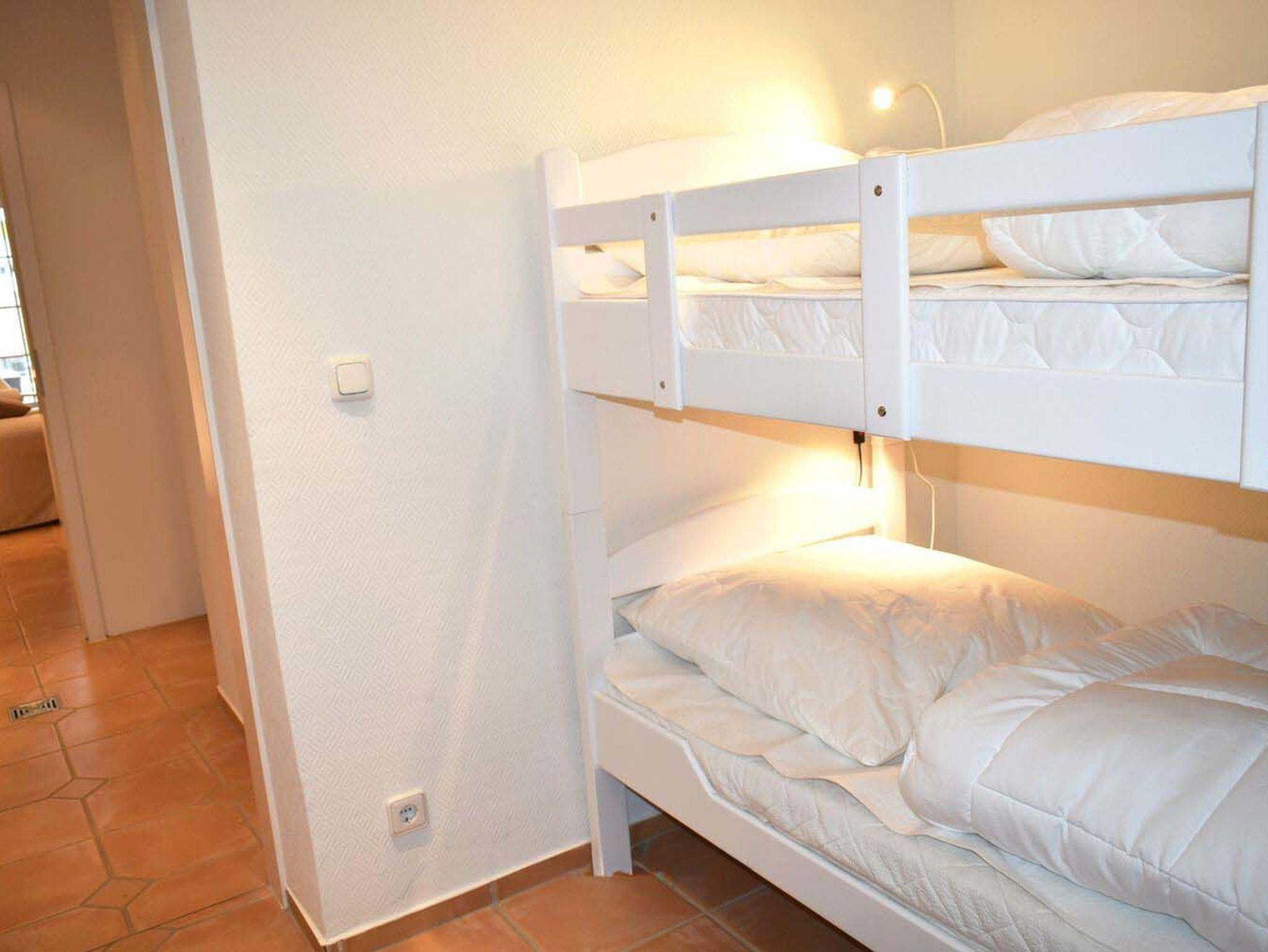 Schlafzimmer 2: Kommode, Plissees, Schlafen - Etagenbett 1,90 x 0,90 m, wandhängender Kabel-TV Flachbildschirm