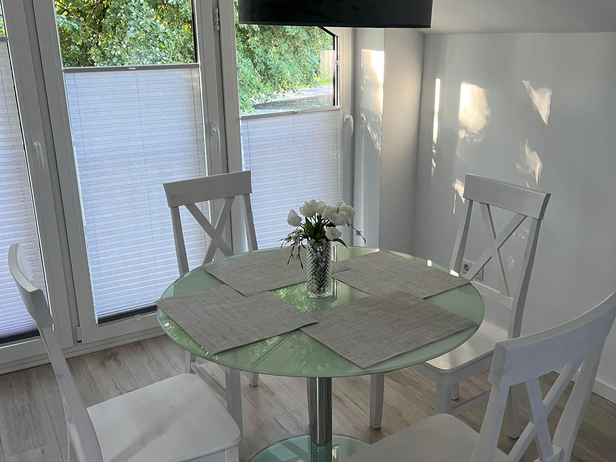 Es grenzt der Eßbereich mit Eßtisch und vier Stühlen an die Küche.