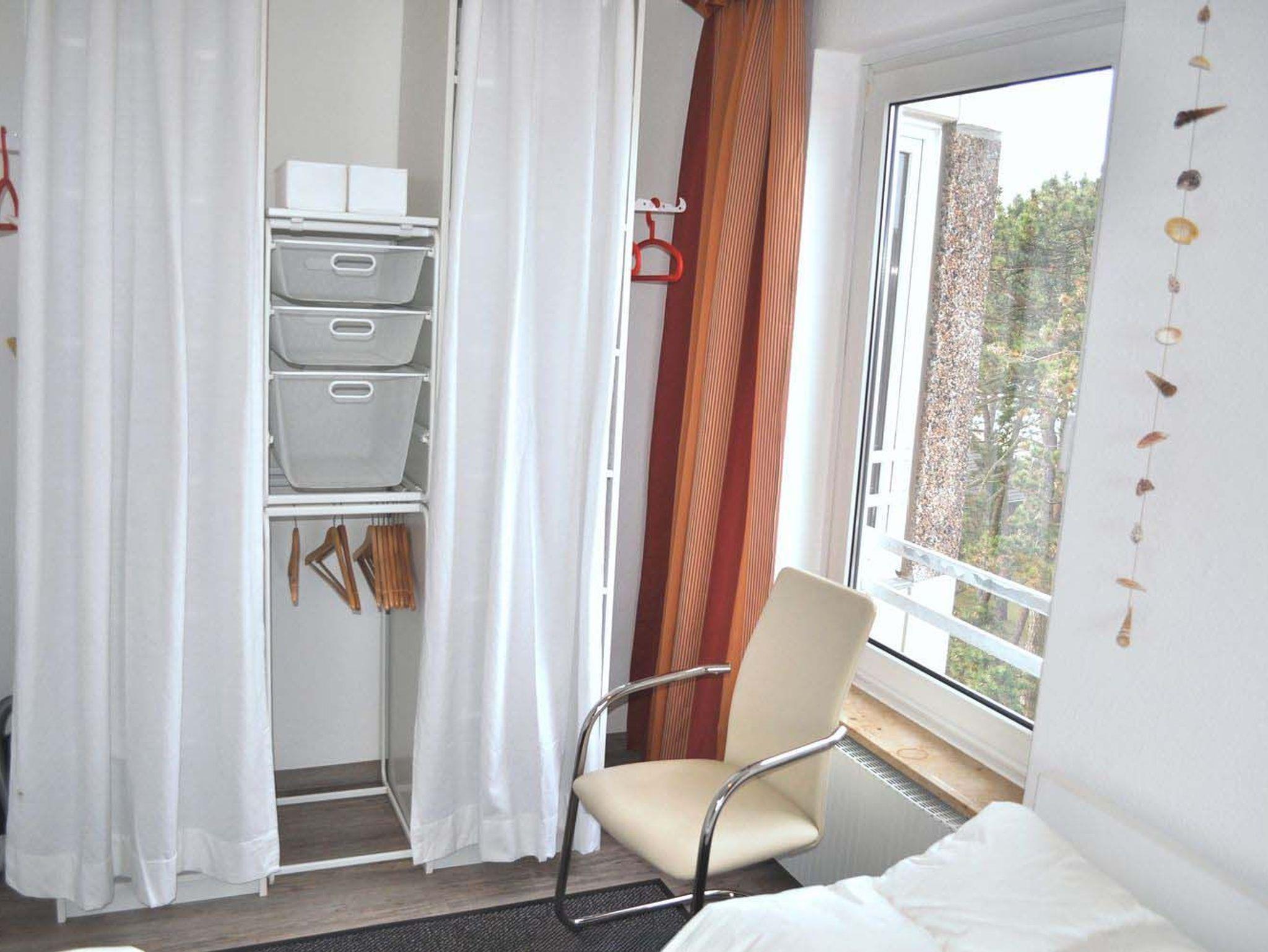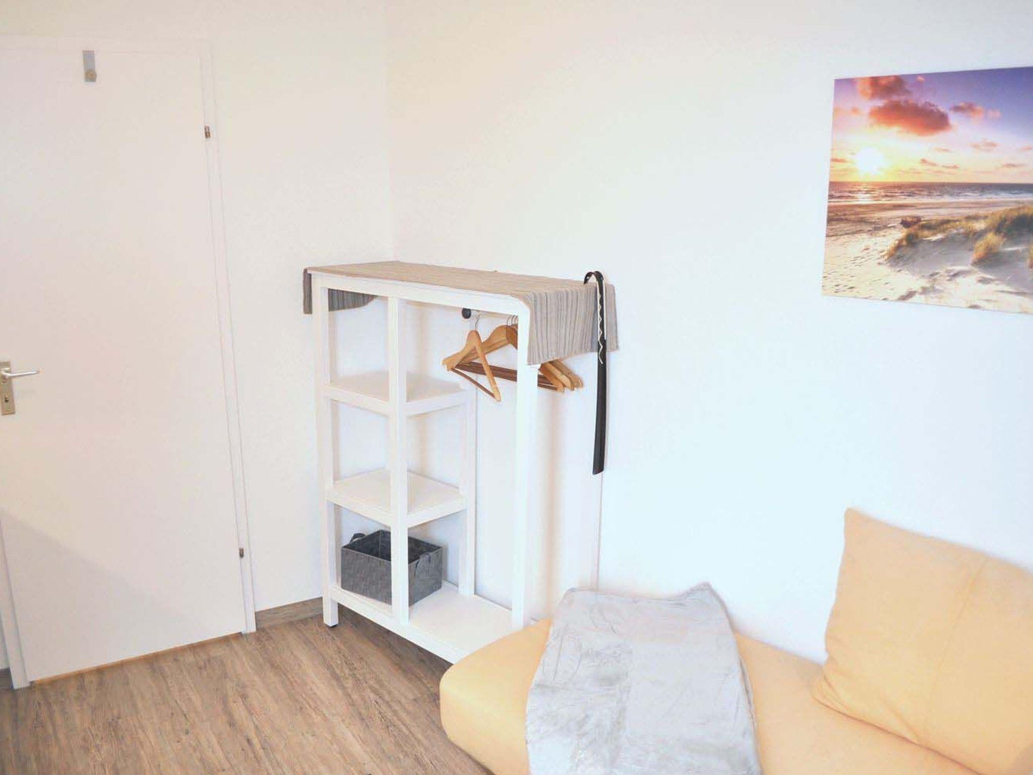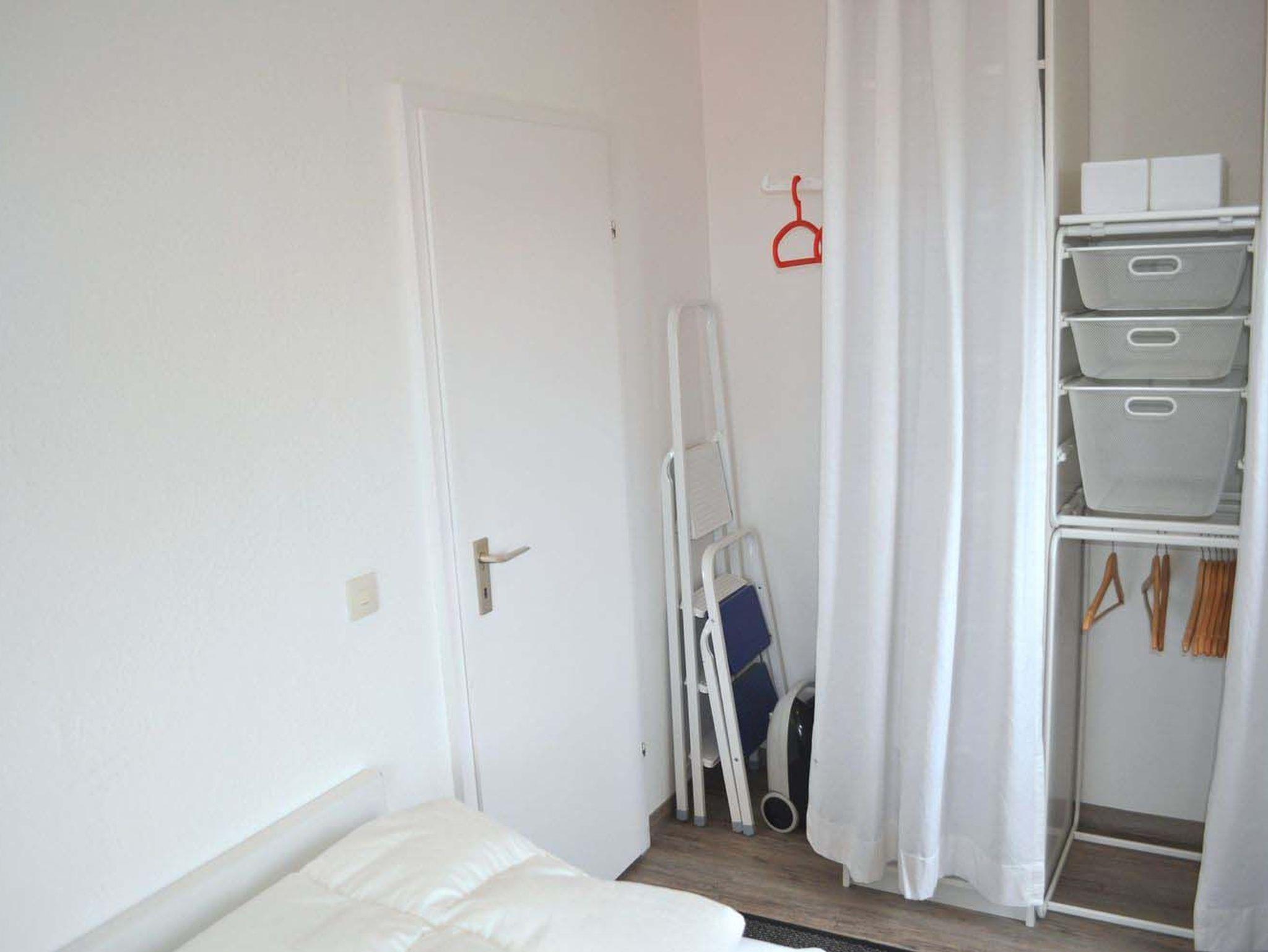 Schlafzimmer 1: 2 Einzelbetten 2,00 x 0,90 m, Kleiderschrank, Nachttisch, Staubsauger, Stuhl, Wecker