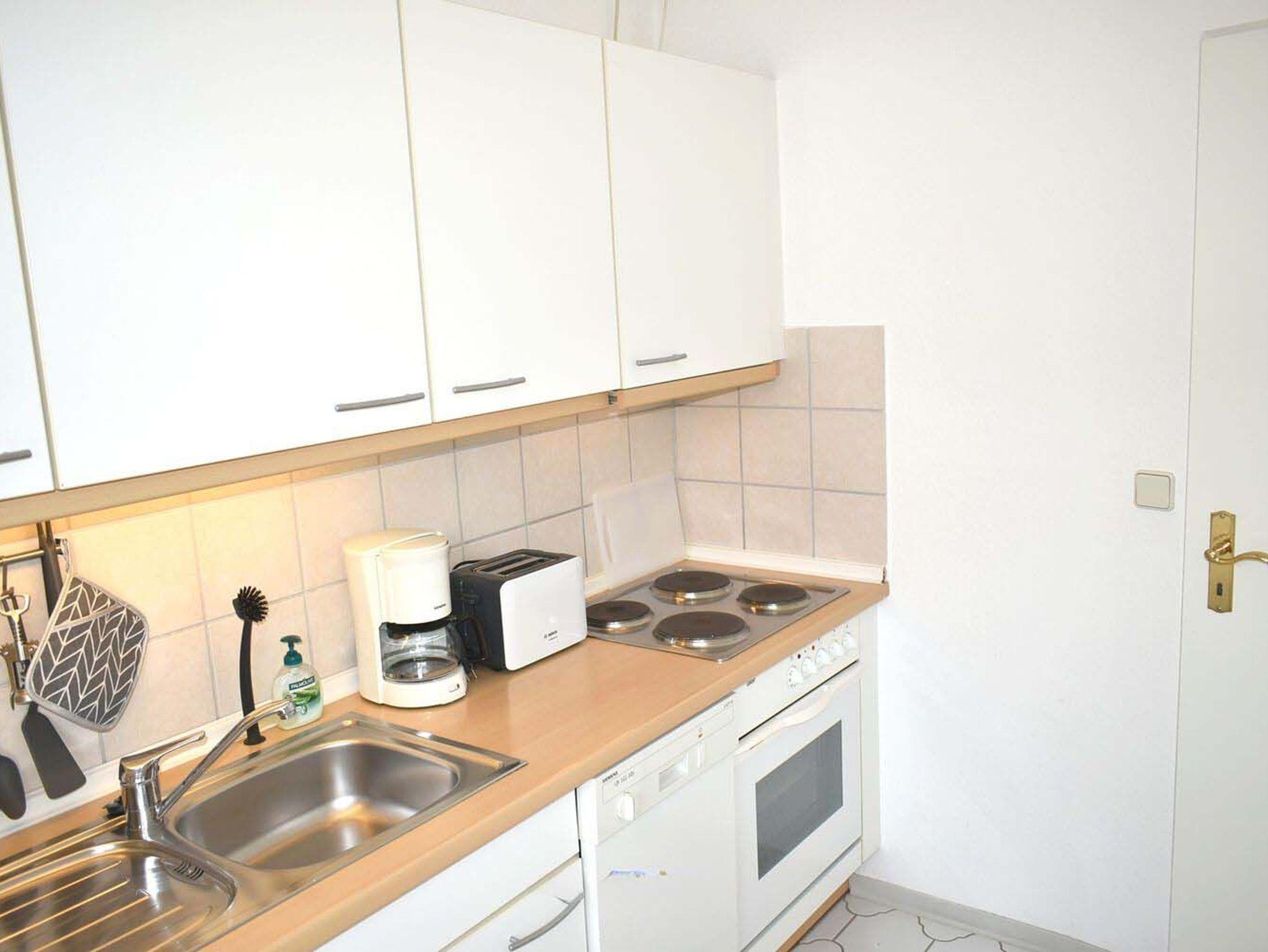 Küche: 4 Plattenherd mit Backofen, Dunstabzugshaube, Eierkocher, Kaffeemaschine, Kühlschrank mit Gefrierfach, Nespresso Maschine, Spülmaschine, Toaster, Wasserkocher