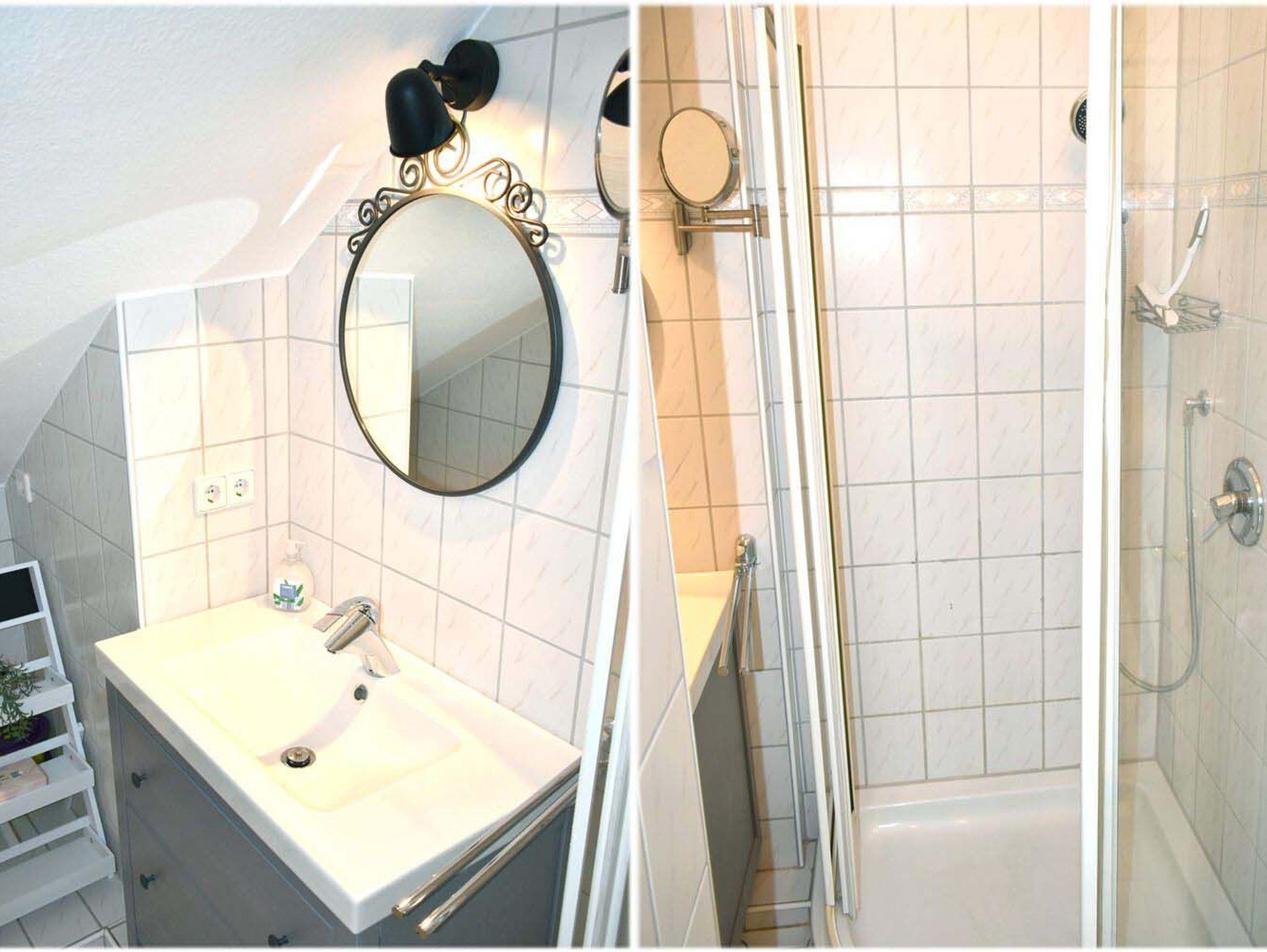 Bad 2: Duschkabine, Kosmetikspiegel, Spiegel, Waschtisch mit Unterschrank