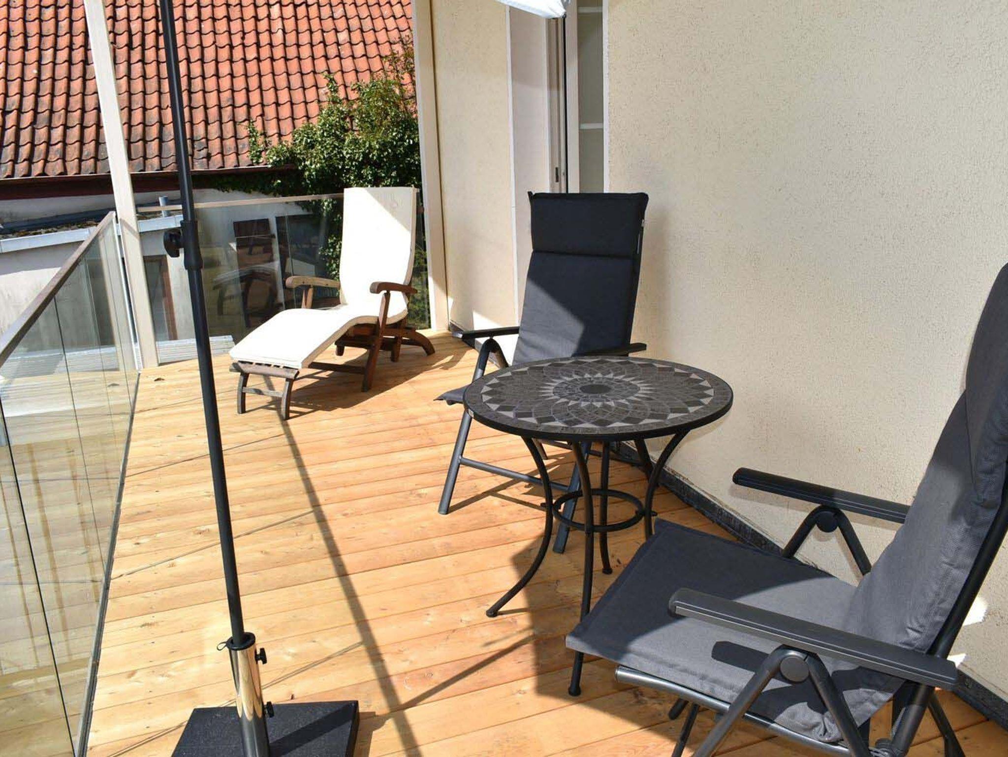 Balkon: 2 Stühle, Sonnenschirm, Süd- Westlage, Tisch