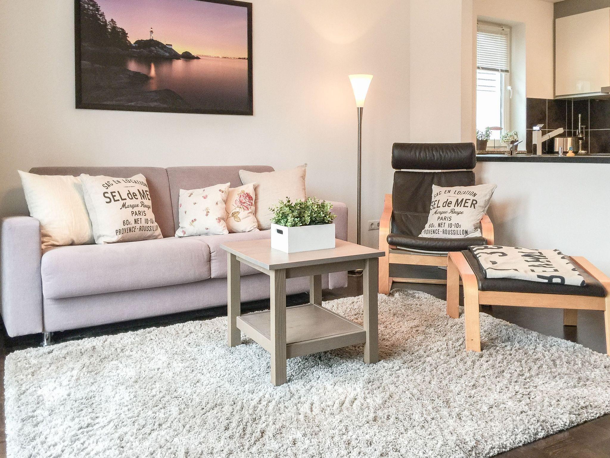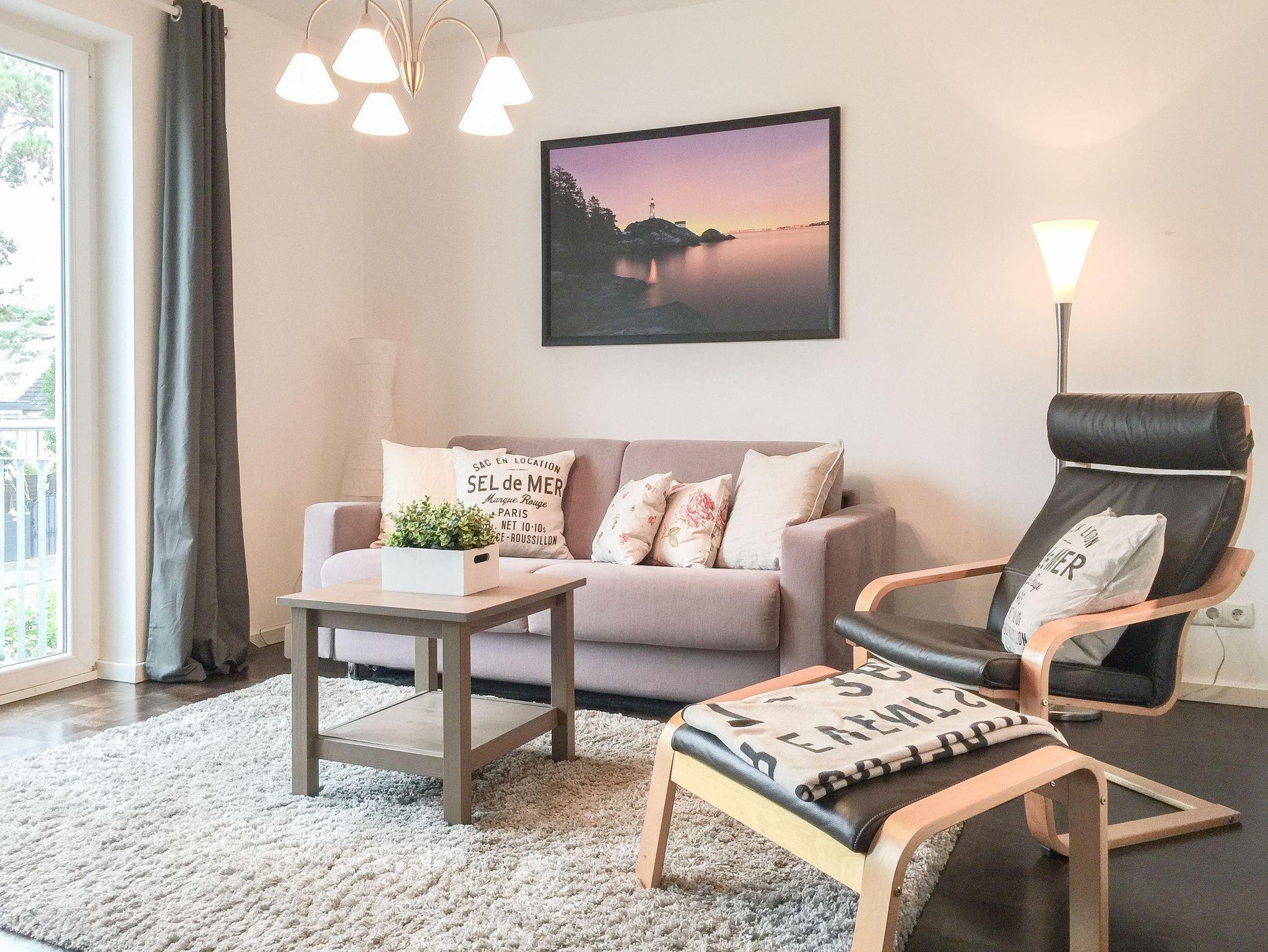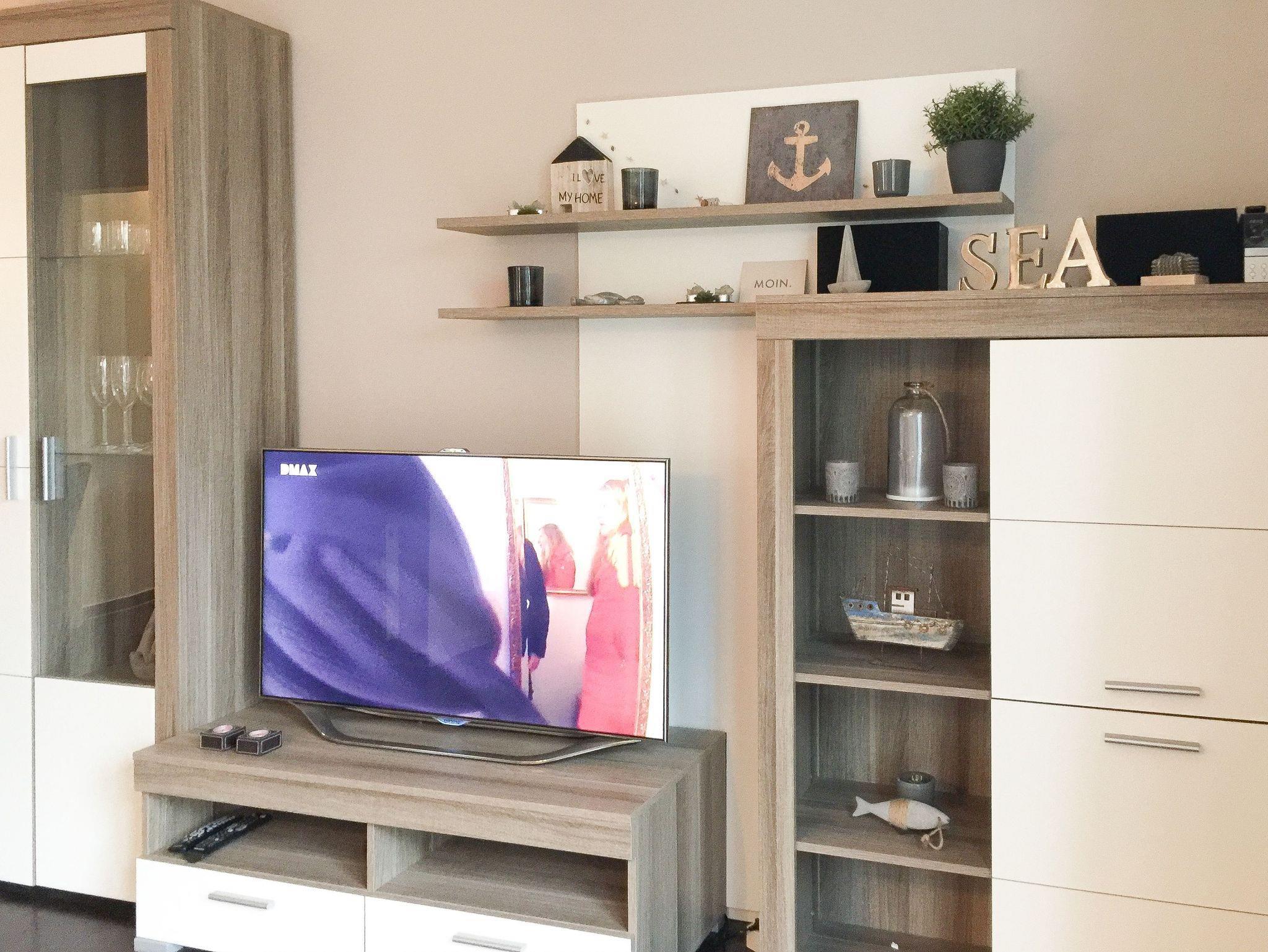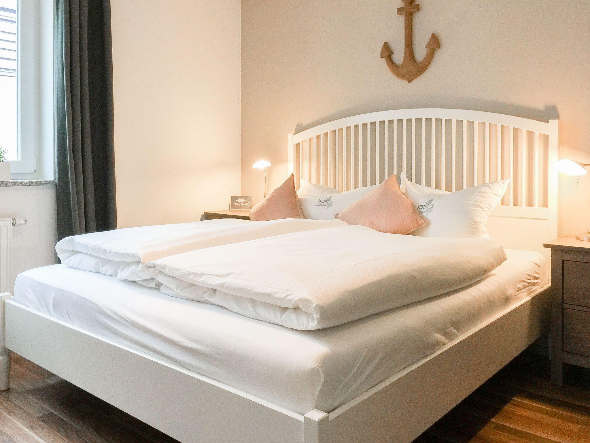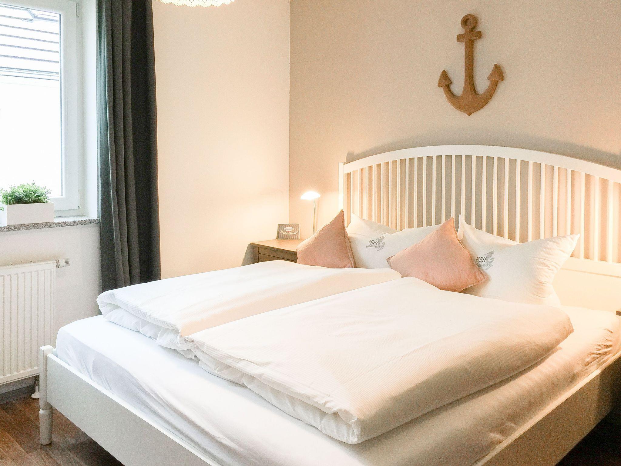 Mit seinen 2 Zimmern bietet es hervorragend Platz für bis zu 4 Personen. Die moderne Inneneinrichtung sowie die dunklen Holzfußböden sorgen für ein äußerst behagliches Wohnambiente. Der gemütliche Wohnbereich ist mit einem ausziehbaren Sofa ausgestattet. Dieses lässt sich schnell zu einem Schlafplatz für zwei weitere Personen umbauen. Die helle Hochglanzküche schließt direkt an den Wohnbereich an. So können Sie auch beim Kochen eines leckeren Essens stets bei Ihren Lieben sein. Das geschmackvoll eingerichtete Schlafzimmer ist mit einem Doppelbett (180x200)[nbsp] sowie einem großen Kleiderschrank eingerichtet. Hier haben Sie ausreichende Möglichkeiten die Urlaubsgarderobe unterzubringen. Liebevoll ausgesuchte Wohnaccessoires runden das maritime Flair dieser Wohnung perfekt ab. Das Bad ist mit einer begehbaren Dusche, Badewanne, Handtuchwärmer und Fußbodenheizung versehen. Für Unterhaltung sorgen zwei[nbsp] TV, ein Bluetooth Lautsprecher mit Radio sowie die kostenlose Nutzung des WLAN, damit Sie auch im Urlaub stets online sein können.
