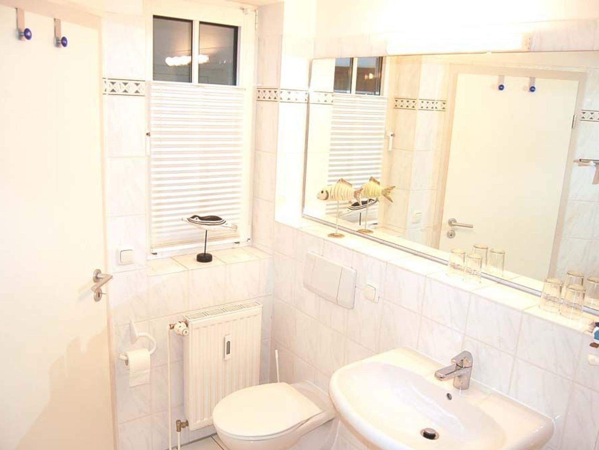 Bad 1: Badewanne, Duschwand, Waschbecken, WC
