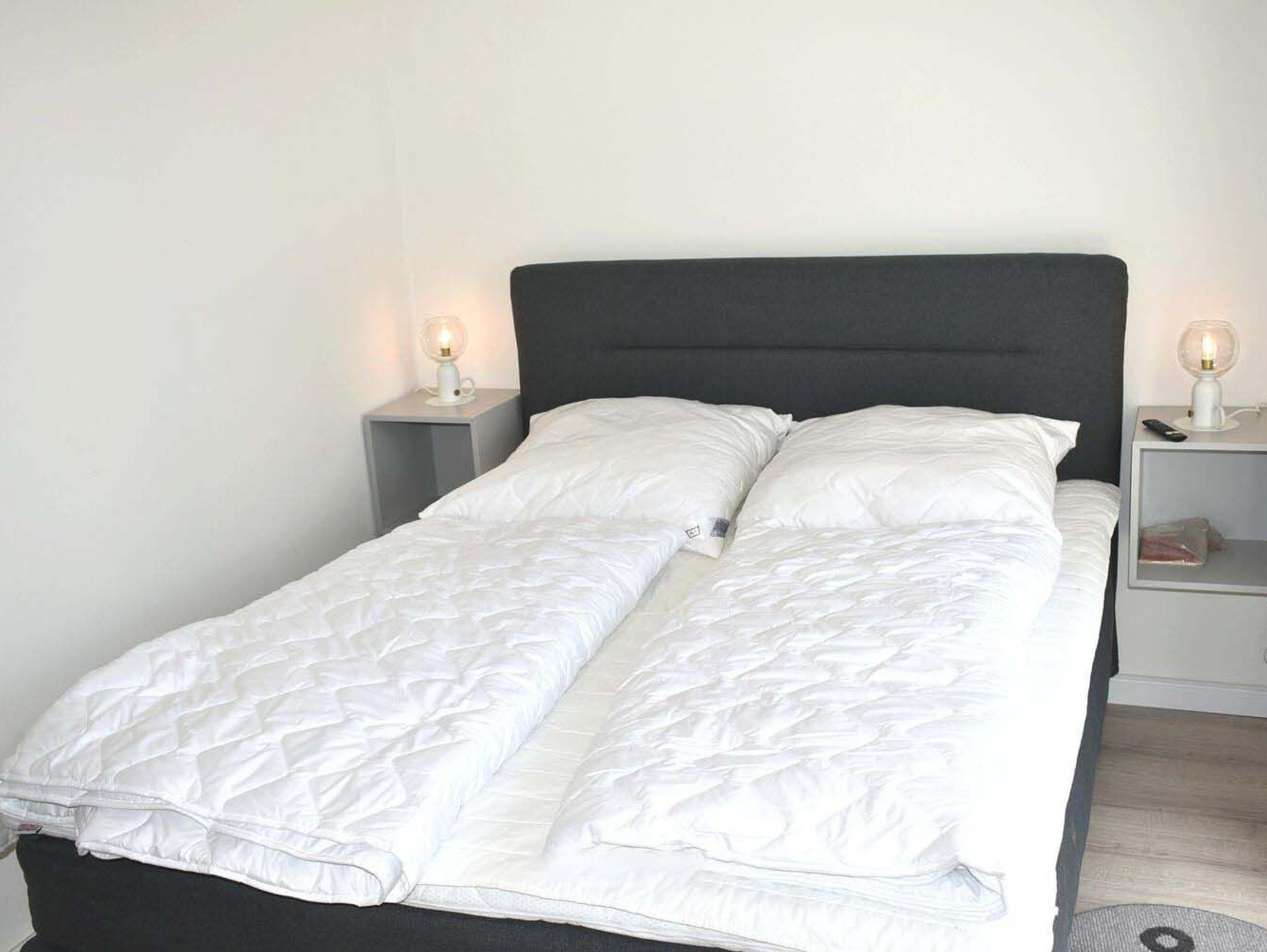 Schlafzimmer 1: 1 Matratze, 2 Nachttische, 2 Nachttischlampen, Boxspringbett 2,00 x 1,60 m, Bügelbrett, Kleiderschrank, wandhängender Kabel-TV Flachbildschirm, Wäscheständer